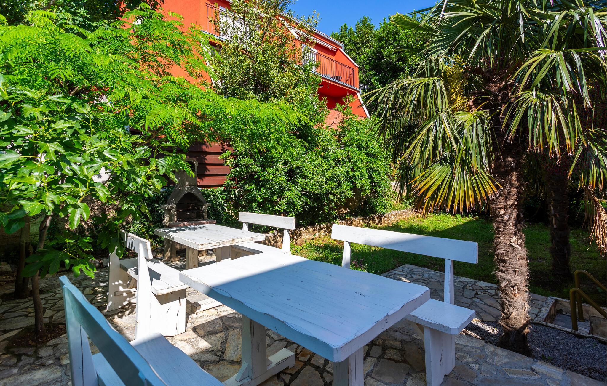 Reis med familien til Kvarnerbukten og opplev en fredelig og avslappende ferie i denne hyggelige ferieleiligheten. Huset har flere leiligheter, noe som gjør det mulig å dele ferien med venner eller storfamilien, avhengig av tilgjengelighet. Her finner du alt du trenger, og du kan nyte frokosten på de koselige balkongene med utsikt over havet.