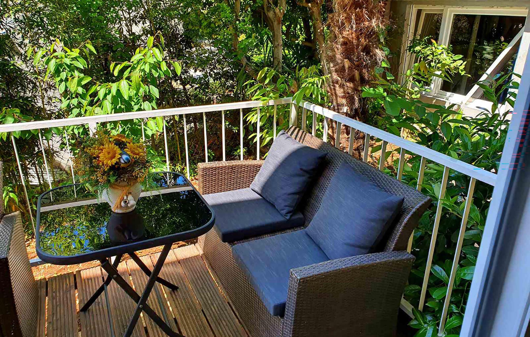 Denne sjarmerende leiligheten er det ideelle tilfluktsstedet for avslappende dager for to. Den åpne planløsningen med mye treverk, bambuselementer og direkte utgang til balkongen kombinerer inne og ute på en harmonisk måte. Enten du leser, lytter til en spennende podcast eller har en liten kjøkkenduell, kommer du raskt i feriemodus her.