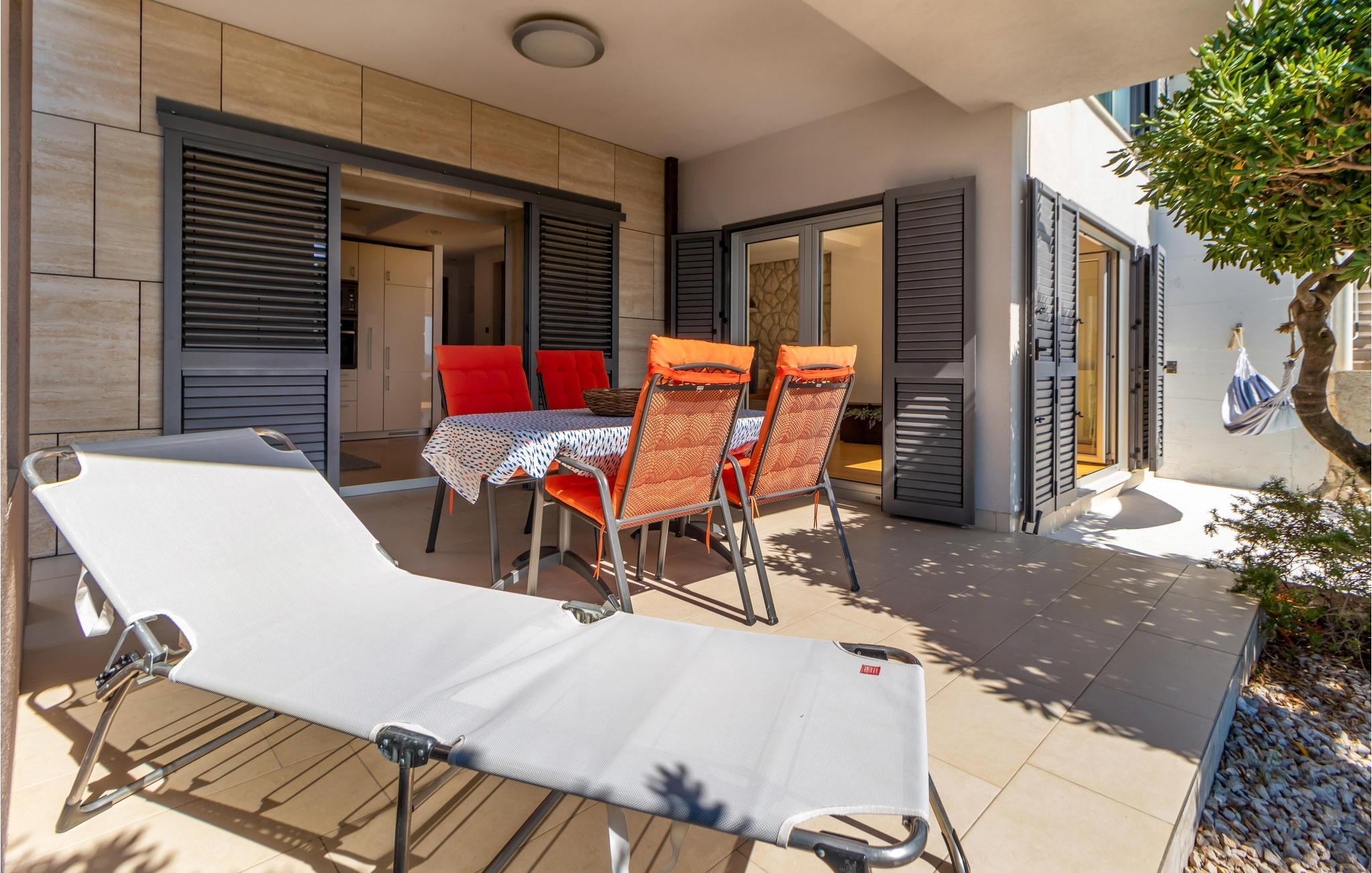 Disse moderne innredede ferieleilighetene ligger nær rullesteinstranden. CKC599 har panoramautsikt over havet. Begge leilighetene har en stor overbygd terrasse som inviterer deg til å slappe av på solsenger fra morgen til sen kveld. CKC598 har også sin egen overbygde terrasse og direkte tilgang til hagen, som også inviterer deg til å slappe av. De moderne kjøkkenene og badene bidrar også til den gode atmosfæren. Bak huset er det en annen, felles terrasse med grill. Besøk de gode lokale restaurantene og de typiske kroatiske konobaene hvor du kan smake på de typiske fiskespesialitetene. Stedet er ideelt for en avslappende familieferie, men aktive ferierende vil også få pengene sine verdt her.