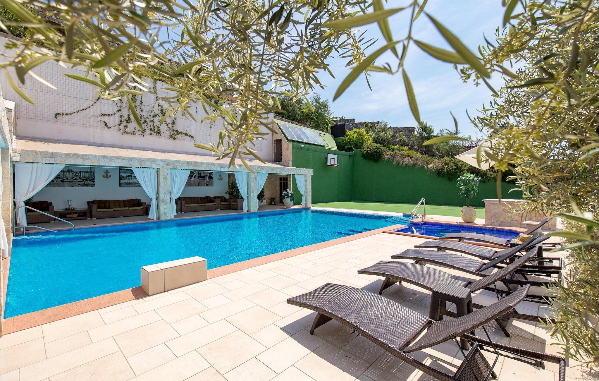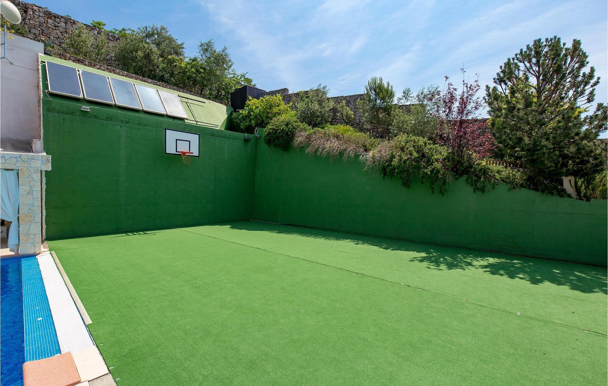 Denne luksuriøse villaen har plass til 18 personer, med totalt 9 soverom, 4 bad og 4 fullt utstyrte kjøkken, noe som gjør den til det ideelle valget for store familier og vennegrupper. Det er nesten umulig å ikke finne et rom som passer din smak i denne luksuriøse villaen. Interiøret kombinerer minimalistisk og moderne innredning med fargerike detaljer og en koselig og varm familieatmosfære. Den store og velholdte hagen er utstyrt med et innbydende privat basseng og 10 solsenger hvor du kan tilbringe en avslappende ferie. Villaen er perfekt for deg som foretrekker en overdådig livsstil, og derfor kan du også nyte et boblebad i hagen. Bassenget er delvis omgitt av en romslig terrasse med grill og spiseplass for 22 personer. For sportsentusiaster er det en basketballbane. Matlaging og massasje er tilgjengelig på forespørsel og mot et pristillegg. Eierne av villaen tilbyr gjestene gratis første tannlegetime i praksisen deres og VIP-skjønnhetstimer i skjønnhetssalongene deres - vennligst kontakt eierne for alle detaljer før ankomst.