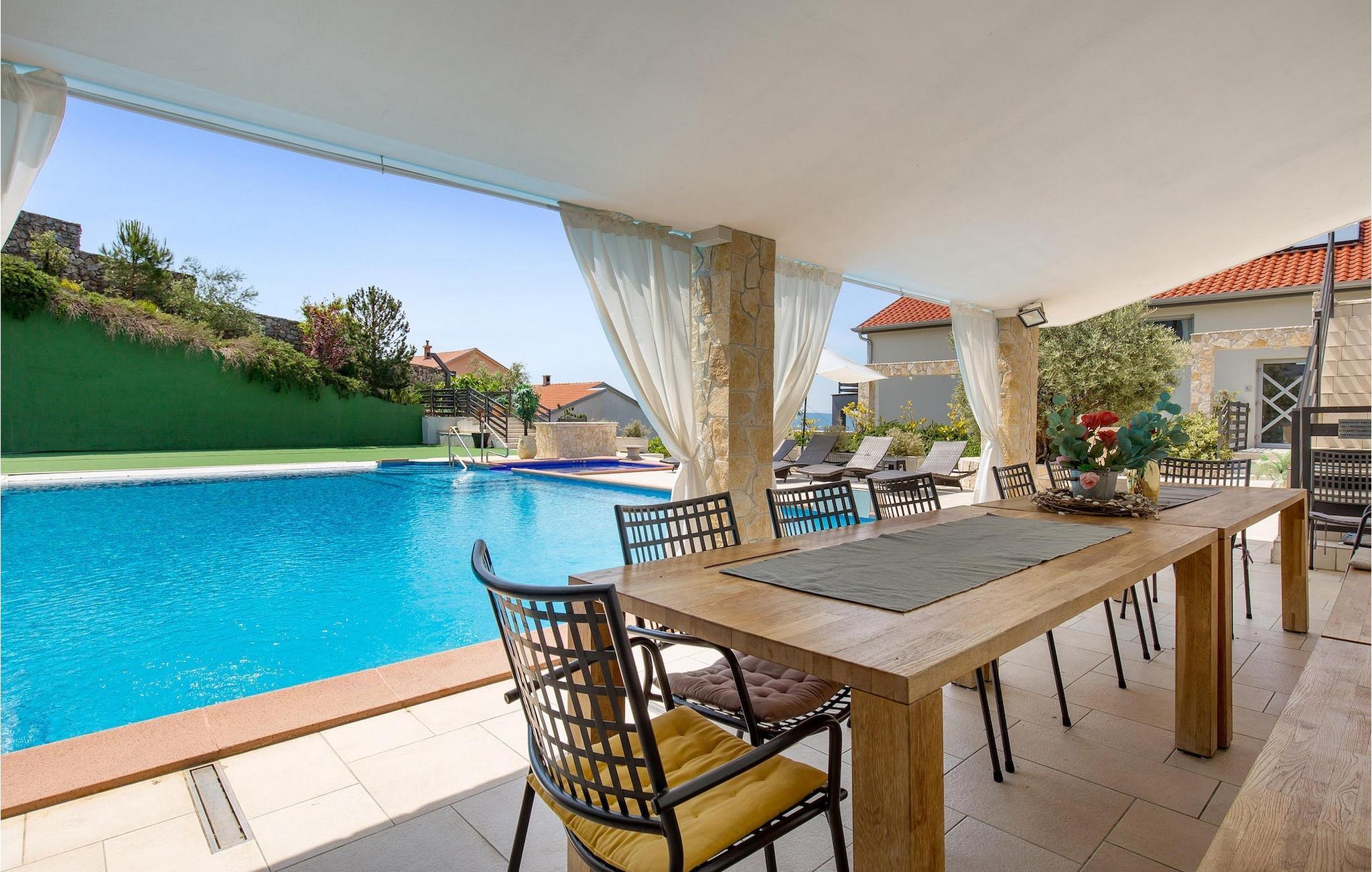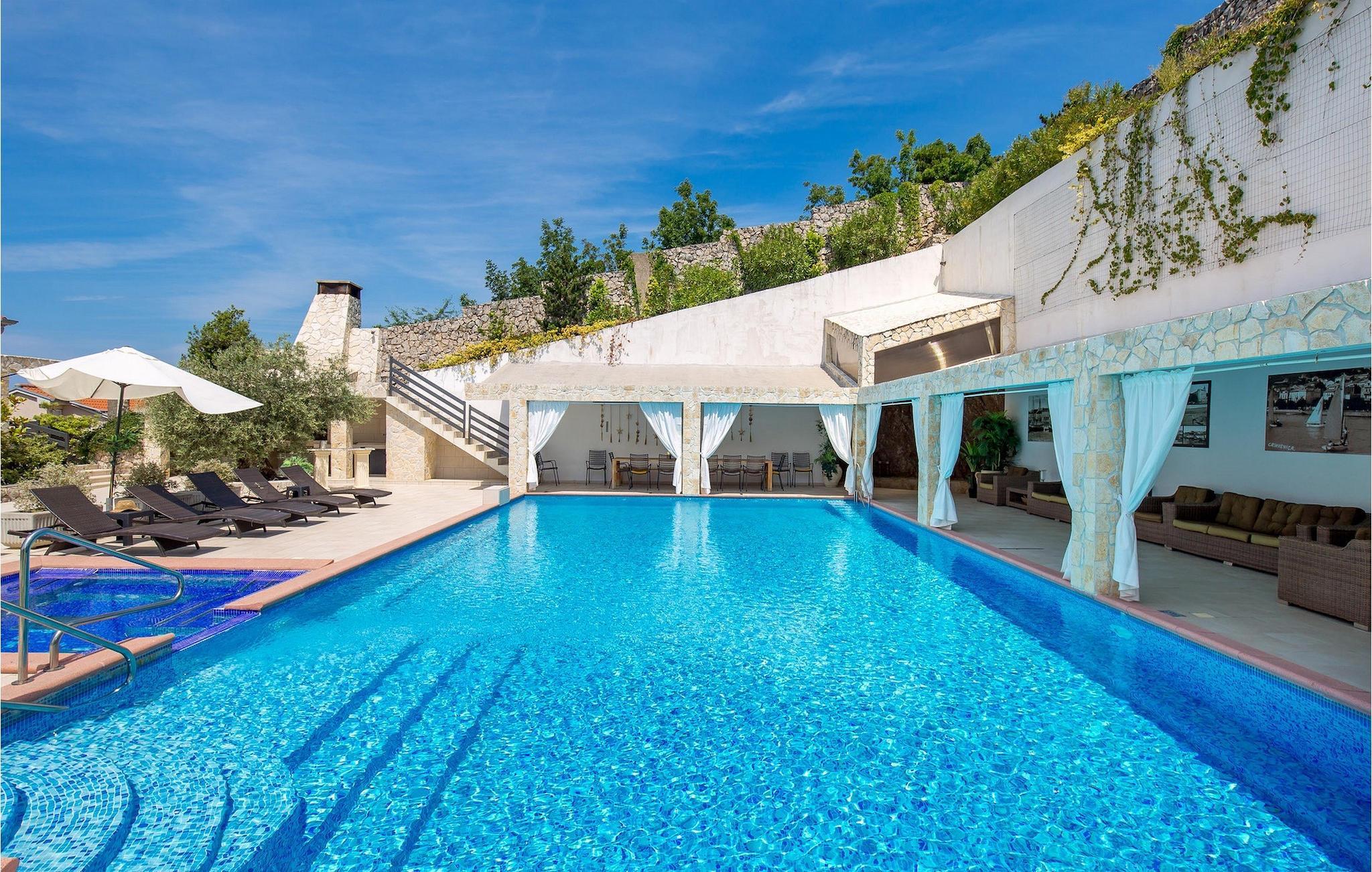 La Villa Kalmar skjemme deg bort og tilbring en fantastisk ferie i Kroatia.Dramalj er en liten landsby på den kroatiske kysten i Kvarnerbukta. Den ligger bare en kort kjøretur fra det velkjente turiststedet Crikvenica. En av de største havnene i Sentral-Europa, samt Kroatias tredje største by Rijeka, ligger bare 30 km fra Dramalj. Byen Rijeka er kjent for sin lange historiske og kulturelle arv, sine mange restauranter, kafeer, klubber, barer og arrangementer. Opplev byens atmosfære på en spasertur langs Korzo, utforsk gamlebyen og besøk pilegrimskirken i Trsat på en høyde over byen. Du bør absolutt besøke Rijeka-karnevalet, det femte største karnevalet i verden! Rijeka lufthavn ligger på øya Krk, bare en kort kjøretur fra Dramalj. Den nærmeste stranden ligger innen gangavstand fra villaen.
