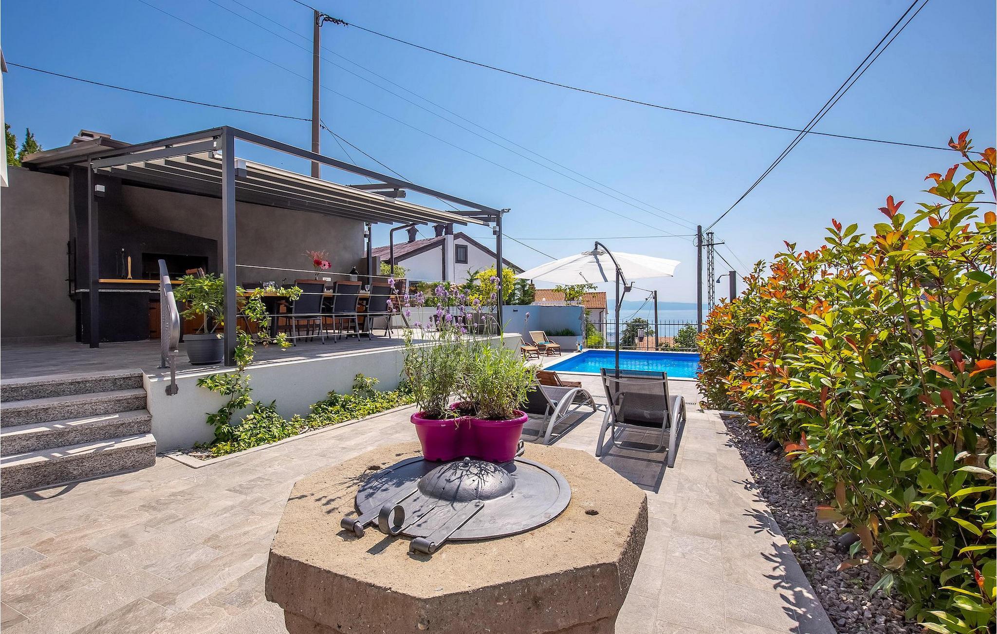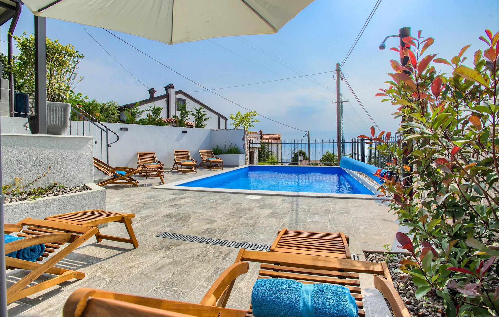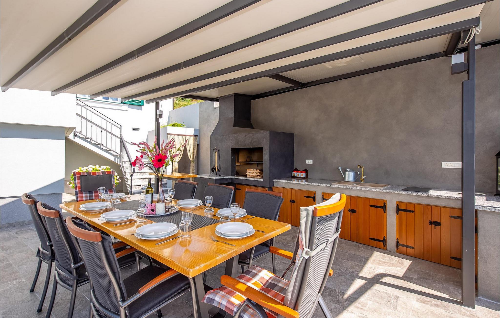Uteområdet består av en lekeplass bak huset, et overbygd utekjøkken med grill og et vakkert basseng med utsikt over havet. Sommerkjøkkenet og kullgrillen er tilgjengelig for tilberedning av hjemmelagde måltider som kan nytes sammen med familien på den overbygde terrassen med fantastisk havutsikt. Bassenget varmes opp med solenergi, slik at du kan bruke det selv i kjøligere temperaturer. Hele huset har Wi-Fi og en sikker parkeringsplass. Er ikke dette en fantastisk introduksjon til en uforglemmelig avslappende ferie ...Villa Leticija ligger i et rolig, idyllisk nabolag i Hreljin.