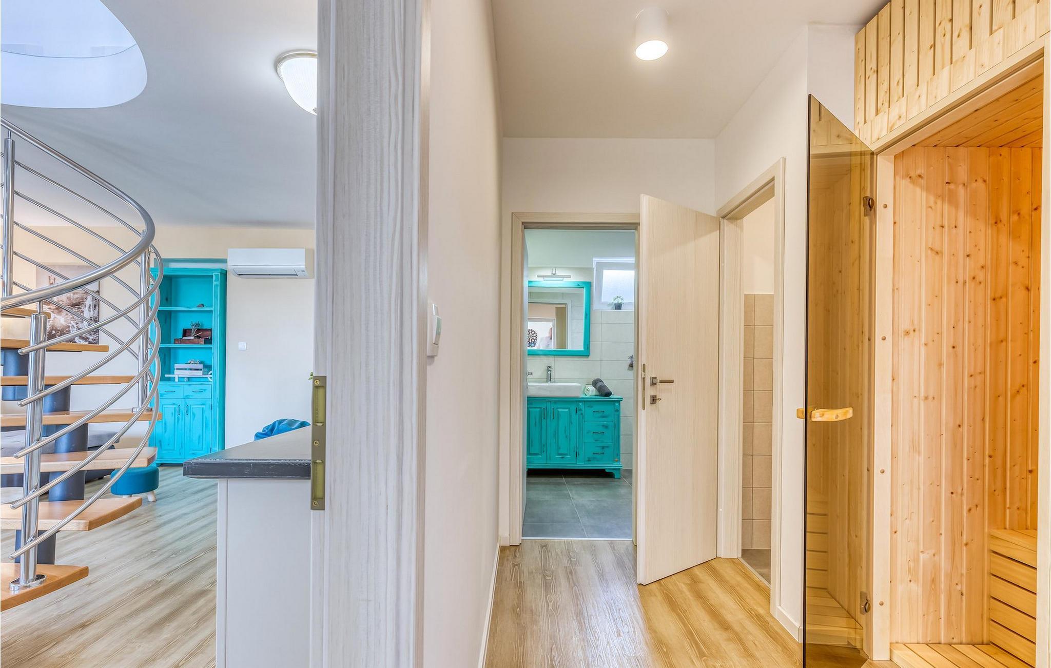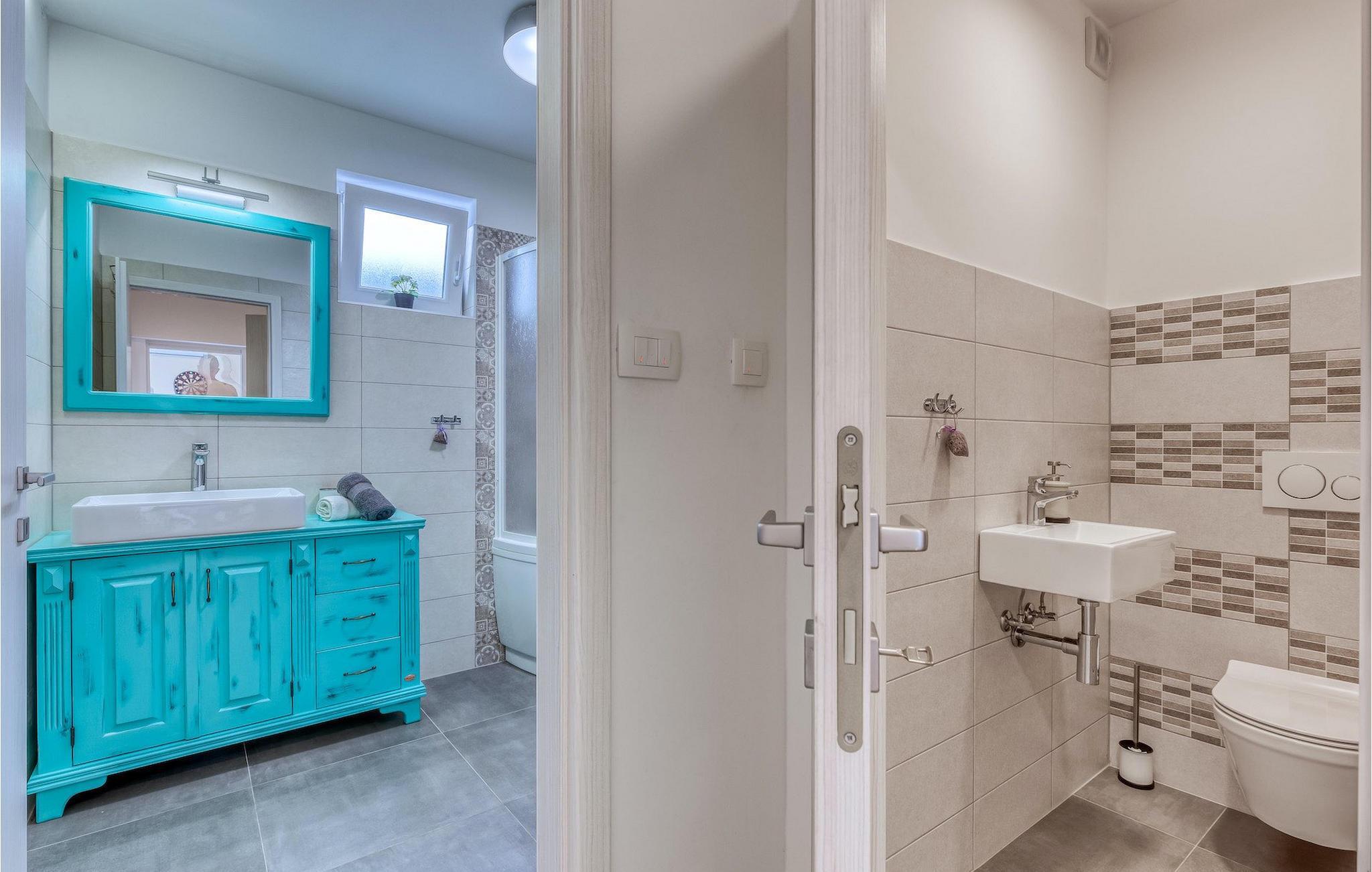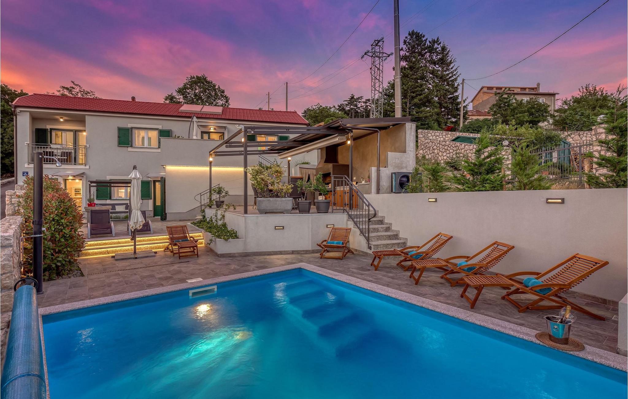 Uteområdet består av en lekeplass bak huset, et overbygd utekjøkken med grill og et vakkert basseng med utsikt over havet. Sommerkjøkkenet og kullgrillen er tilgjengelig for tilberedning av hjemmelagde måltider som kan nytes sammen med familien på den overbygde terrassen med fantastisk havutsikt. Bassenget varmes opp med solenergi, slik at du kan bruke det selv i kjøligere temperaturer. Hele huset har Wi-Fi og en sikker parkeringsplass. Er ikke dette en fantastisk introduksjon til en uforglemmelig avslappende ferie ...Villa Leticija ligger i et rolig, idyllisk nabolag i Hreljin.