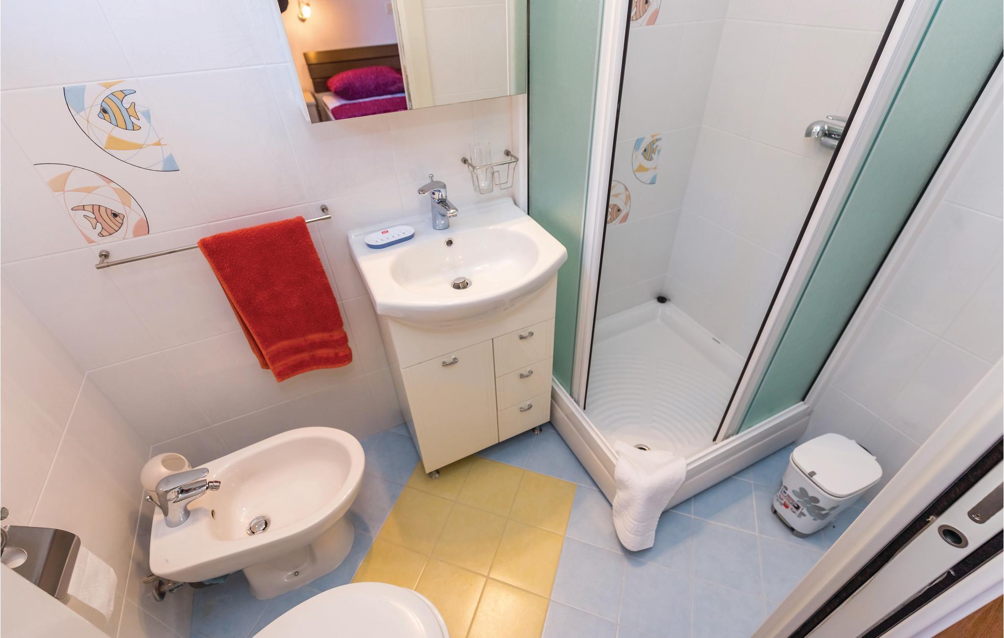Baderom (nr. 1) - WC: Varmt og kaldt vann. Dusj