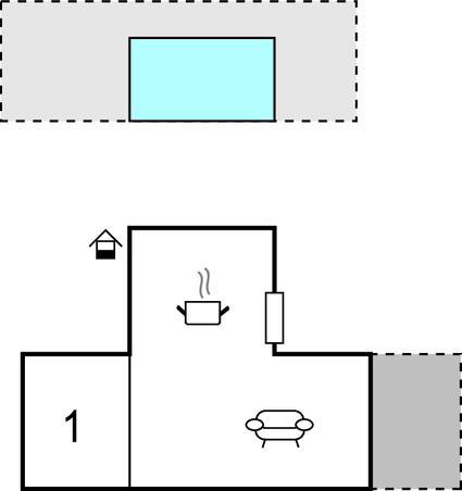 Stue/kjøkken 25m2 - 2 Soveplasser. (Dobbeltseng(er)). 1 Soveplasser. (Sovesofa, madrass eller lign.).