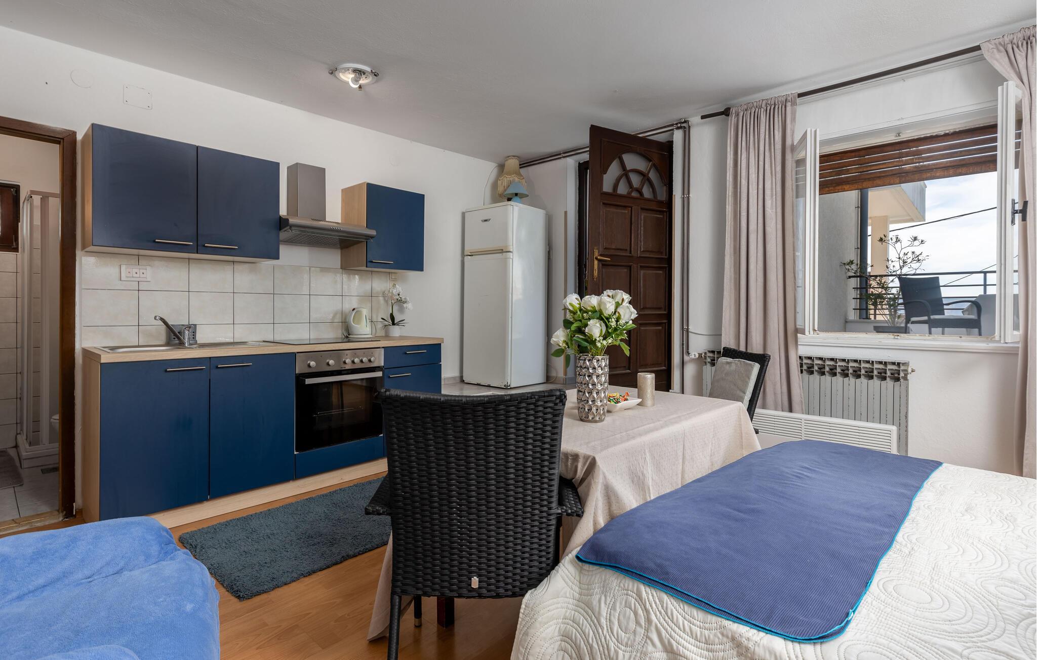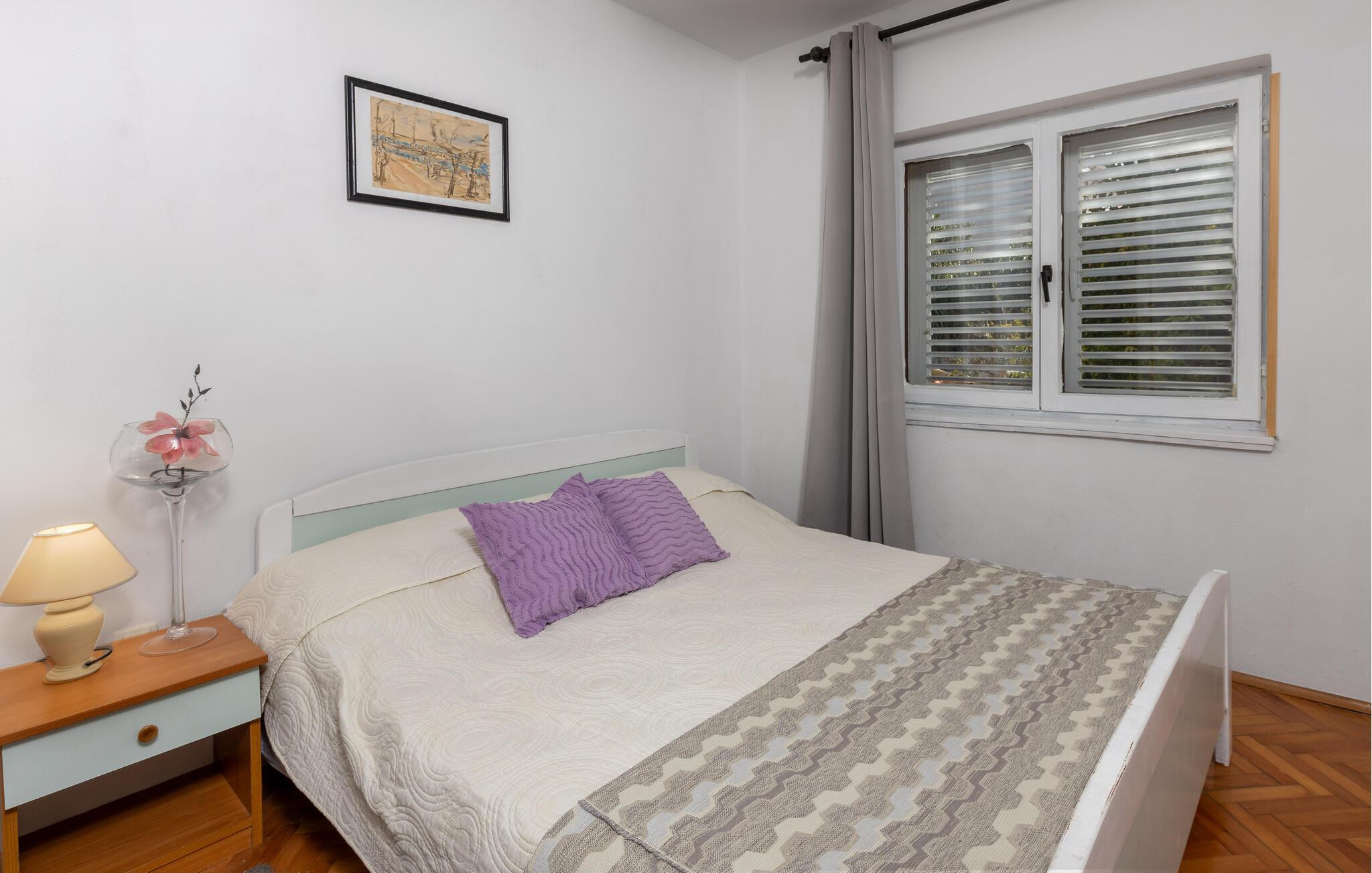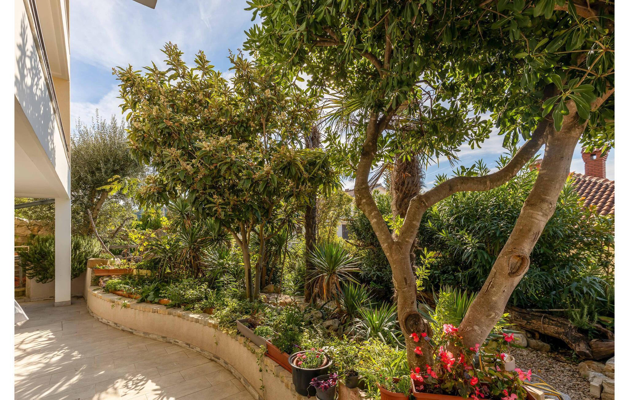 Fantastisk feriehus i Jadranovo, i nærheten av Crikvenica. Huset er komfortabelt og funksjonelt innredet, og siden det ligger i et kupert terreng, kommer man opp til huset via ca. 30 trappetrinn. I første etasje er det en separat leilighet med egen inngang, der det er kjøkken med spiseplass, et soverom og et bad. I første etasje er det fire soverom med bad, mens det i andre etasje er en kjøkken-stue med spiseplass, to soverom og et galleri med ytterligere et soverom og et bad. I tillegg til havutsikten, er de spesielle fordelene de mange terrassene som inviterer deg til å slappe av. Det er en grill på den lukkede tomten med middelhavsplanter. De nærmeste strendene kan også nås til fots.