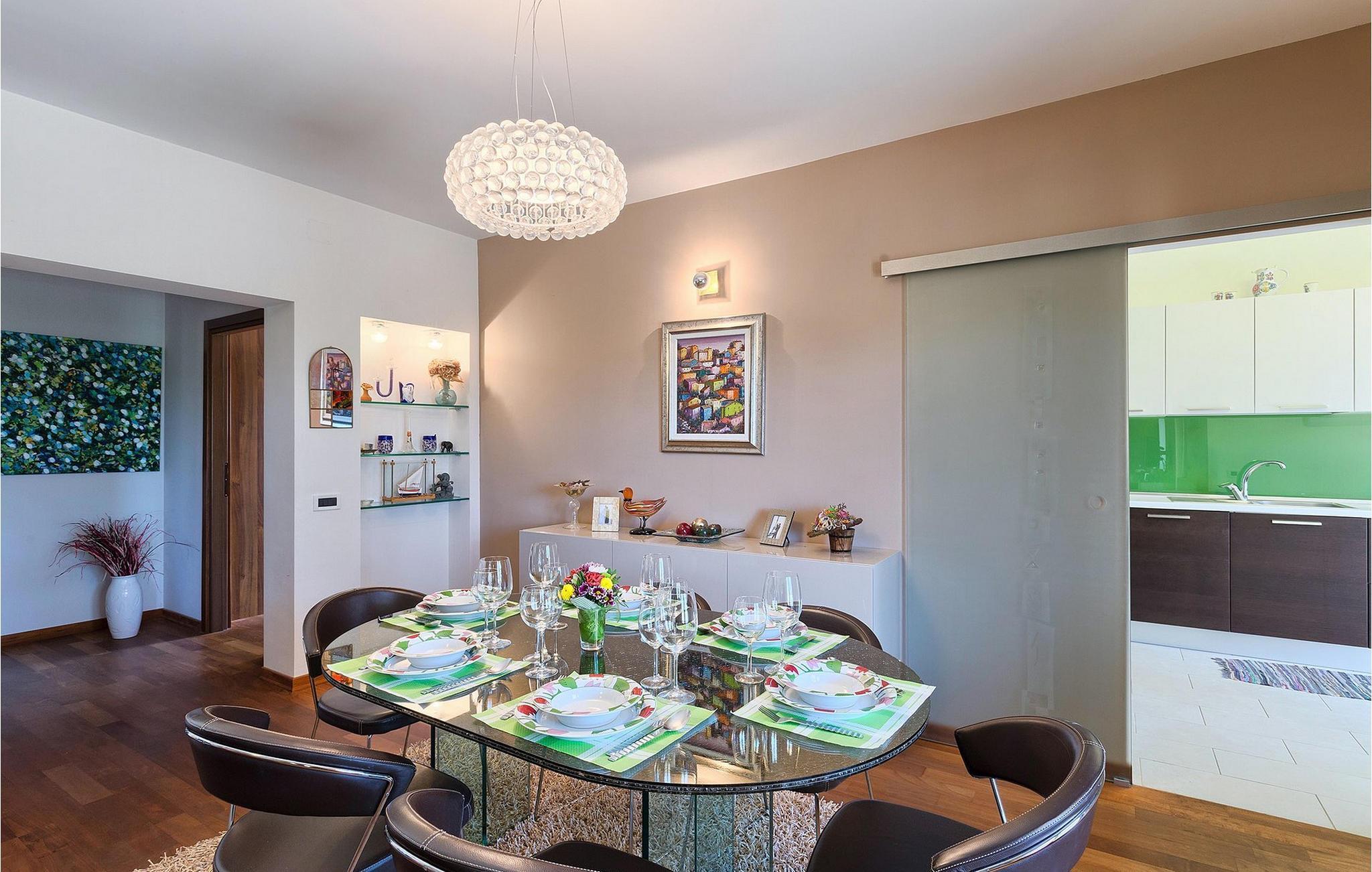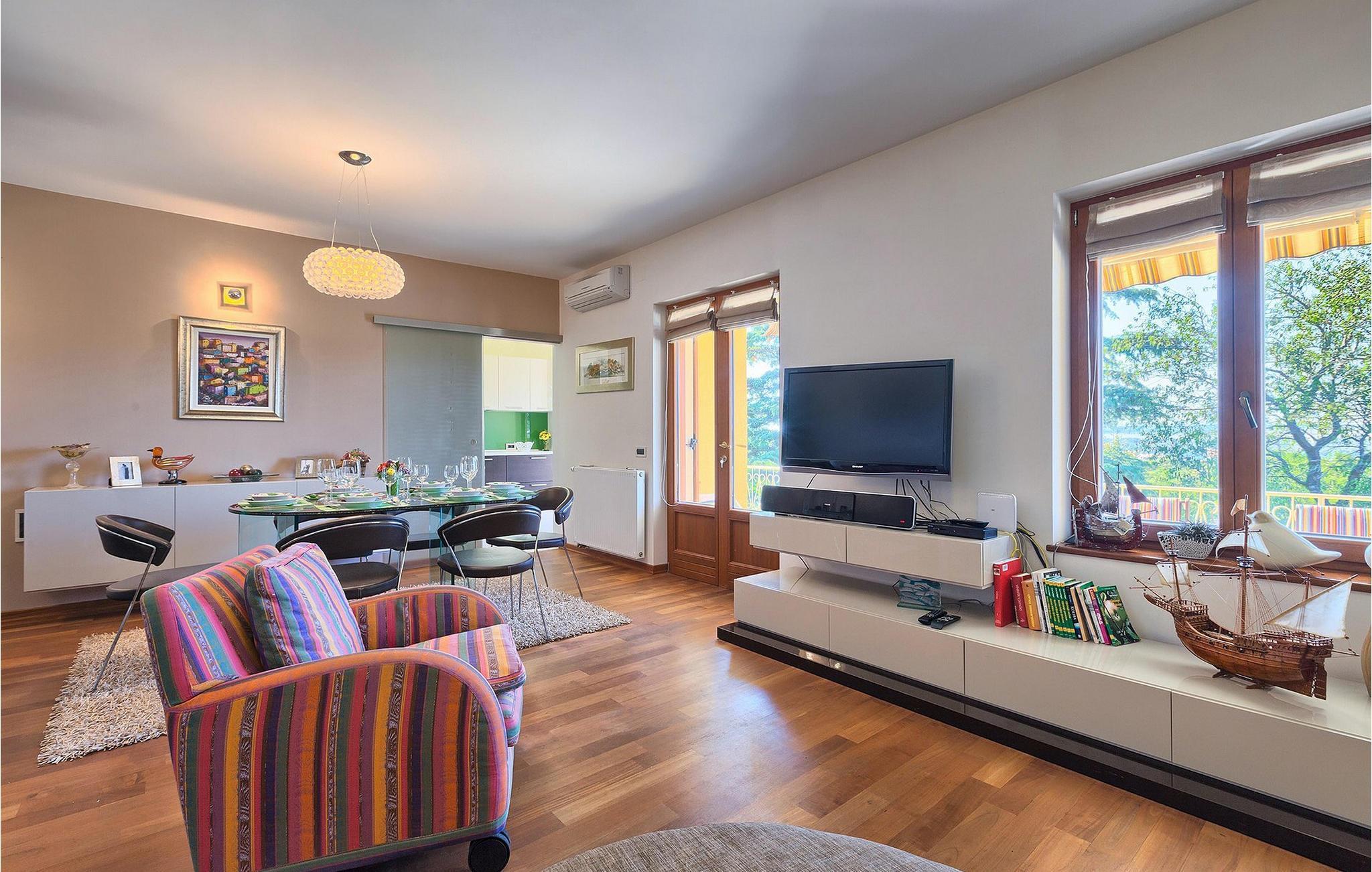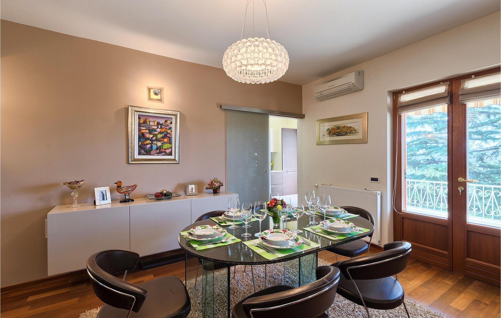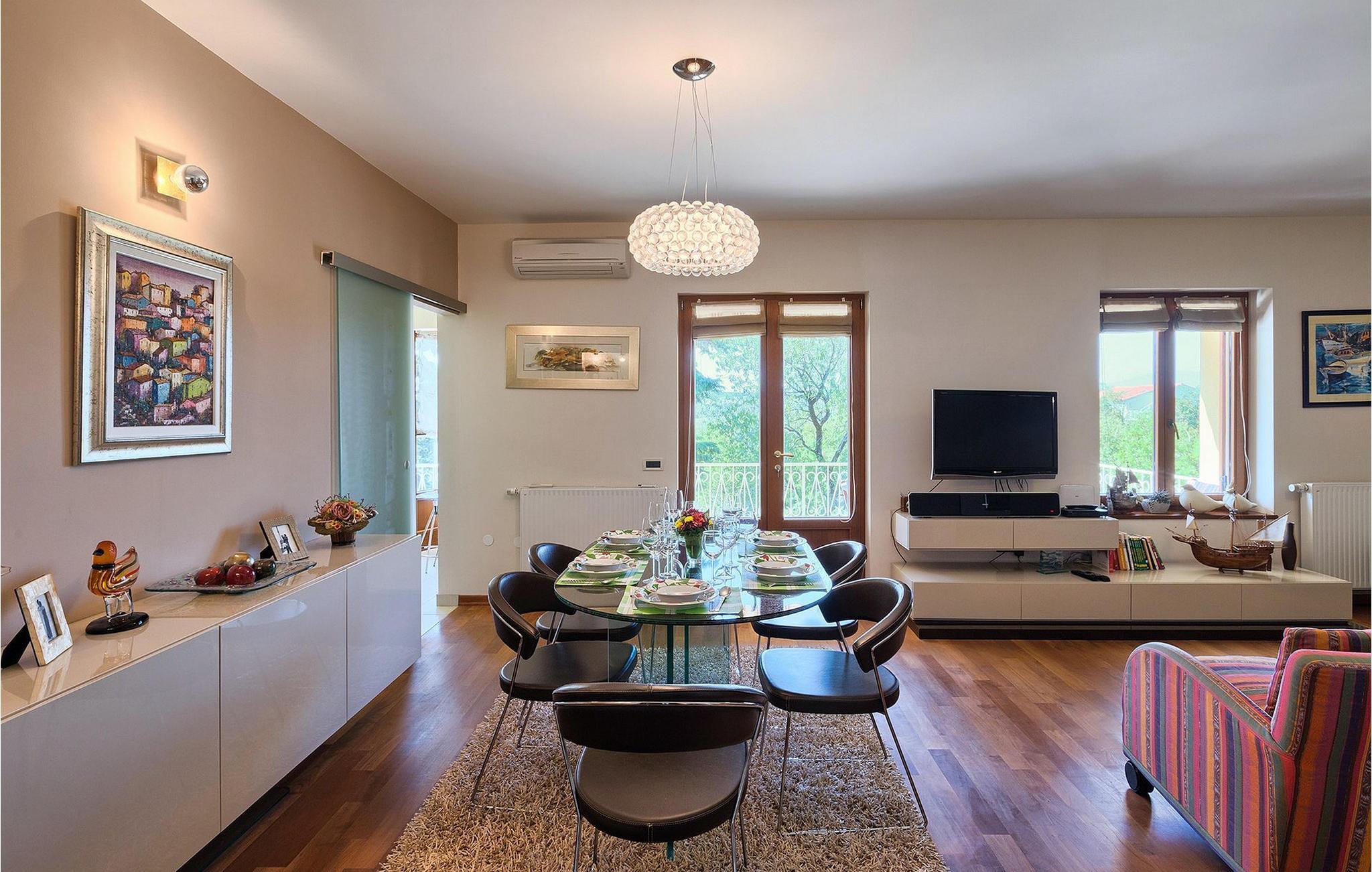 Hvis du er på utkikk etter en luksuriøs villa omgitt av vakker natur der du kan tilbringe en avslappende familieferie, er Villa Perla det ideelle valget for deg. Villaen er en ekte perle: Rommene er fordelt over to etasjer, og i hver etasje er det en luftig og lys stue, et fullt utstyrt kjøkken og en spisestue.