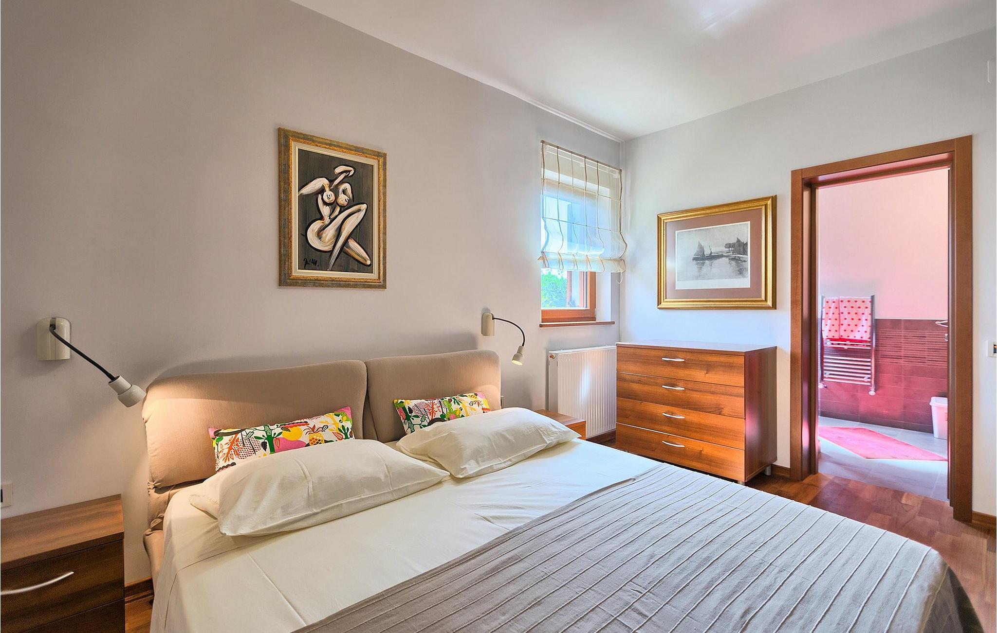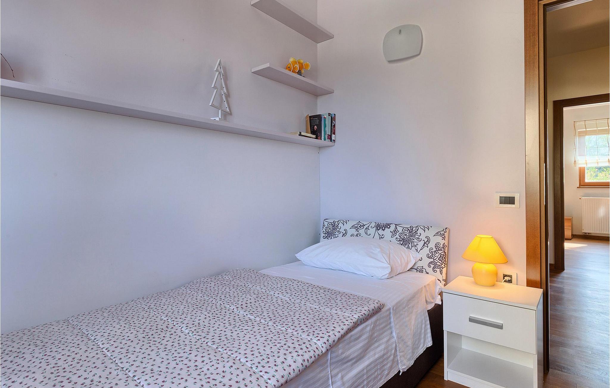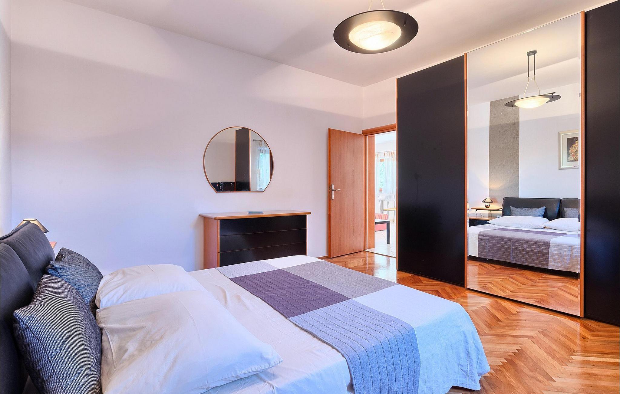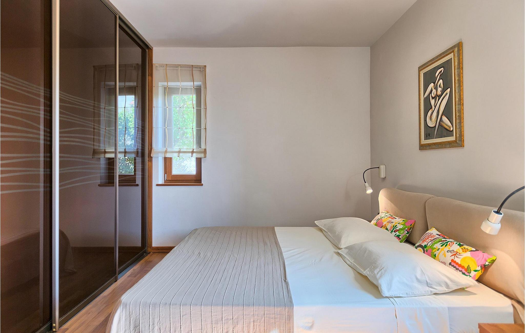 Villaen har plass til opptil 7+1 gjester i de fire komfortable soverommene, hvorav ett ligger i første etasje, noe som gjør den velegnet for barn. Leilighetene er ikke forbundet med en innvendig trapp. Hver leilighet er tilgjengelig utenfra og har egen inngang.