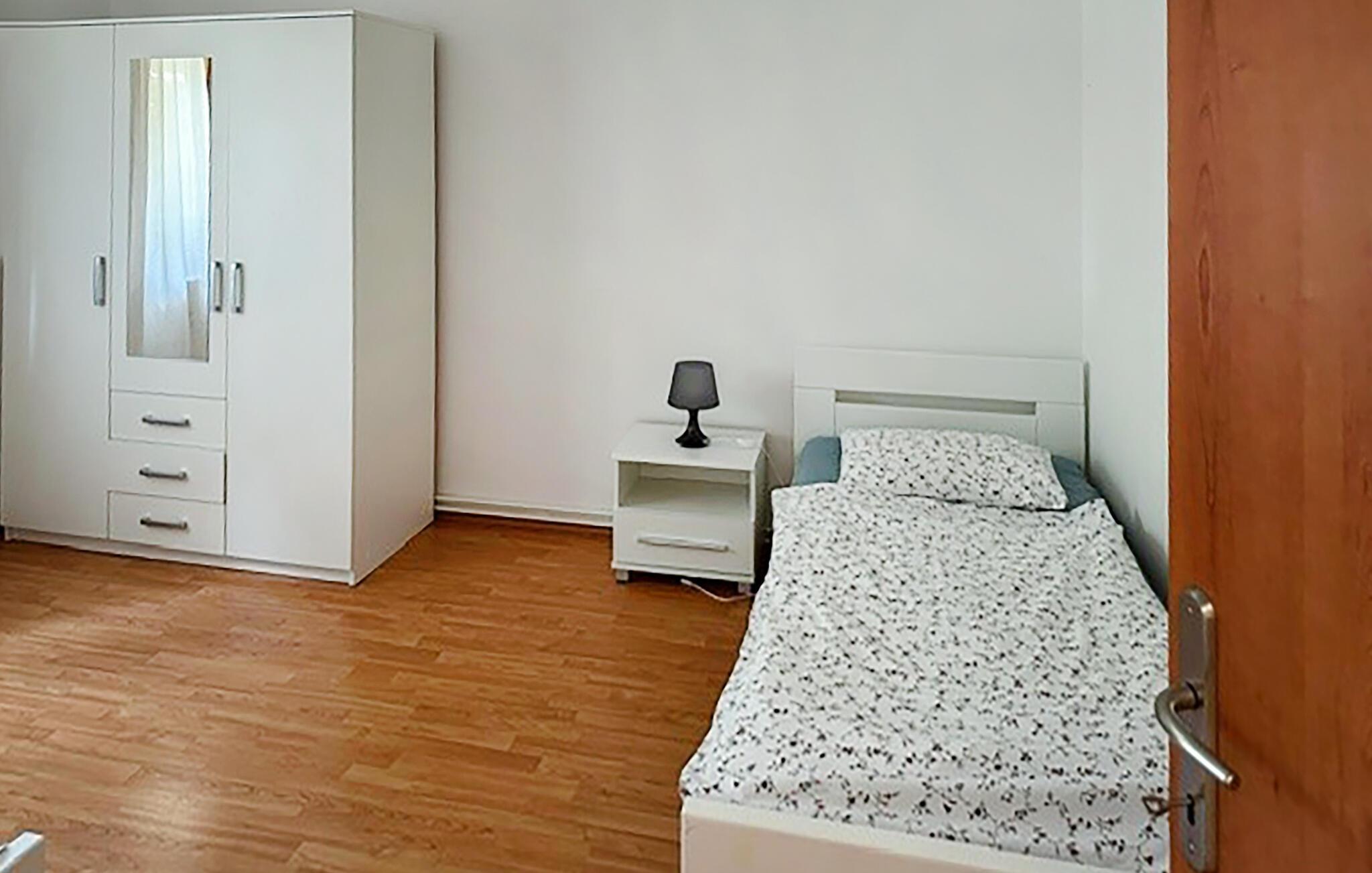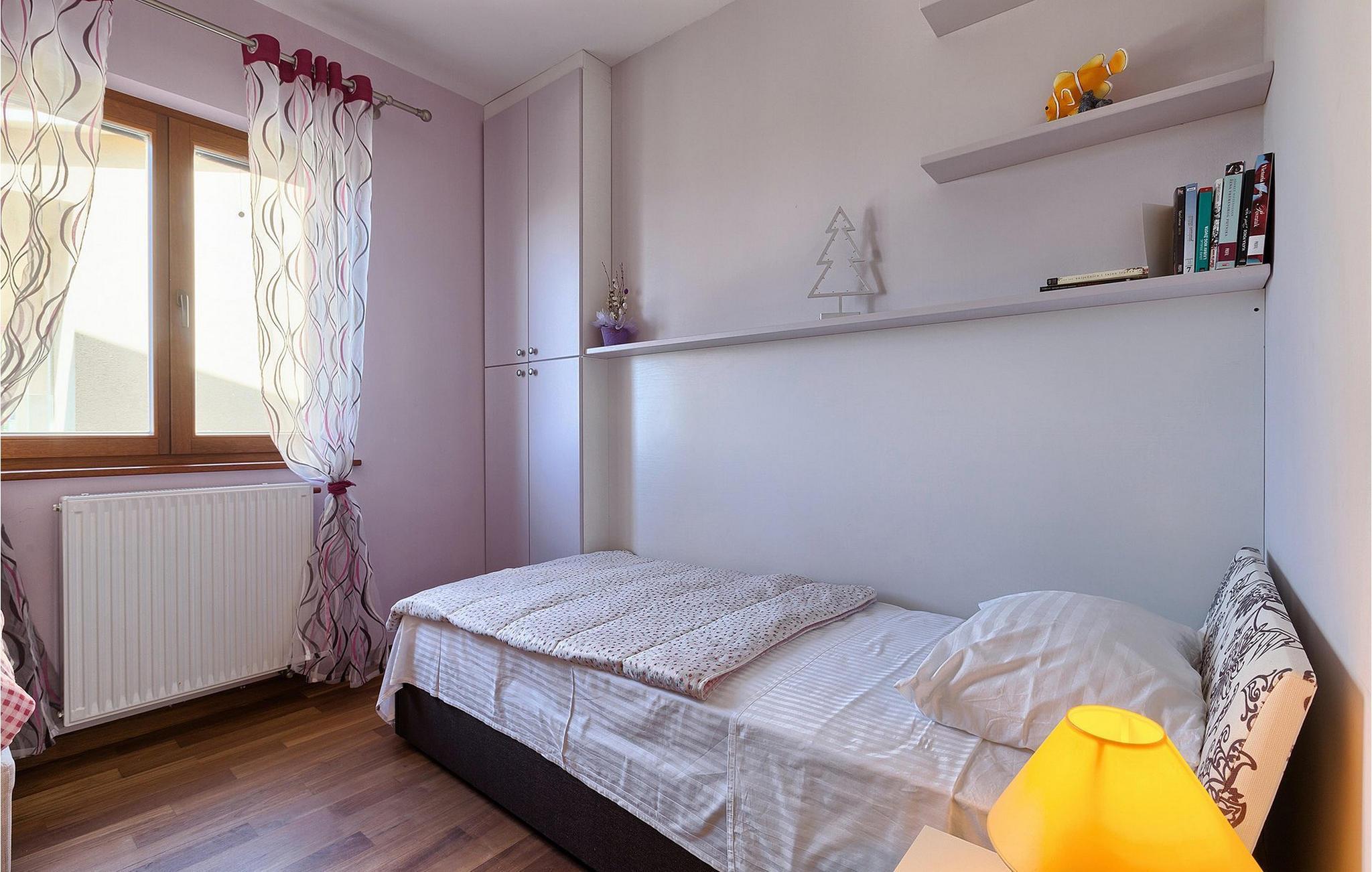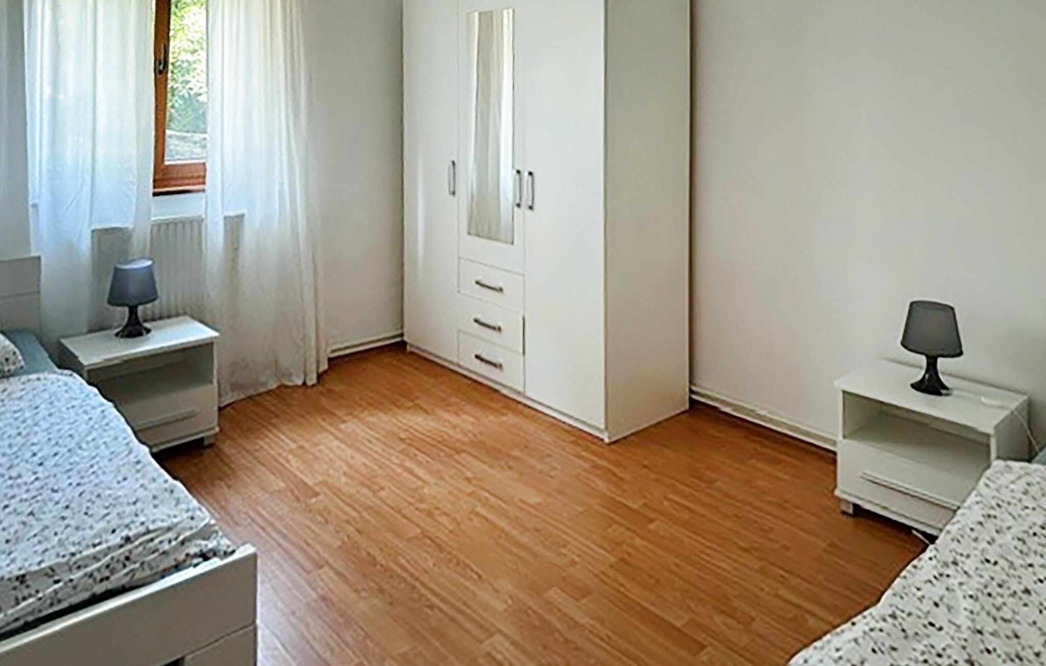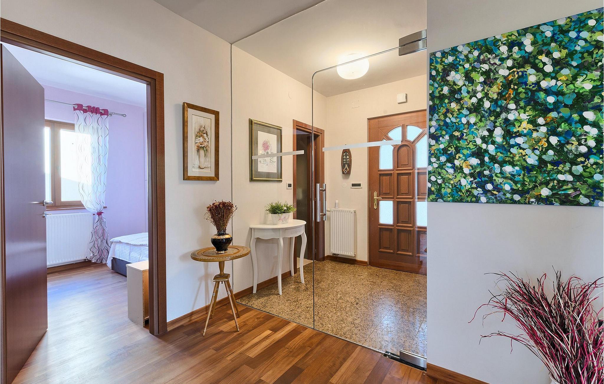 Villaen har plass til opptil 7+1 gjester i de fire komfortable soverommene, hvorav ett ligger i første etasje, noe som gjør den velegnet for barn. Leilighetene er ikke forbundet med en innvendig trapp. Hver leilighet er tilgjengelig utenfra og har egen inngang.