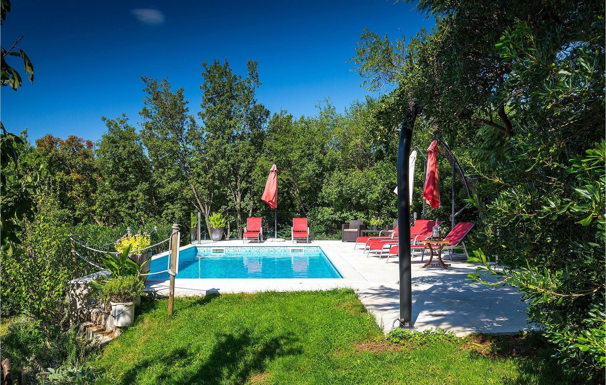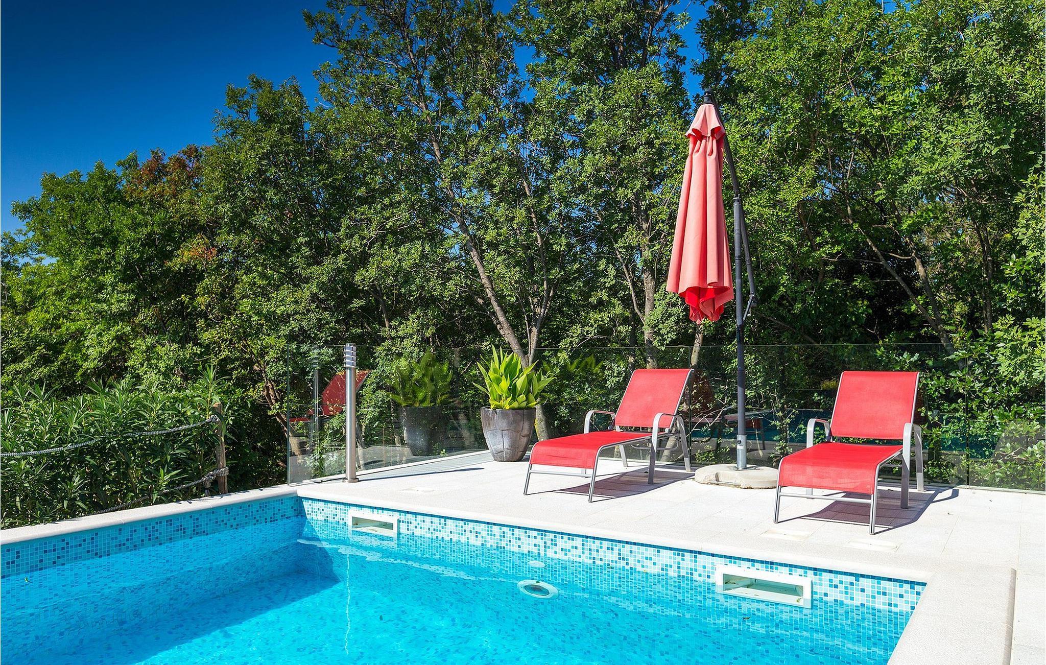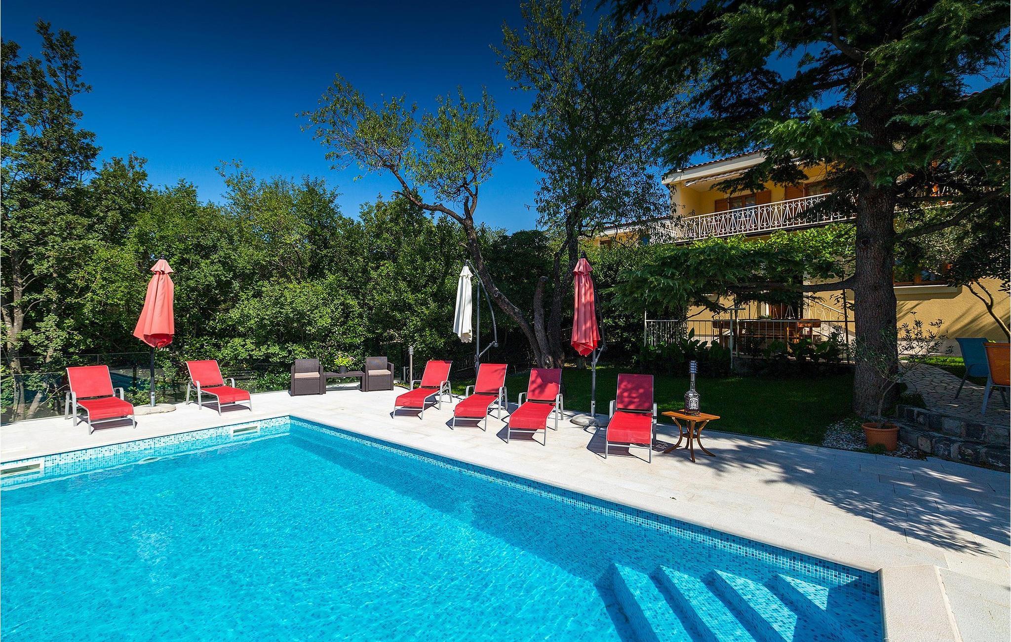 Det er mulig å slappe av utendørs flere steder, så du kan velge å nyte morgenkaffen, et måltid eller en forfriskende drink i løpet av dagen på terrassen, som har en overbygd del, men også en markise som gir skygge. Du kan også slappe av i hagen under et tre. Villa Perla ligger i Jadranovo, et lite og rolig sted bare en kort kjøretur fra turistsentrene Crikvenica og Novi Vinodolski. I Crikvenica og Novi Vinodolski finner du mange restauranter, vakre strender og alle slags aktiviteter for en aktiv ferie. Vinodol-dalen er perfekt for sportsentusiaster: sykling, klatring, fiske og paragliding er bare noen få anbefalinger. Øyene Krk og Cres, samt en av de vakreste kystbyene, Opatija, er lett tilgjengelige fra denne fantastiske beliggenheten omgitt av uberørt natur. Nærmeste restaurant og butikk ligger i gangavstand fra villaen.