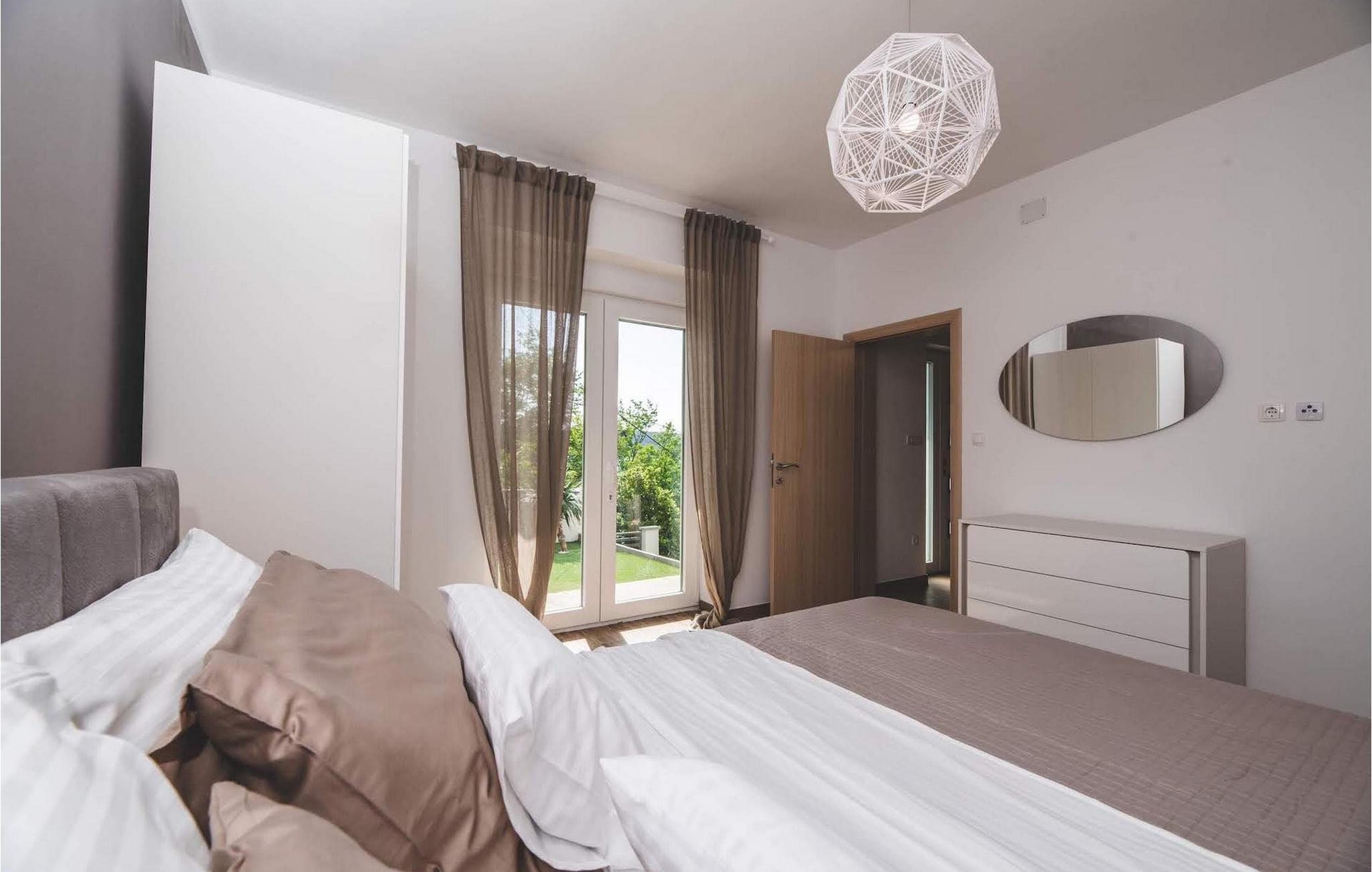 Den vakre Villa Grace ligger bare noen få skritt fra den nærmeste rullesteinsstranden i Jadranovo, en liten landsby i Kvarner-regionen. Denne villaen er ideell for en sommerferie, siden den har rikelig med plass utendørs, og du kan nyte hvert minutt av ferien ved å nyte middelhavsatmosfæren og den fantastiske havutsikten. Det private bassenget er et spesielt godt sted å slappe av. I forlengelsen av bassenget ligger takterrassen med solsenger - det perfekte stedet i solnedgangen. Villaen er delt inn i to etasjer. Hovedinngangen kommer fra bassengområdet, og hører egentlig til den øverste etasjen. I denne etasjen er det et flott fellesrom med mye naturlig lys og selvfølgelig en fantastisk utsikt. Rommet er delt inn i et fullt utstyrt kjøkken og en stue med spiseplass. To soverom ligger på samme nivå. De resterende to soverommene ligger i første etasje og har utgang til plenen, hvor det er to solsenger med havutsikt. Tre av de fire soverommene har eget bad, noe som gir gjestene maksimal komfort. En overbygd spiseplass med plass til 8 personer ligger på terrassen ved siden av stuen, og en kullgrill er tilgjengelig for dem som ønsker å tilberede måltider utendørs. Det er vanskelig å forlate en slik villa når du først er her! Dagligvarelevering fra supermarkeder og bønder er tilgjengelig på forespørsel. Den praktiske beliggenheten til denne eiendommen er en ideell mulighet for de som foretrekker en rolig ferie uten stress og støy. Hele Vinodol-dalen er et paradis for fiskere, syklister, turgåere, klatrere og paraglidere. Det finnes mange sykkelstier, vandrestier og turstier som går langs de fascinerende områdene i Vinodol. Dette gir gjestene våre mulighet til å oppleve uberørt natur og kulturarv. Kystbyene Crikvenica og Novi Vinodolski med vakre strender og restauranter eller øya Krk ligger bare 10 minutter unna med bil. Den største kroatiske havnebyen Rijeka ligger 30 km unna, og Rijeka lufthavn ligger 5 km unna. Leiebil anbefales.