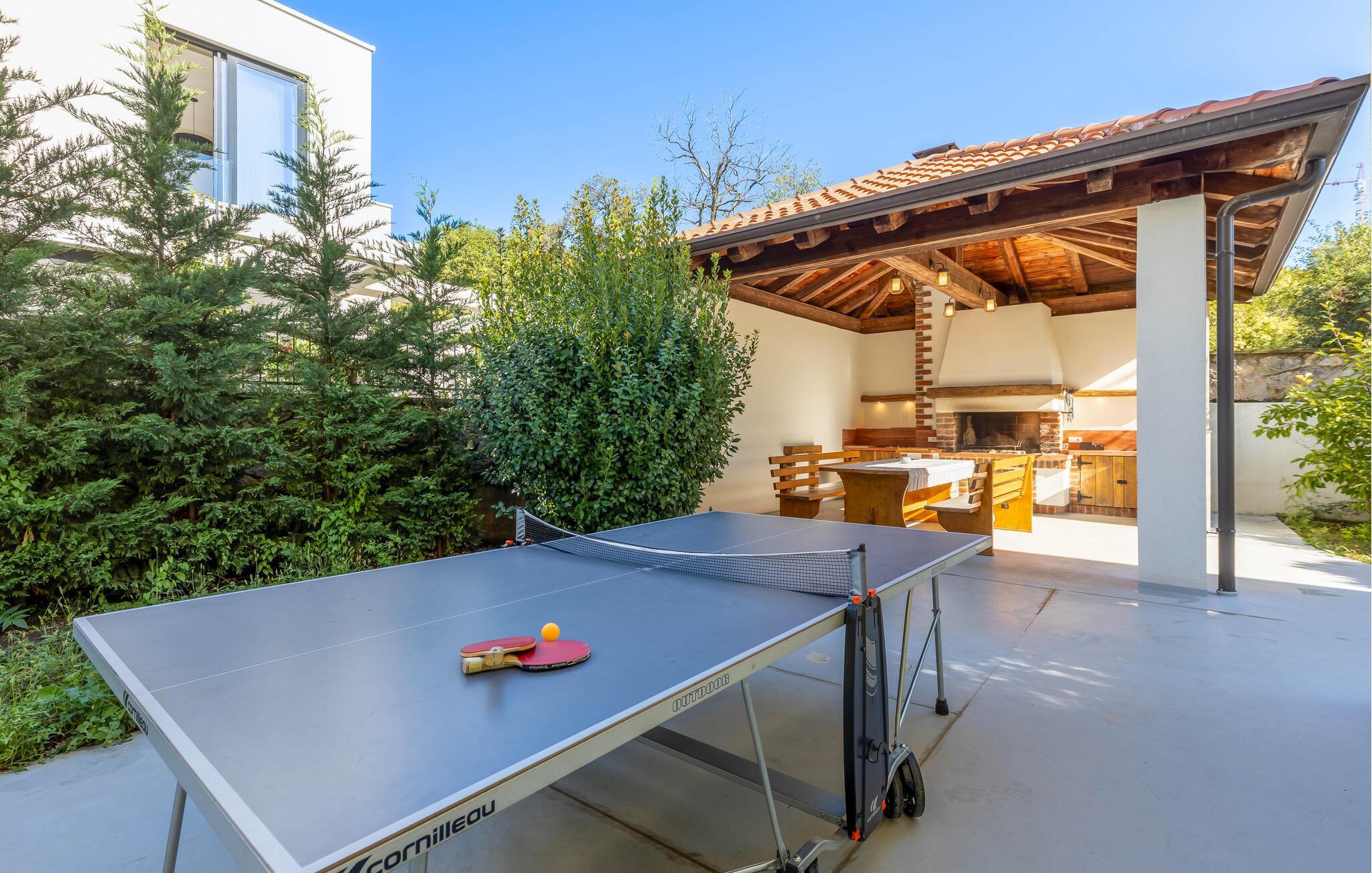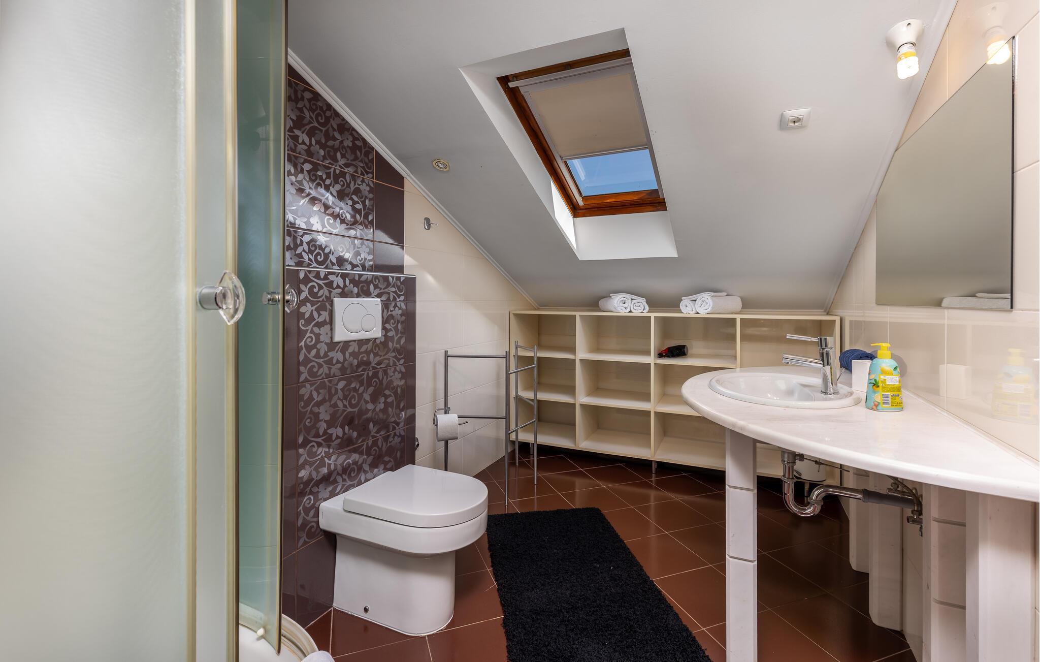 Dette vakre to-etasjes huset med basseng og havutsikt ligger i den lille kystbyen Kostrena. Huset er stort og komfortabelt, ideelt for en stor familie. Det er en taverna i kjelleren, ideell for å tilbringe tid med kjære. Fra den store stuen har du tilgang til terrassene og bassenget. De øverste etasjene er tilgjengelige via innvendige trapper. 2. etasje er på loftet (takhelling til 110 cm). Kostrena har vakre, velholdte strender og en lang promenade ved sjøen. Besøk byen Rijeka, som er rik på arrangementer i sommermånedene.