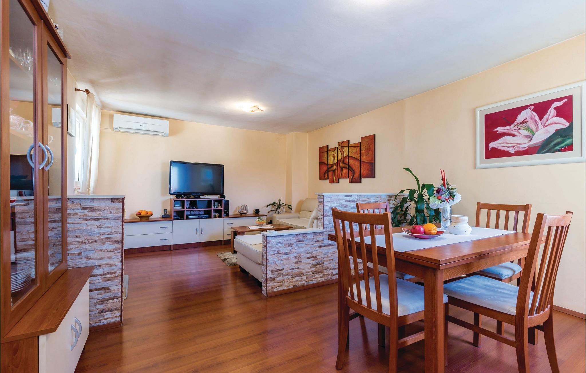 Tilbring ferien i dette rekkehuset i kystlandsbyen Kostrena. Denne innkvarteringen i to etasjer er møblert med omhu, og stuen med kjøkken ligger i øverste etasje, med utgang til en stor, delvis overbygd terrasse, hvor du sikkert vil tilbringe mye tid. Soverommene ligger i første etasje. I Kostrena er det vakre strender, restauranter og en promenade ved sjøen. I nærheten ligger en idrettshall, et dykkesenter og en seilklubb. Besøk også Rijeka og Crikvenica, med mye underholdning, shopping og kultur.