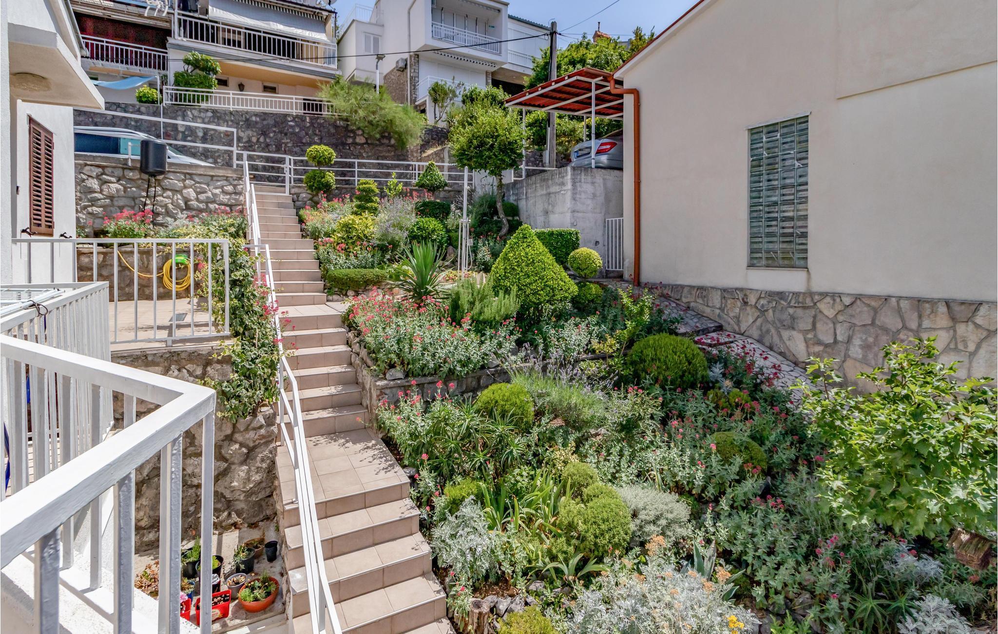 Denne sjarmerende ferieleiligheten i to etasjer vil glede deg. I øverste etasje (skrånende tak på 190 cm) er soveområdet. I første etasje er stuen atskilt fra det lille kjøkkenet med bar med to trapper. Fra stuen har du tilgang til den store terrassen med en fantastisk panoramautsikt over havet, hvor du sikkert vil tilbringe mesteparten av tiden din. Det er også en utendørs dusj og en felles grill på den lille og terrasserte tomten. Lange trapper fører ned til stranden, og det er også hyggelige tavernaer med tradisjonell mat i nærheten. Du kan også besøke Crikvenica og øya Krk med mange kulturelle, underholdende og sportslige fritidsaktiviteter. Den unike naturen i denne regionen, samt de mange mulighetene for en aktiv ferie, er uovertruffen.