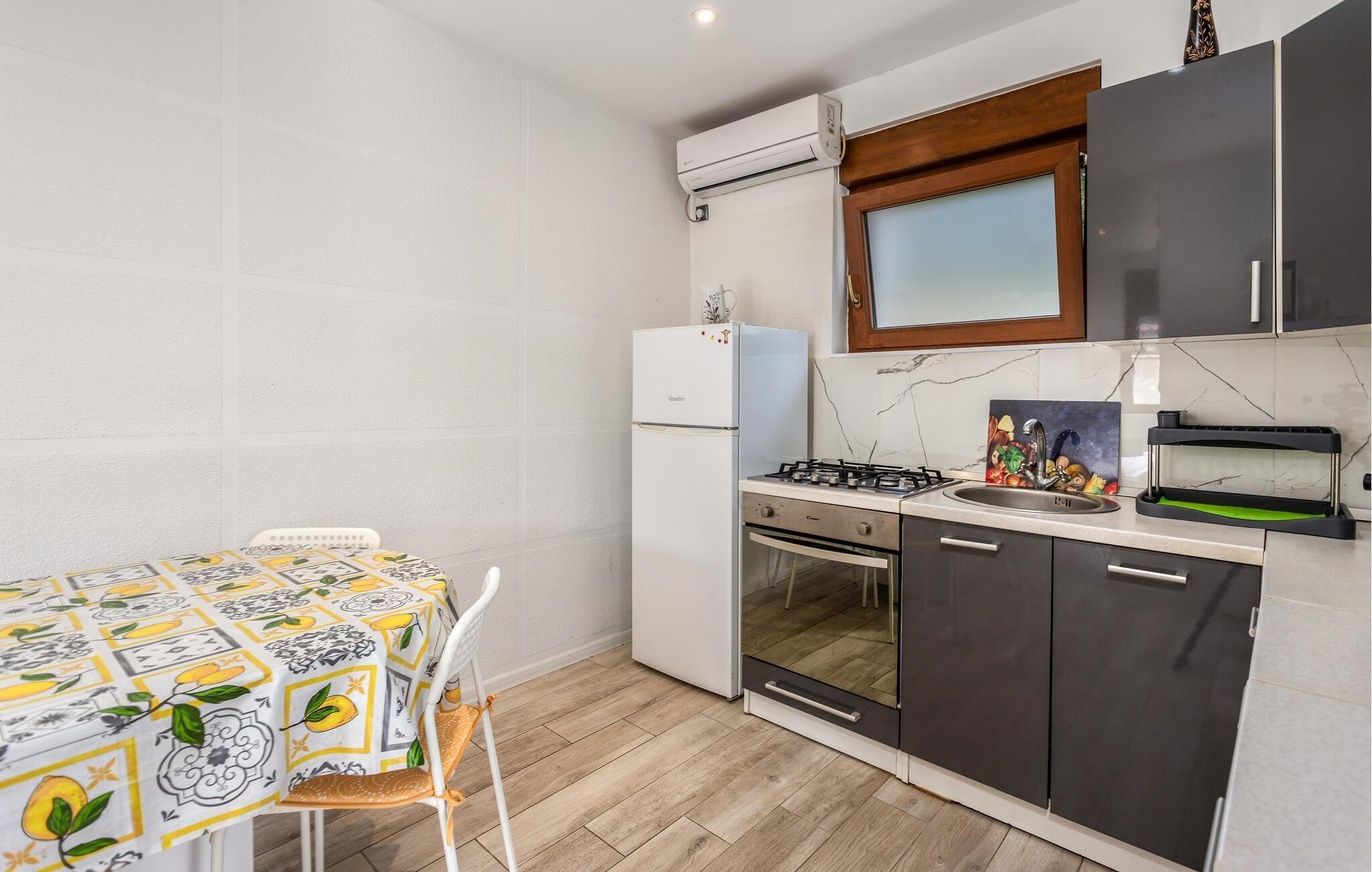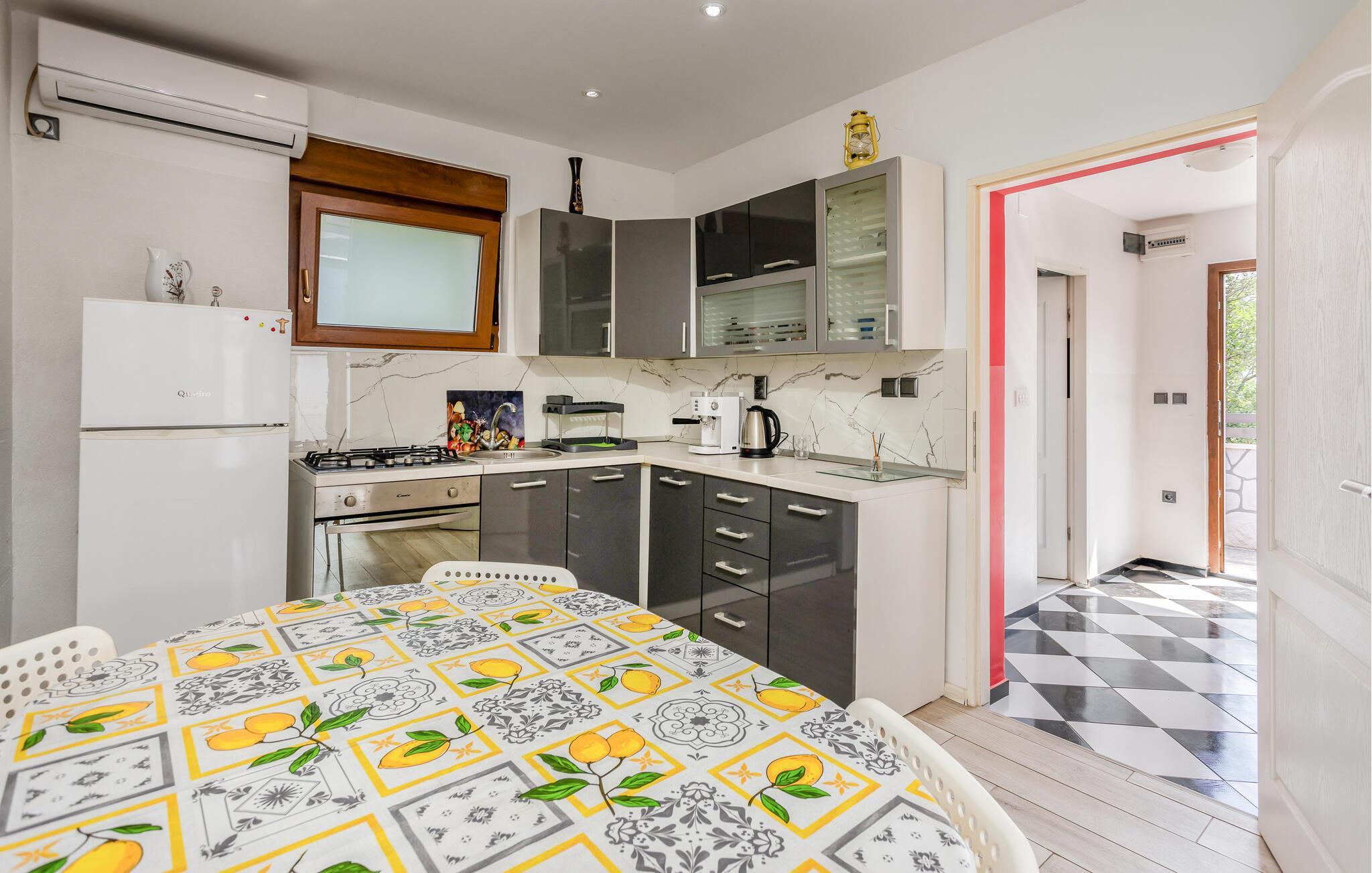 Ditt funksjonelt innredede feriehus er det perfekte utgangspunkt for ferieutflukter i Crikvenica-området. Start ferien med frokost på terrassen under den skyggefulle parasollen og nyt fritiden. Den milde brisen og forventningen til dagen gir en avslappende morgen. Inne i ferieleiligheten venter lyse, vennlige og koselig innredede rom på deg. Det velutstyrte kjøkkenet inviterer deg til å trylle frem kulinariske herligheter med ferske, regionale ingredienser.