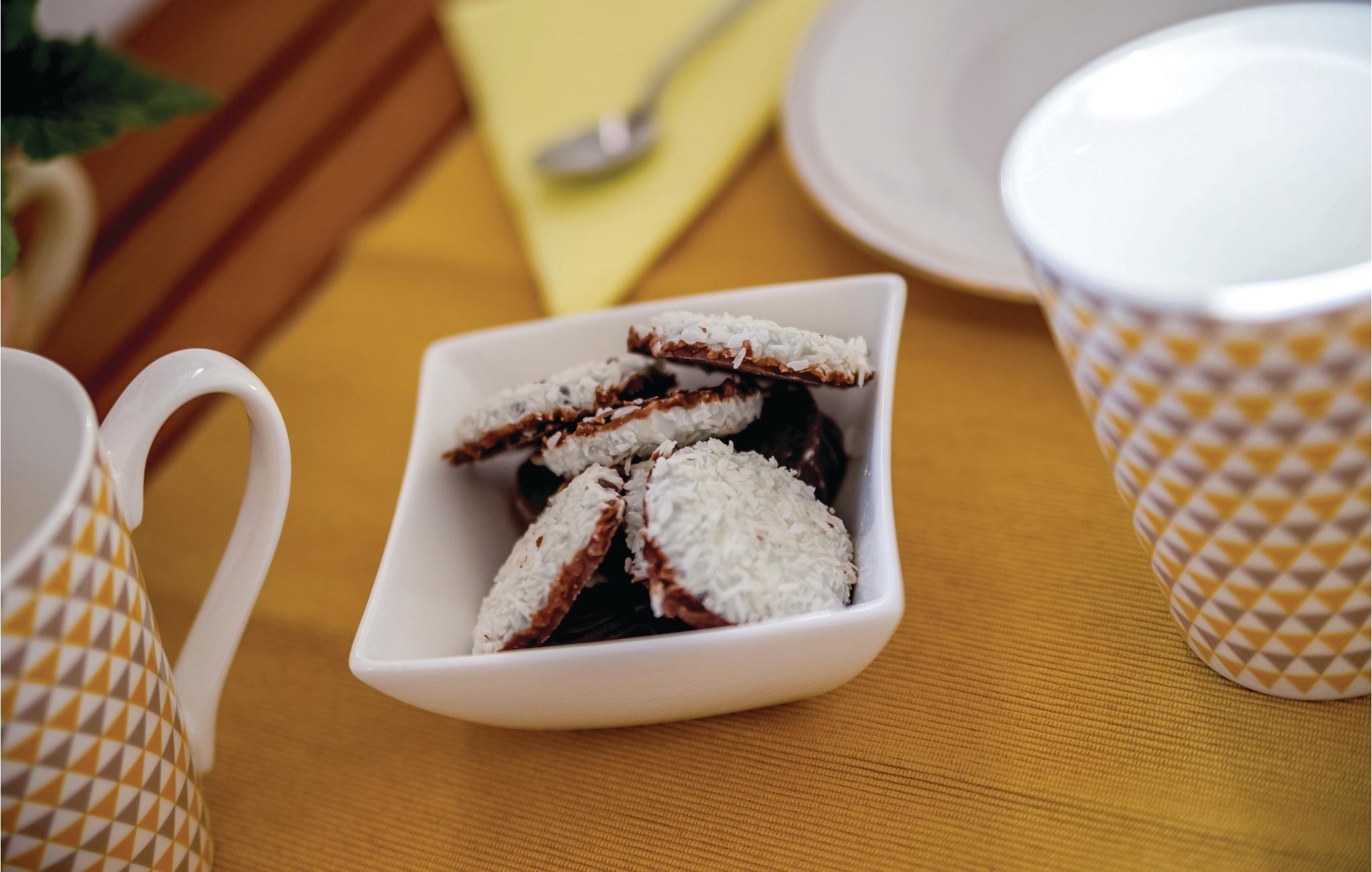 Det lille feriehuset i tre er kjærlig innredet innvendig. I det lukkede uteområdet venter en vakker frukthage med svømmebasseng, grill, hagebord og stoler. Trehuset ligger på landsbygda og i nærheten av en skog. De nærmeste badestrendene ligger bare noen få minutter unna med bil. Omgivelsene er ideelle for lange turer, jogging og sykling.