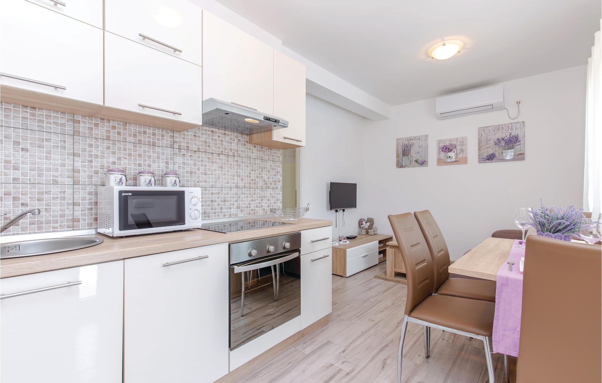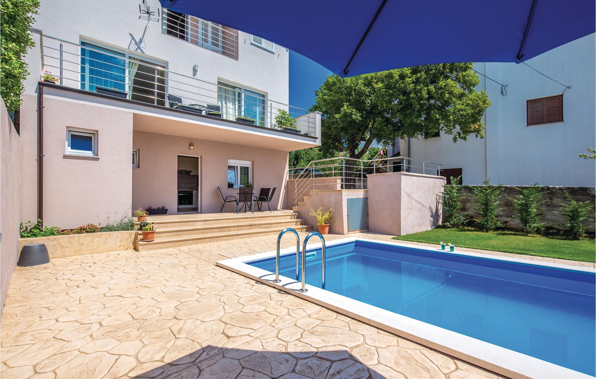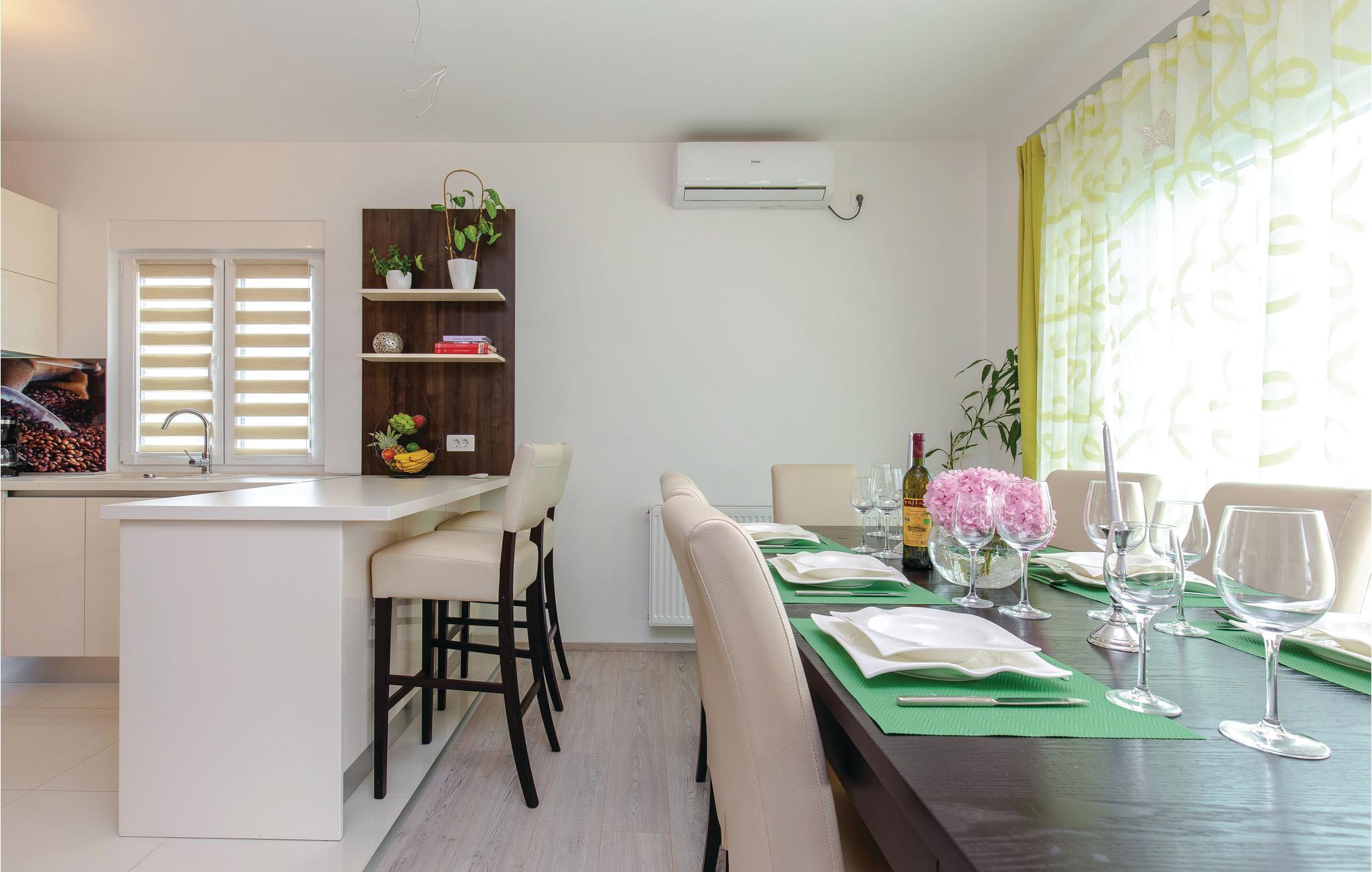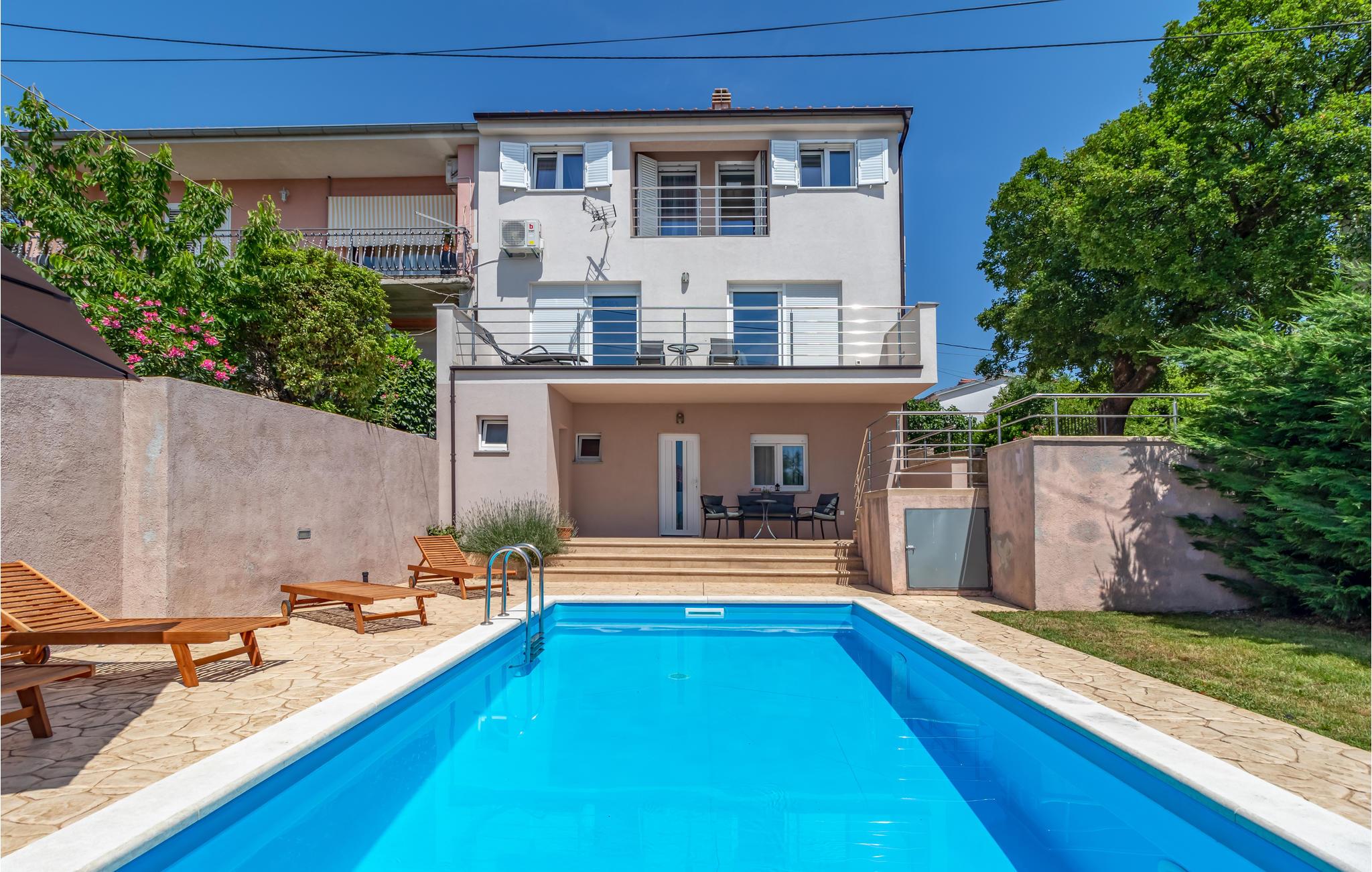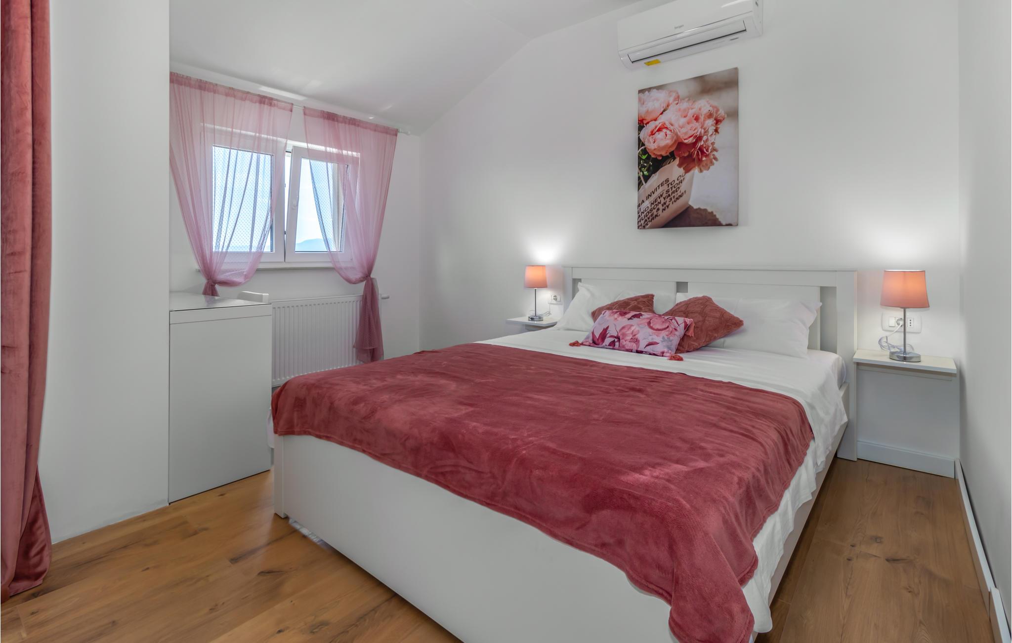 Dette vakre feriehuset med basseng ligger i den lille, sjarmerende landsbyen Mrika. Til din disposisjon er to etasjer, som er tilgjengelige via utvendige trapper, hver etasje er utstyrt med kjøkken og bad. På gårdsplassen er det et svømmebasseng og en nydelig terrasse med grill. De nærliggende strendene byr på ren badeglede. Byene Crikvenica og Novi Vinodolski er også innen rekkevidde for et besøk, og øya Krk er også vel verdt et besøk; alle 3 destinasjonene er rike på arrangementer i sommermånedene.