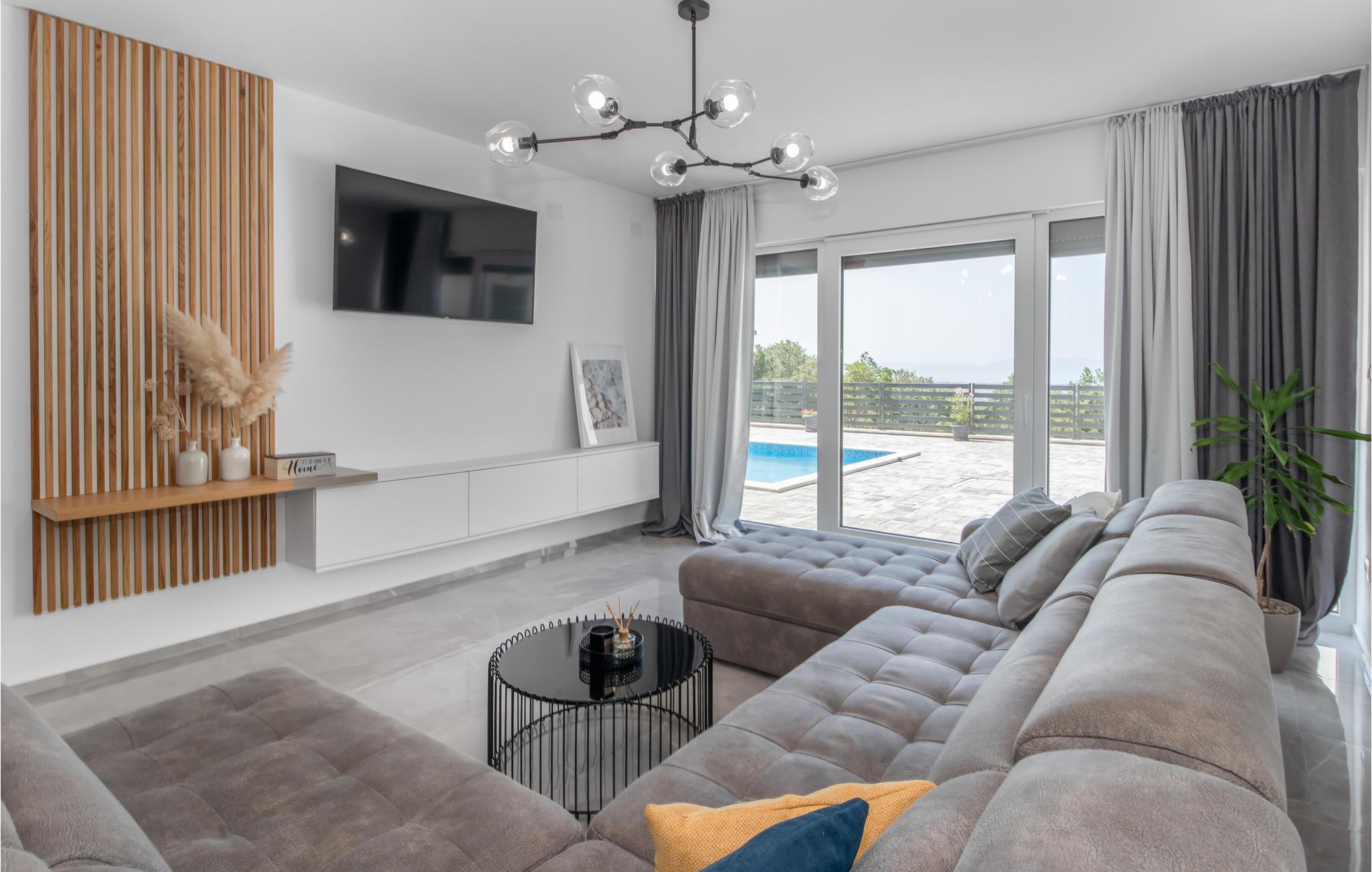 Utenfor inviterer den store terrassen med basseng deg til å slappe av i solen. Fra en av balkongene har du en spektakulær utsikt over øya Krk og Kvarnerbukten - ideell for å legge hverdagen bak deg.