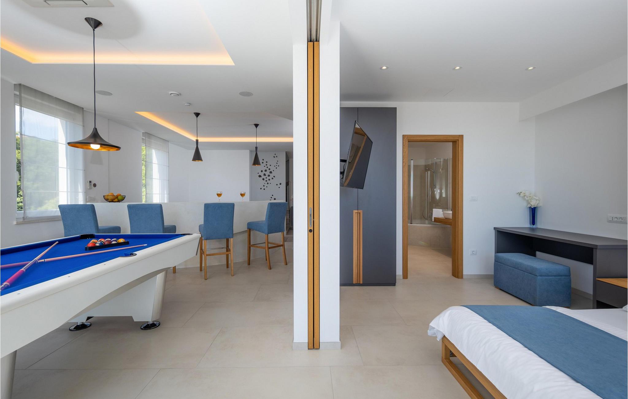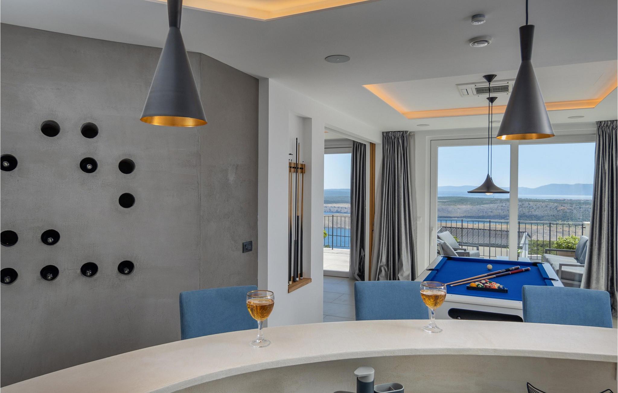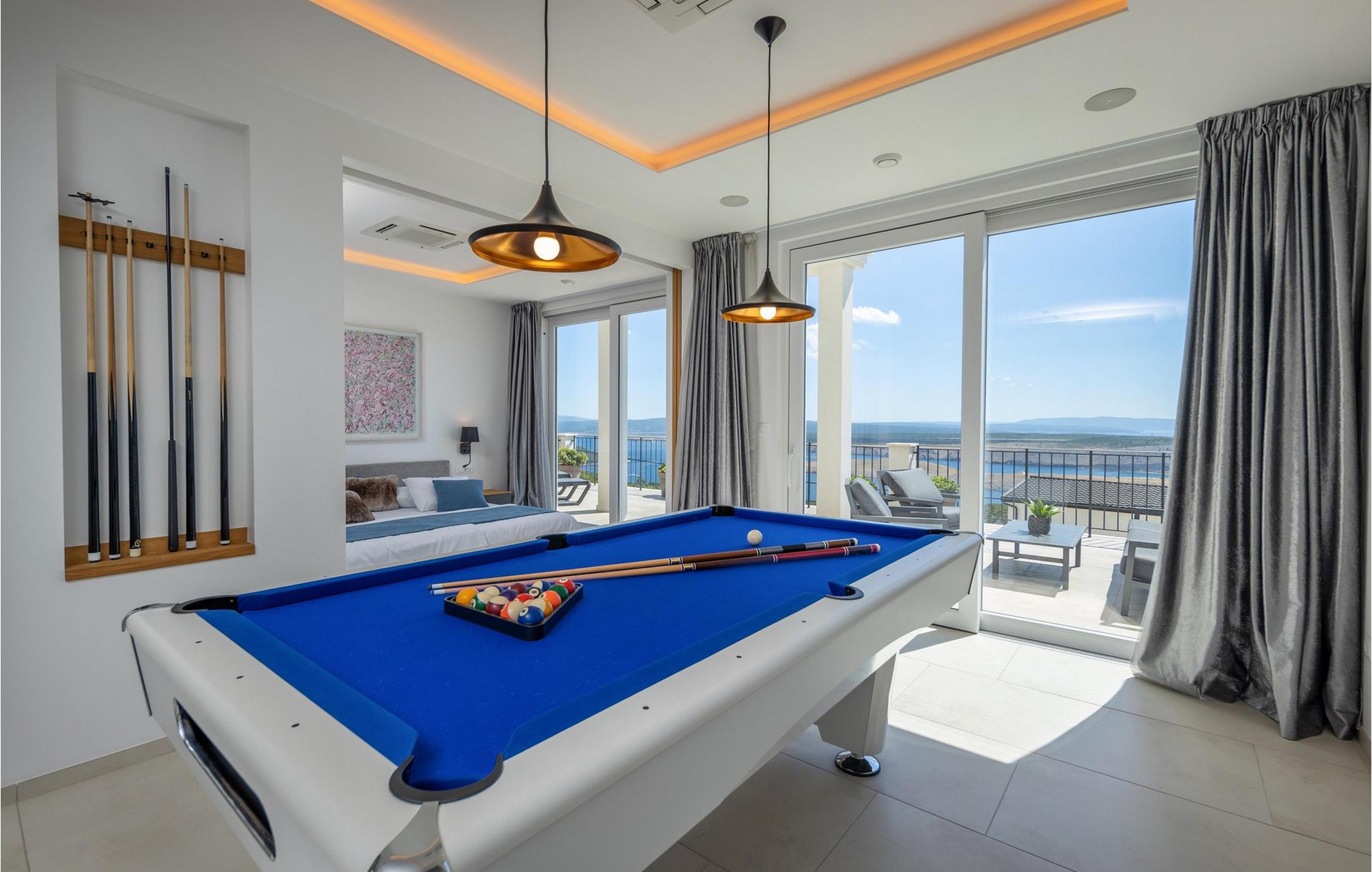 Luksusvillaen Margo ligger i ?mrika, bare 14 km fra byen Crikvenica. Denne vakre villaen gir deg den etterlengtede freden og roen og ferien du fortjener, og takket være den interessante interiørdesignen får du en perfekt oase som er en konge verdig. Med sine 325 m2 boareal tilbyr Villa Margo komfortabel innkvartering for maksimalt 10 personer. Den består av første etasje, første etasje og andre etasje. I første etasje finner du den romslige stuen, som er utstyrt med sofa, TV, to lenestoler og to krakker. Ved siden av stuen er det en spisestue med spisebord for 10 personer og et fullt utstyrt, moderne kjøkken hvor du finner alt du trenger for å tilberede favorittrettene dine. I andre etasje er det 3 doble soverom med eget bad med badekar. Det som vil glede deg spesielt, er det separate rommet med biljard. Ved siden av er det en liten bar hvor du kan ta en drink med en vennegjeng og spille et av de mest kjente spillene. I andre etasje venter ytterligere to soverom med dobbeltsenger og to bad med dusj. Andre fasiliteter inkluderer vaskemaskin, tørketrommel og strykejern. Hvis du har barn med, kan du også bruke to barnesenger (65x125) og en matdispenser. I tillegg har villaen et separat toalett. På utendørsterrassen kan du forfriske deg i et oppvarmet basseng på 35 m2 og 1,35 m dypt. Her kan du sole deg på 10 solsenger og lese favorittbøkene dine. På utegrillen, som drives med kull eller ved, kan du tilberede deilige tradisjonelle retter som du kan nyte ved det utendørs spisebordet med 10 sitteplasser. Hvis du liker å fotografere eller bare vil nyte et glass god vin mens du ser på den vakre solnedgangen, er dette stedet å være, for på Villa Margo kan du gjøre nettopp det. Fra terrassene med solsenger og et sittegruppe med bord har du utsikt over den vakre, uberørte naturen og det endeløse havet. Den mest perfekte delen av Villa Margo er rommet med boblebad, badstue og flere enkle treningsapparater. Til underholdning for store og små er det badminton, en hage og en volleyballbane. Villa Margo tilbyr 4 private parkeringsplasser på egen gårdsplass. Av attraksjoner og lokale aktiviteter som sikkert vil interessere deg, kan nevnes vinturer der du kan smake på deilige istriske viner som Merlot, Pinot Noir og Cabernet Sauvignon, vannsport, paragliding og gokart som vil glede barna dine, utforsking av historiske severdigheter og byer, olivenoljeturer, golf og annet underholdningstilbud. ?mrika ligger 25 km fra Opatija og 15 km fra Rijeka, noe som betyr at du kan besøke mange steder, steder der du kan ta bilder og få vakre minner. Glem heller ikke å prøve deilige retter på noen av de berømte restaurantene og tavernaene i Istria. Velkommen til Villa Margo, en villa du vil ønske å komme tilbake til igjen og igjen! *Villaen ligger i et stille og fredelig område og er ikke egnet for fester og høy musikk.
