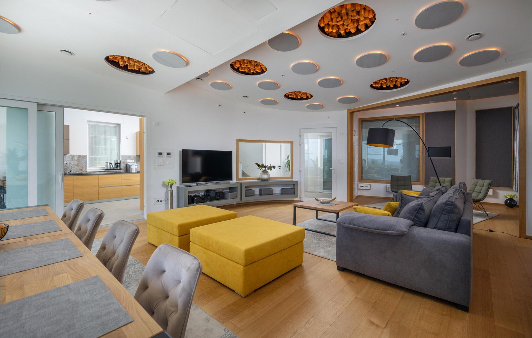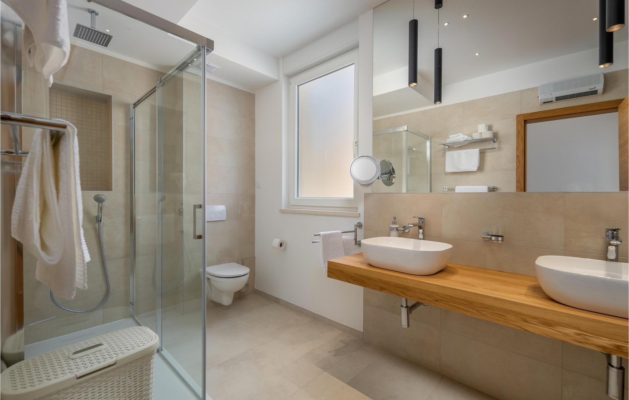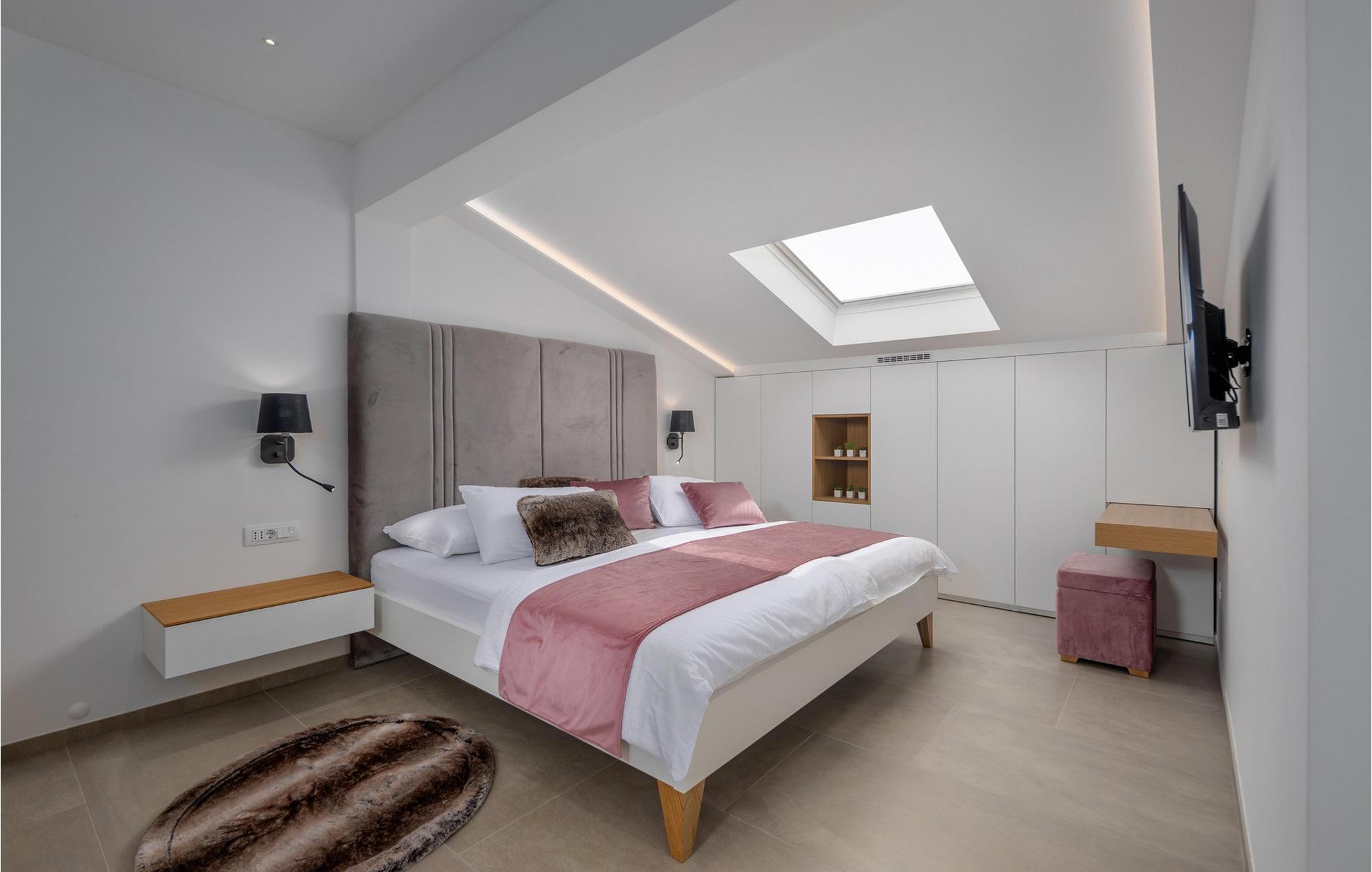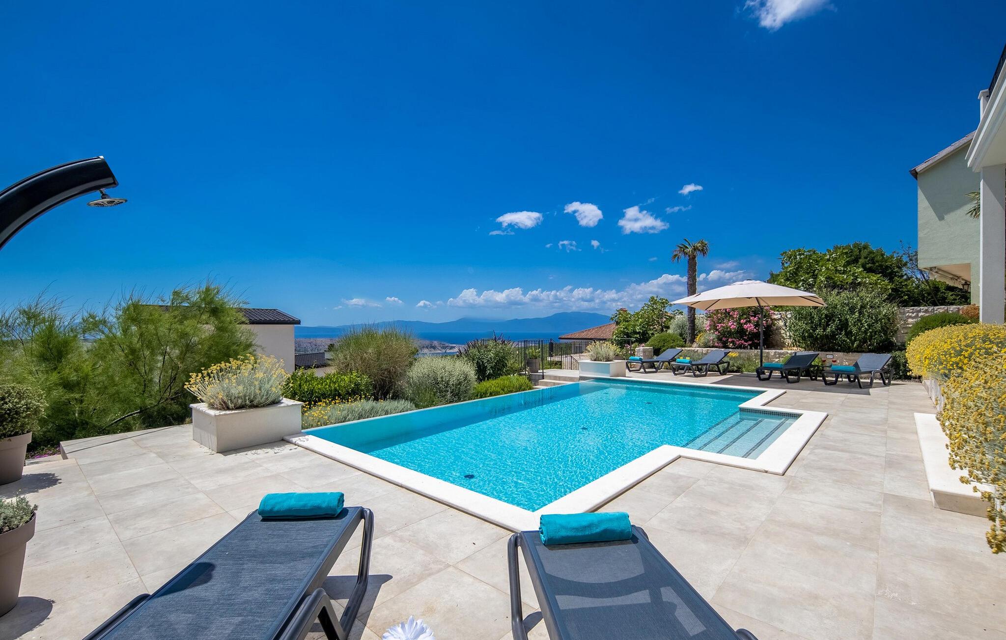 Luksusvillaen Margo ligger i ?mrika, bare 14 km fra byen Crikvenica. Denne vakre villaen gir deg den etterlengtede freden og roen og ferien du fortjener, og takket være den interessante interiørdesignen får du en perfekt oase som er en konge verdig. Med sine 325 m2 boareal tilbyr Villa Margo komfortabel innkvartering for maksimalt 10 personer. Den består av første etasje, første etasje og andre etasje. I første etasje finner du den romslige stuen, som er utstyrt med sofa, TV, to lenestoler og to krakker. Ved siden av stuen er det en spisestue med spisebord for 10 personer og et fullt utstyrt, moderne kjøkken hvor du finner alt du trenger for å tilberede favorittrettene dine. I andre etasje er det 3 doble soverom med eget bad med badekar. Det som vil glede deg spesielt, er det separate rommet med biljard. Ved siden av er det en liten bar hvor du kan ta en drink med en vennegjeng og spille et av de mest kjente spillene. I andre etasje venter ytterligere to soverom med dobbeltsenger og to bad med dusj. Andre fasiliteter inkluderer vaskemaskin, tørketrommel og strykejern. Hvis du har barn med, kan du også bruke to barnesenger (65x125) og en matdispenser. I tillegg har villaen et separat toalett. På utendørsterrassen kan du forfriske deg i et oppvarmet basseng på 35 m2 og 1,35 m dypt. Her kan du sole deg på 10 solsenger og lese favorittbøkene dine. På utegrillen, som drives med kull eller ved, kan du tilberede deilige tradisjonelle retter som du kan nyte ved det utendørs spisebordet med 10 sitteplasser. Hvis du liker å fotografere eller bare vil nyte et glass god vin mens du ser på den vakre solnedgangen, er dette stedet å være, for på Villa Margo kan du gjøre nettopp det. Fra terrassene med solsenger og et sittegruppe med bord har du utsikt over den vakre, uberørte naturen og det endeløse havet. Den mest perfekte delen av Villa Margo er rommet med boblebad, badstue og flere enkle treningsapparater. Til underholdning for store og små er det badminton, en hage og en volleyballbane. Villa Margo tilbyr 4 private parkeringsplasser på egen gårdsplass. Av attraksjoner og lokale aktiviteter som sikkert vil interessere deg, kan nevnes vinturer der du kan smake på deilige istriske viner som Merlot, Pinot Noir og Cabernet Sauvignon, vannsport, paragliding og gokart som vil glede barna dine, utforsking av historiske severdigheter og byer, olivenoljeturer, golf og annet underholdningstilbud. ?mrika ligger 25 km fra Opatija og 15 km fra Rijeka, noe som betyr at du kan besøke mange steder, steder der du kan ta bilder og få vakre minner. Glem heller ikke å prøve deilige retter på noen av de berømte restaurantene og tavernaene i Istria. Velkommen til Villa Margo, en villa du vil ønske å komme tilbake til igjen og igjen! *Villaen ligger i et stille og fredelig område og er ikke egnet for fester og høy musikk.