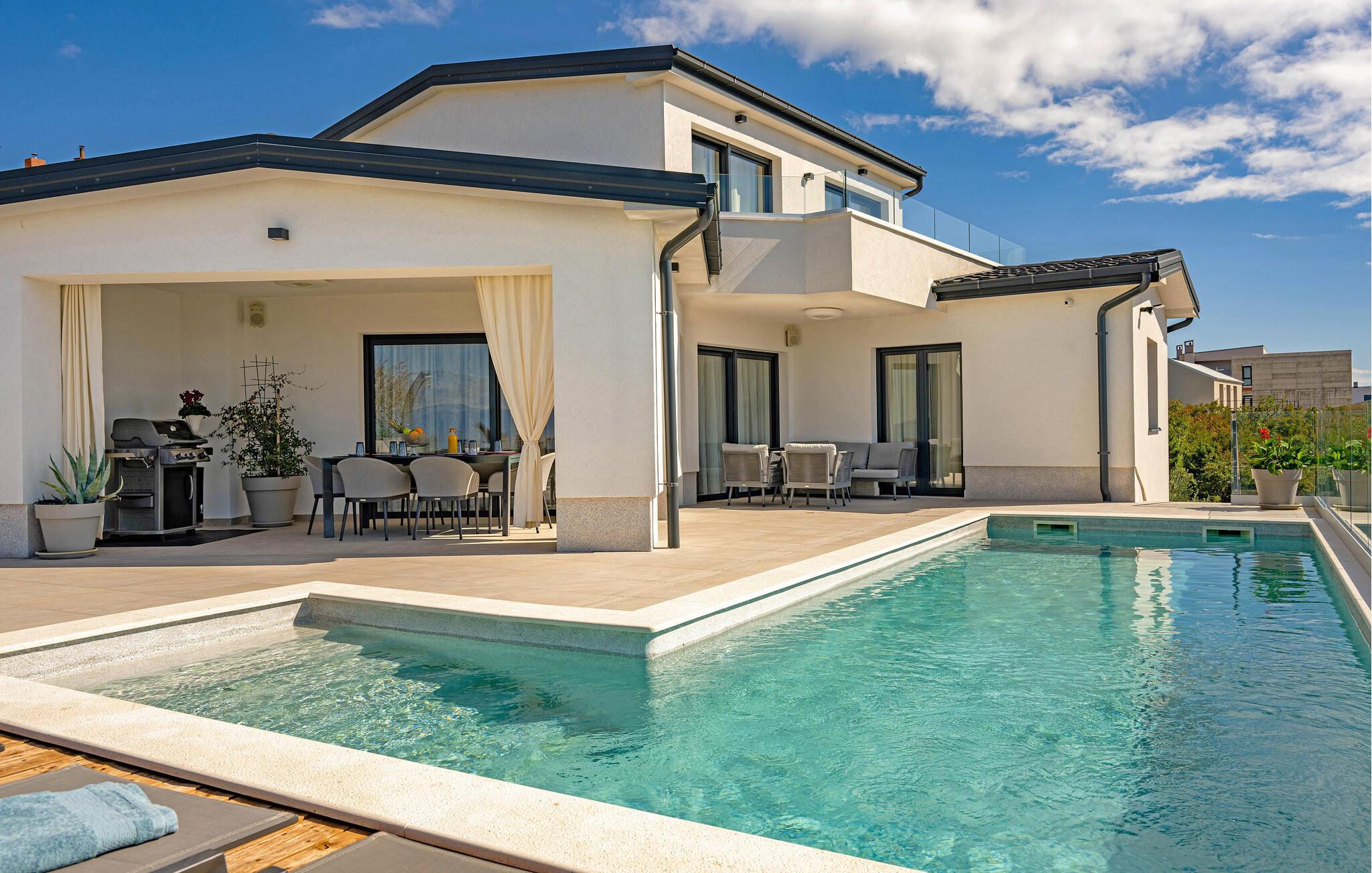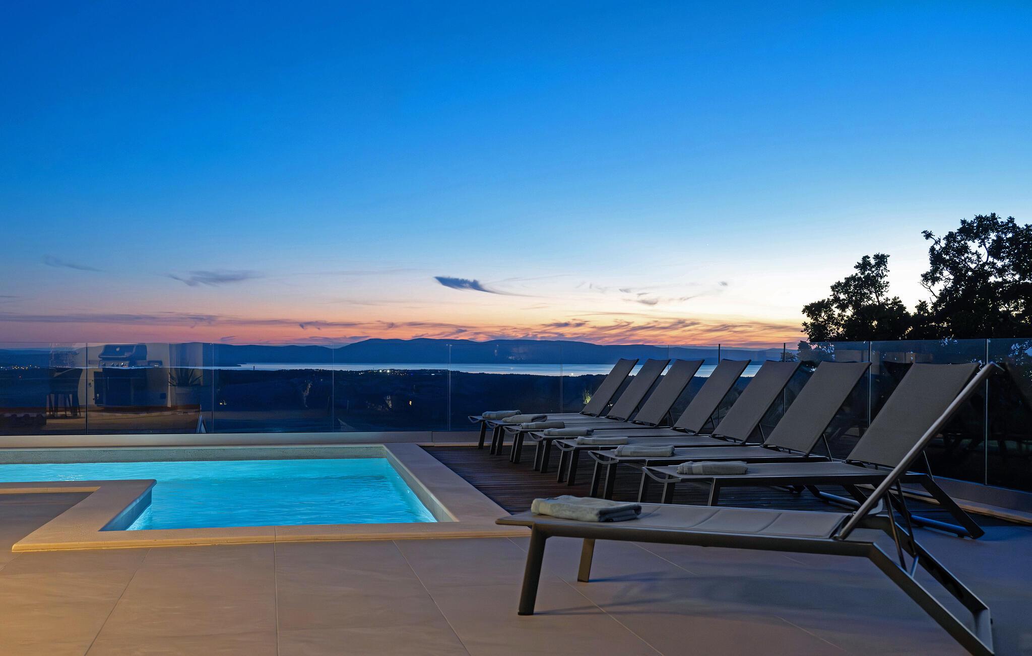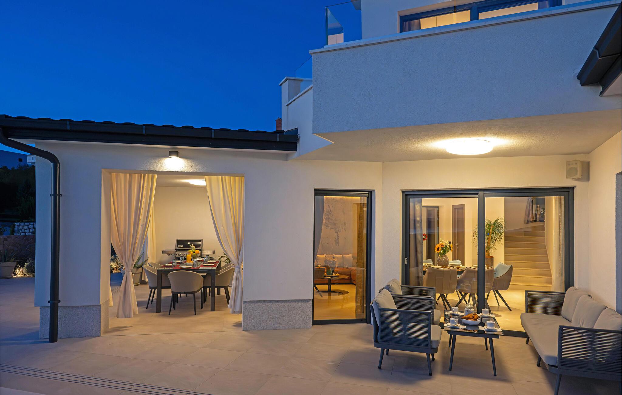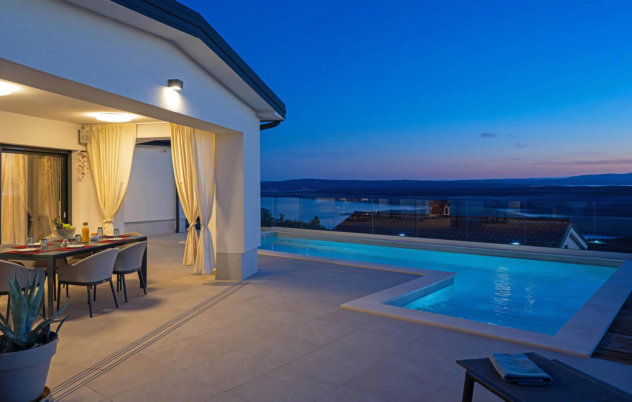 Villa Dumboka ligger i landsbyen Smrika, som tilhører Kraljevica, bare 20 km fra byen Rijeka. Kraljevica kan nås på bare noen få timer, enten du kommer fra München (506 km), Wien (511 km) eller Graz (318 km). Hvis du ønsker å tilbringe en rolig ferie i godt selskap med gode venner, er Villa Dumboka definitivt det rette valget for deg! Villa Dumboka ble bygget i 2021 i en moderne arkitektonisk stil og har plass til maksimalt 8 personer. Villaen har aircondition og 4 soverom med dobbeltsenger. Alle disse soverommene har også fire egne bad. Villaen har også vaskemaskin, tørketrommel og strykejern. Villaen har dessuten 2 separate toaletter og et bad med badekar. Hvis du har barn med deg, kan du bruke en mater og en barneseng. I første etasje er det et moderne og fullt utstyrt kjøkken med bar og 4 barstoler, en vakkert innredet stue med hjørnesofa, salongbord og TV og en spisestue med bord til 8 personer. Fra stuen og spisestuen er det utgang til en utendørsterrasse med spisebord for 8 personer, og ved siden av er det en utendørs grill (gass). Det oppvarmede bassenget på 36 m2 og en dybde på 1,35 m er et sted hvor du kan forfriske deg i løpet av dagen eller natten og sole deg på 8 solstoler. Det er også en taverna med toalett og et spillrom. Det er også en utendørs dusj. De yngste vil glede seg over TV, utendørs lekeplass, bordfotball og Playstation, og de som vil ha en aktiv ferie, vil glede seg over treningsrommet, og etter avtale er det mulig å få en avslappende massasje. Villa Dumboka har havutsikt fra de fleste rommene, og ved solnedgang kan du ta bilder eller male malerier av den uberørte naturen som omgir deg under oppholdet! Det er 5 parkeringsplasser på gårdsplassen. Noe av det interessante med Kraljevica er at byen er kjent for et av de eldste skipsverftene i Middelhavet. I tillegg grunnla tyskeren Olschbauer den første stranden og etablerte Liburnija Hotel i 1904, som senere ble omgjort til et sanatorium. Underholdningen og de lokale aktivitetene du kan prøve, inkluderer vinturer, bading på stranden, fiske, dykking, seiling, olivenoljeturer og vannsport. Dette er helt sikkert et sted der alle kan finne noe for seg selv og avrunde ferien på sin egen måte! Kom og se skjønnheten i dette området med egne øyne, og ta med deg gode minner fra den perfekte årstiden! Velkommen til Villa Dumboka! Kjæledyr er tillatt i dette overnattingsstedet etter eierens skjønn eller mot et gebyr. Vær oppmerksom på at dette overnattingsstedet ikke tar imot ungdomsgrupper eller utdrikningslag. Hvis du er en ungdomsgruppe eller et utdrikningslag, må du ikke booke dette overnattingsstedet, da bestillingen din vil bli avvist etter bestilling, noe som også kan være tilfelle ved ankomst til overnattingsstedet eller under oppholdet, og du vil ikke få refusjon. I villaen har vi en jolle for maksimalt 12 personer. Vi tilbyr den med eller uten skipper (forutsatt at gjestene har den nødvendige tillatelsen). Vi tilbyr også transport med varebilen vår. Det er en tilleggsavgift for tilbudene, som gir rabatt for villaens gjester.