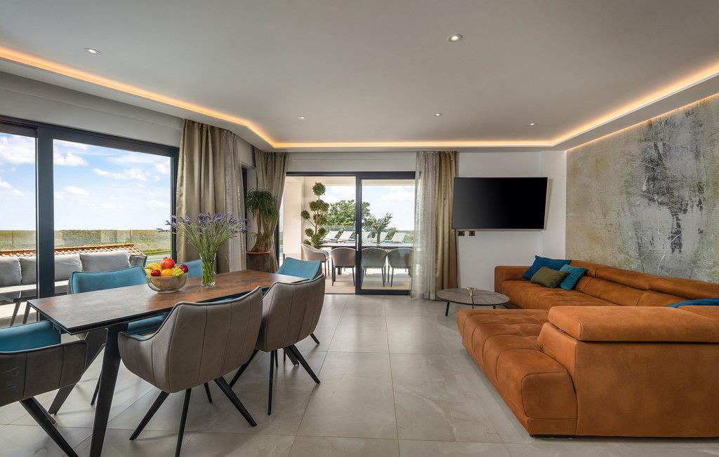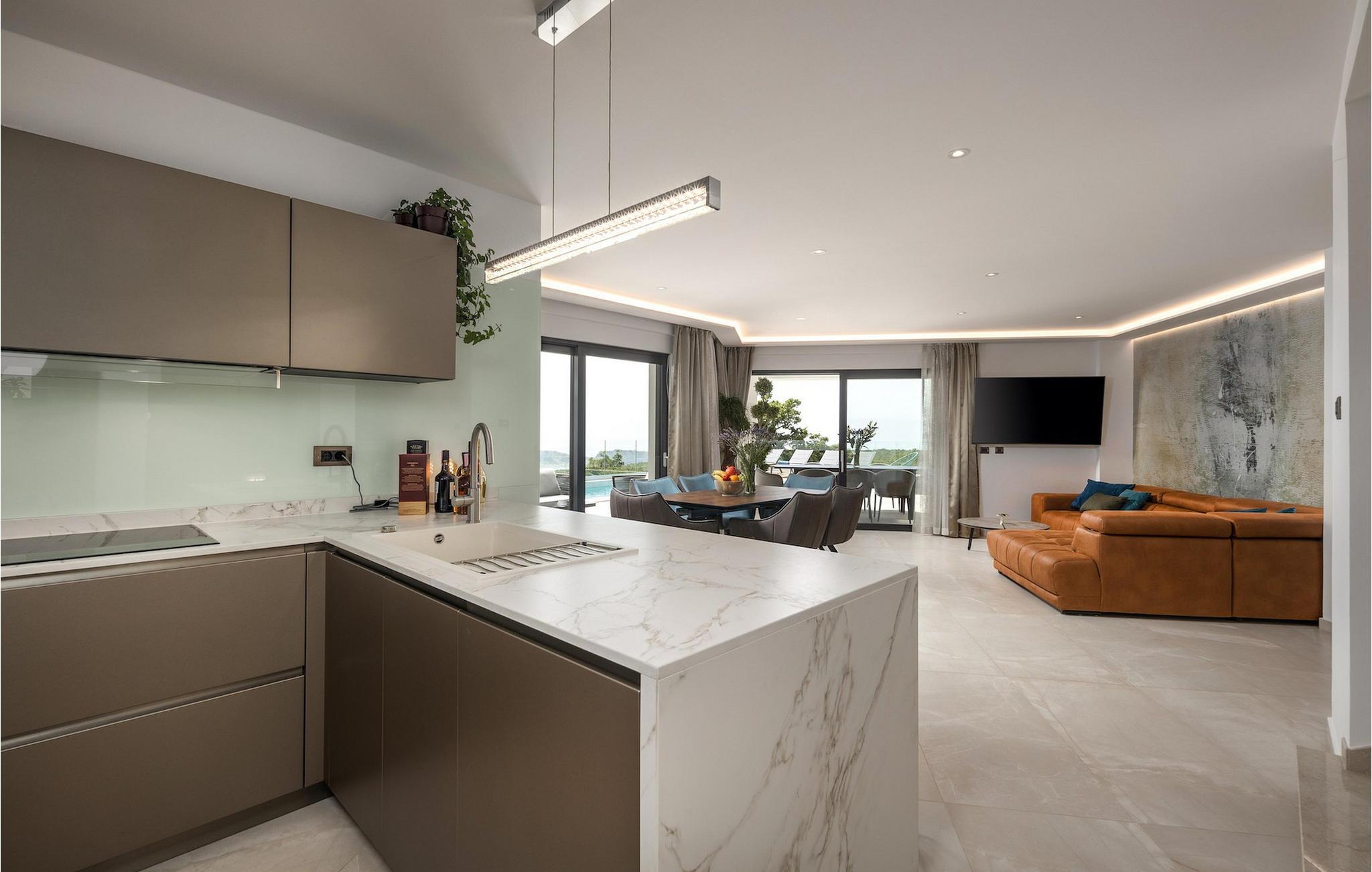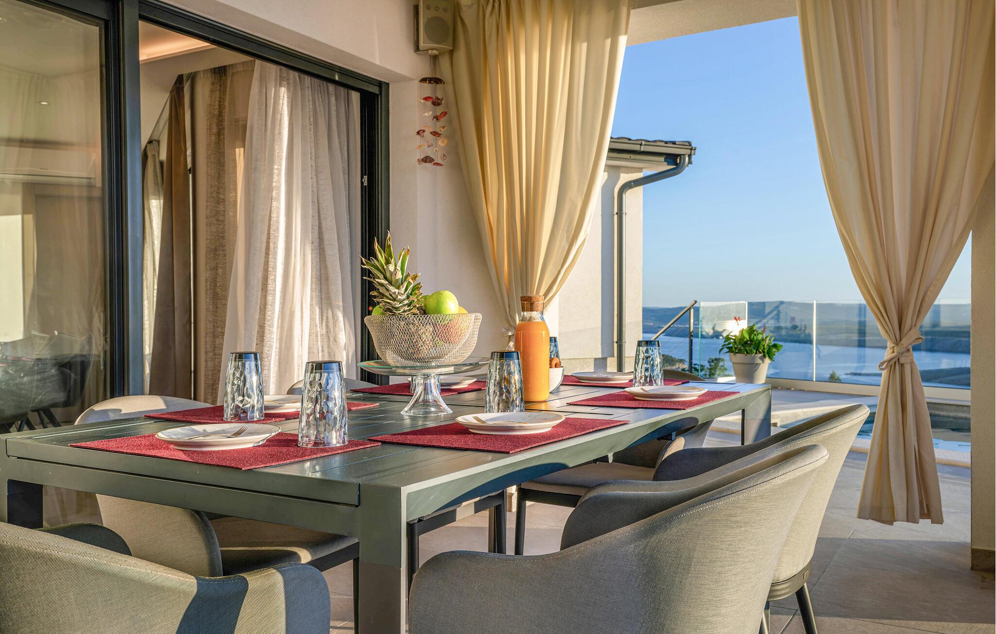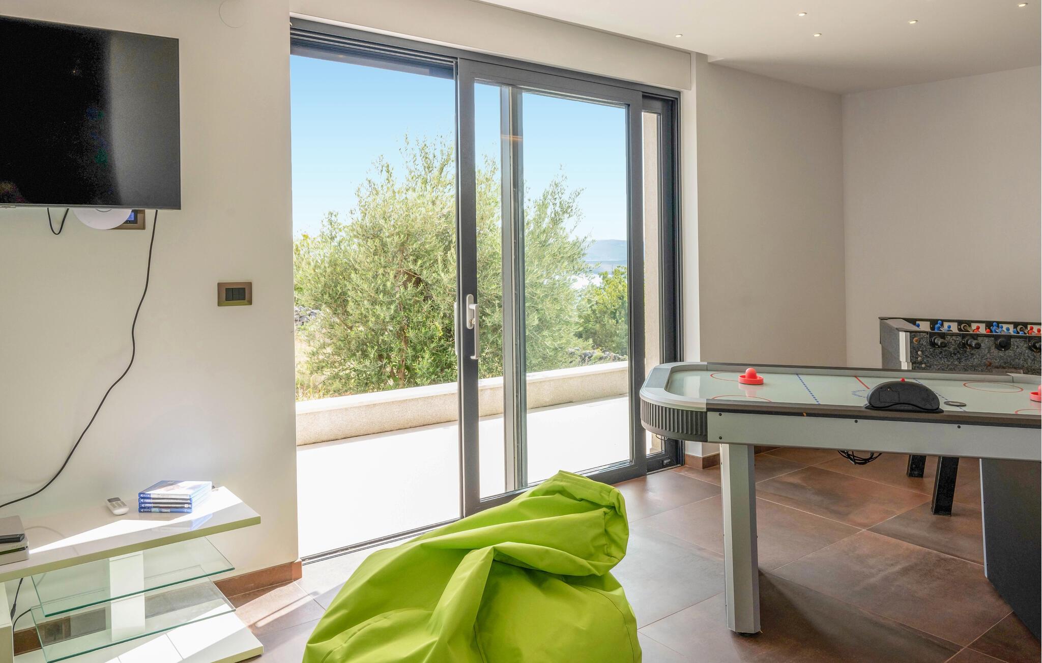 Villa Dumboka ligger i landsbyen Smrika, som tilhører Kraljevica, bare 20 km fra byen Rijeka. Kraljevica kan nås på bare noen få timer, enten du kommer fra München (506 km), Wien (511 km) eller Graz (318 km). Hvis du ønsker å tilbringe en rolig ferie i godt selskap med gode venner, er Villa Dumboka definitivt det rette valget for deg! Villa Dumboka ble bygget i 2021 i en moderne arkitektonisk stil og har plass til maksimalt 8 personer. Villaen har aircondition og 4 soverom med dobbeltsenger. Alle disse soverommene har også fire egne bad. Villaen har også vaskemaskin, tørketrommel og strykejern. Villaen har dessuten 2 separate toaletter og et bad med badekar. Hvis du har barn med deg, kan du bruke en mater og en barneseng. I første etasje er det et moderne og fullt utstyrt kjøkken med bar og 4 barstoler, en vakkert innredet stue med hjørnesofa, salongbord og TV og en spisestue med bord til 8 personer. Fra stuen og spisestuen er det utgang til en utendørsterrasse med spisebord for 8 personer, og ved siden av er det en utendørs grill (gass). Det oppvarmede bassenget på 36 m2 og en dybde på 1,35 m er et sted hvor du kan forfriske deg i løpet av dagen eller natten og sole deg på 8 solstoler. Det er også en taverna med toalett og et spillrom. Det er også en utendørs dusj. De yngste vil glede seg over TV, utendørs lekeplass, bordfotball og Playstation, og de som vil ha en aktiv ferie, vil glede seg over treningsrommet, og etter avtale er det mulig å få en avslappende massasje. Villa Dumboka har havutsikt fra de fleste rommene, og ved solnedgang kan du ta bilder eller male malerier av den uberørte naturen som omgir deg under oppholdet! Det er 5 parkeringsplasser på gårdsplassen. Noe av det interessante med Kraljevica er at byen er kjent for et av de eldste skipsverftene i Middelhavet. I tillegg grunnla tyskeren Olschbauer den første stranden og etablerte Liburnija Hotel i 1904, som senere ble omgjort til et sanatorium. Underholdningen og de lokale aktivitetene du kan prøve, inkluderer vinturer, bading på stranden, fiske, dykking, seiling, olivenoljeturer og vannsport. Dette er helt sikkert et sted der alle kan finne noe for seg selv og avrunde ferien på sin egen måte! Kom og se skjønnheten i dette området med egne øyne, og ta med deg gode minner fra den perfekte årstiden! Velkommen til Villa Dumboka! Kjæledyr er tillatt i dette overnattingsstedet etter eierens skjønn eller mot et gebyr. Vær oppmerksom på at dette overnattingsstedet ikke tar imot ungdomsgrupper eller utdrikningslag. Hvis du er en ungdomsgruppe eller et utdrikningslag, må du ikke booke dette overnattingsstedet, da bestillingen din vil bli avvist etter bestilling, noe som også kan være tilfelle ved ankomst til overnattingsstedet eller under oppholdet, og du vil ikke få refusjon. I villaen har vi en jolle for maksimalt 12 personer. Vi tilbyr den med eller uten skipper (forutsatt at gjestene har den nødvendige tillatelsen). Vi tilbyr også transport med varebilen vår. Det er en tilleggsavgift for tilbudene, som gir rabatt for villaens gjester.