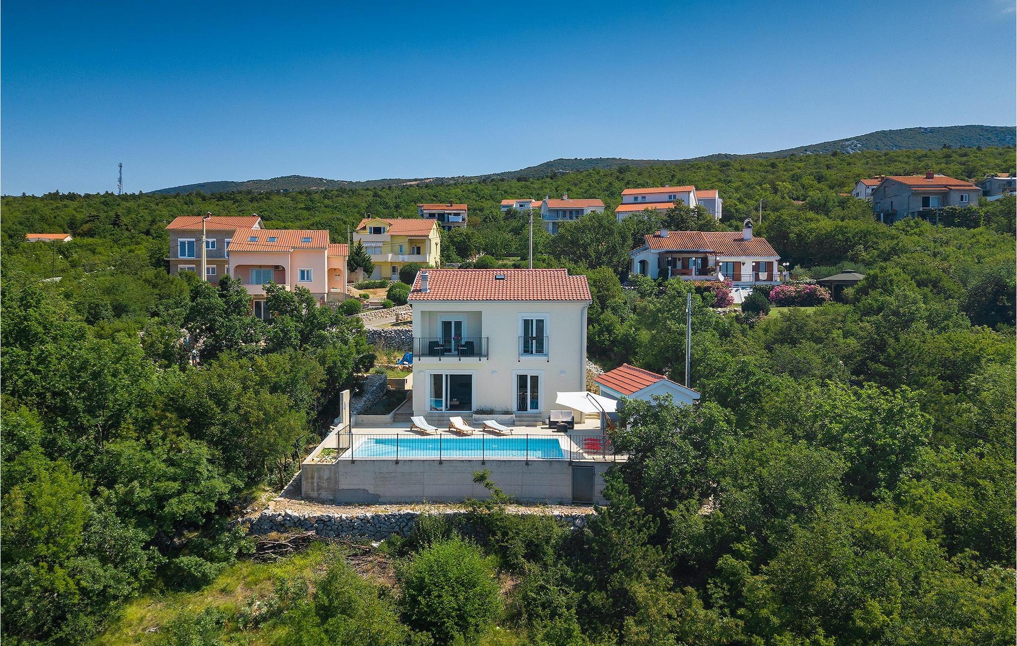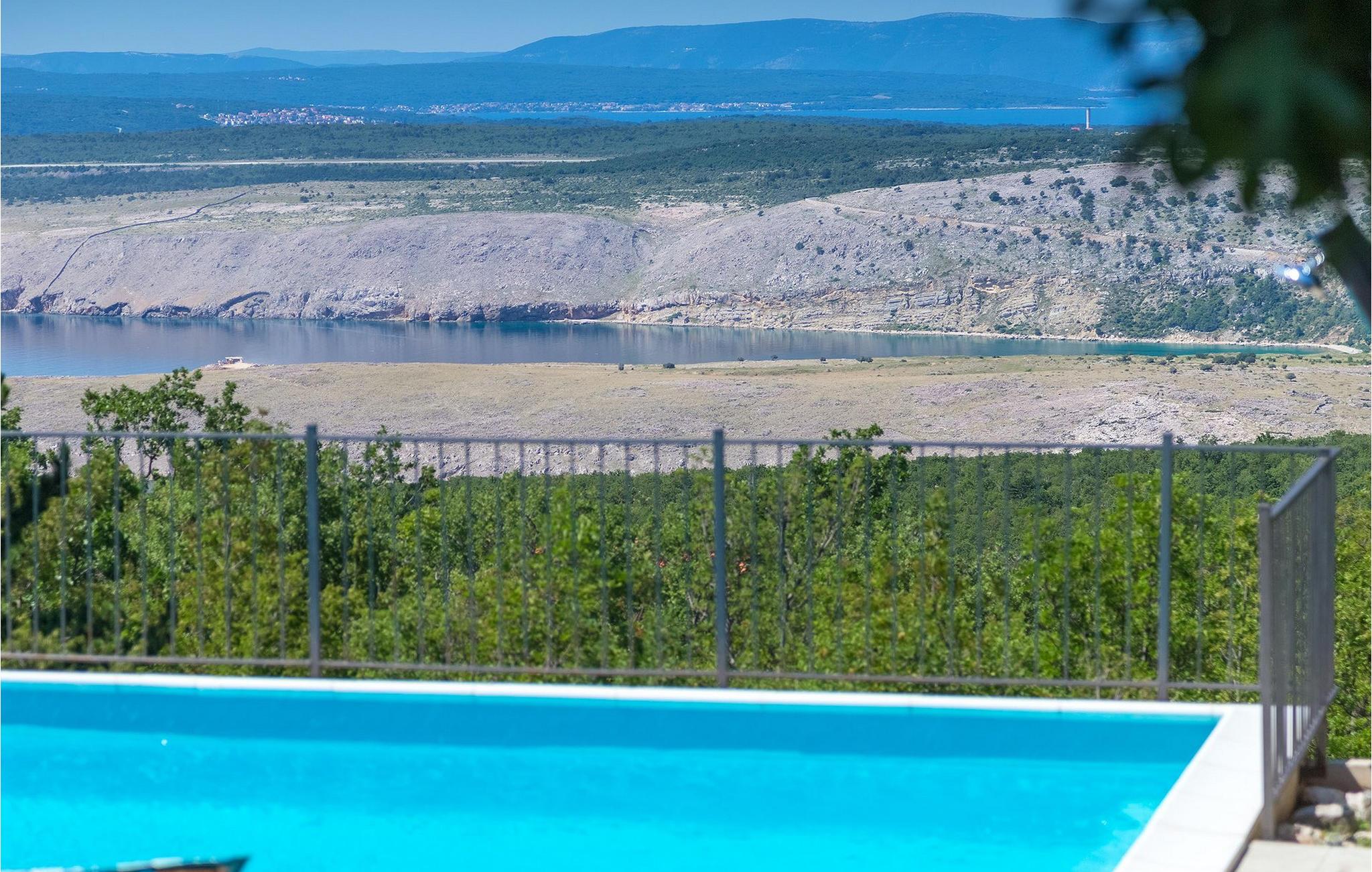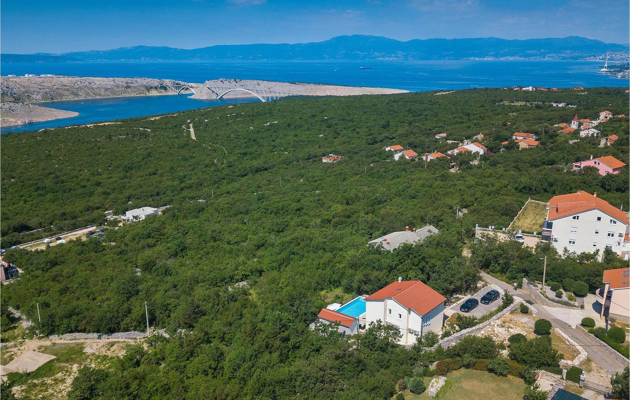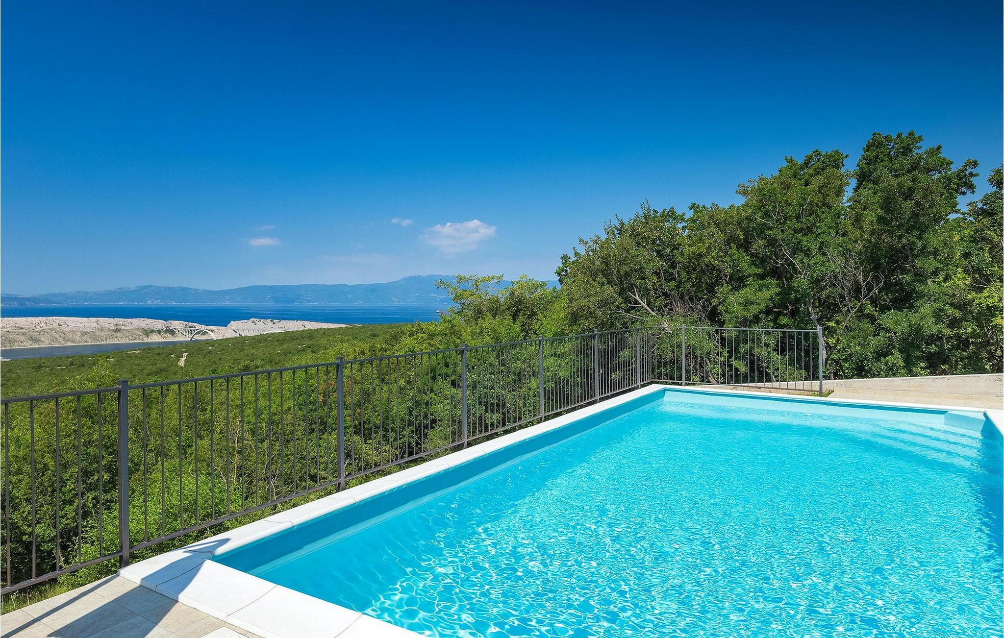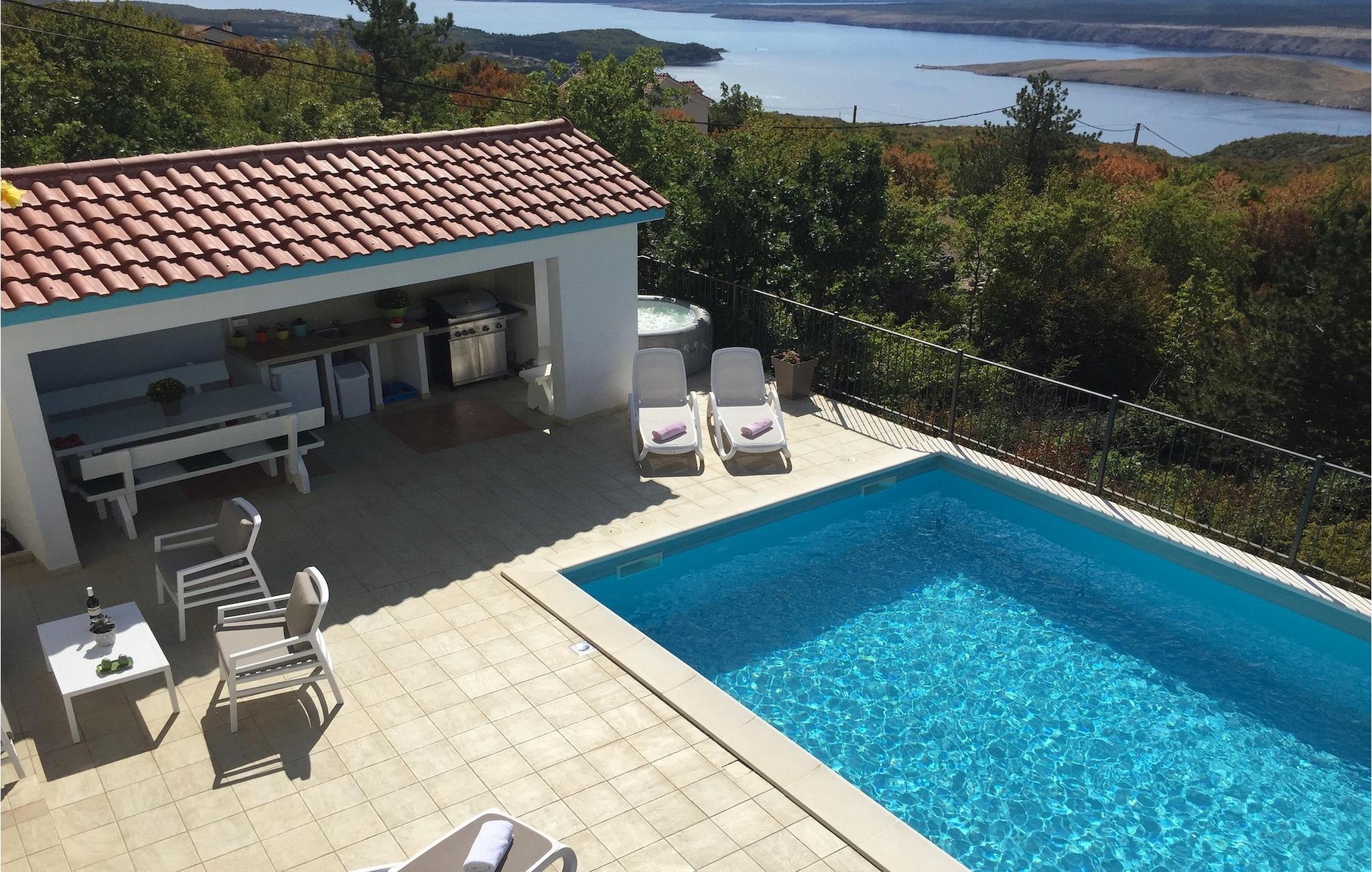 Villa Aqua ligger i den lille landsbyen Smrika nær øya Krk. Villaen har plass til opptil 8 personer og tilbyr nok plass til familier eller vennegrupper. Eiendommen har en fantastisk utsikt over havet og øyene. Det private bassenget inviterer deg til å kjøle deg ned på varme sommerdager. Rundt bassenget er det solsenger hvor du kan slappe av. Villaen har et sjarmerende interiør. I første etasje har villaen et åpent rom med et fullt utstyrt kjøkken og spiseplass, en koselig stue og et bad. I 1. etasje er det 3 komfortable soverom og 2 bad. 2 soverom har hver en dobbeltseng og tilgang til den felles balkongen, som er perfekt for å nyte morgenkaffen. Villaens beliggenhet gir fullstendig privatliv - en fantastisk ferie er garantert. Bestill nå og nyt Villa Aqua, som ligger i den lille landsbyen mrika nær øya Krk. Kraljevica, den nærmeste stranden, ligger bare 1,2 kilometer fra villaen. Villa Aqua overrasker sine besøkende med sin beliggenhet. Den magiske utsikten strekker seg helt til øya Krk. Du finner restauranter og kafeer i landsbyen Mrika. Supermarkeder finner du i Crikvenica, som ligger omtrent 9 kilometer fra villaen. Sørg for å utforske naturen som omgir Villa Aqua og nyt skjønnheten den byr på.