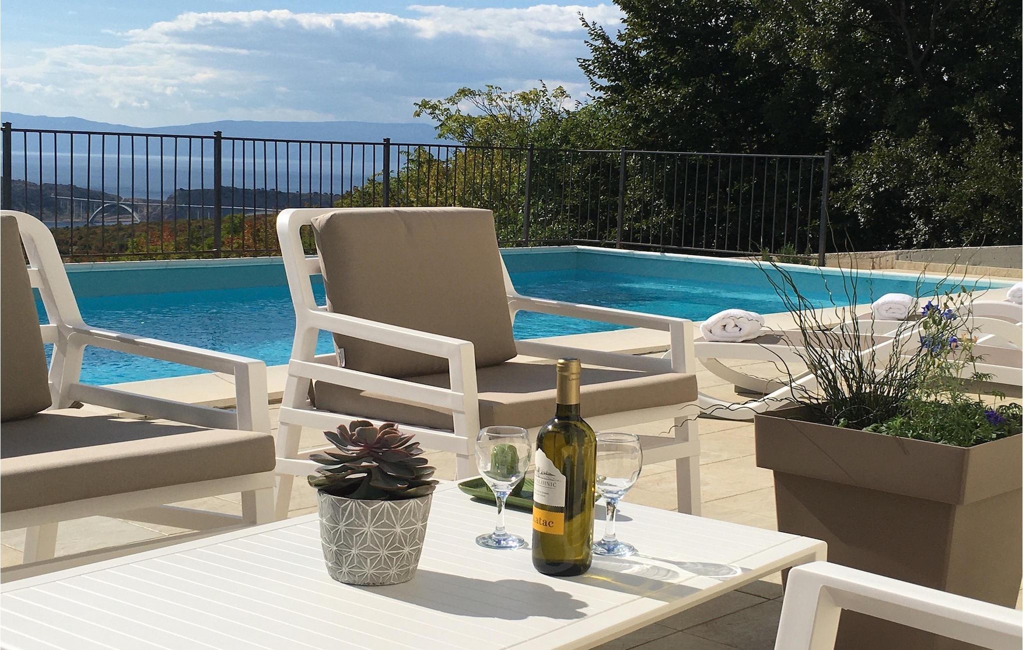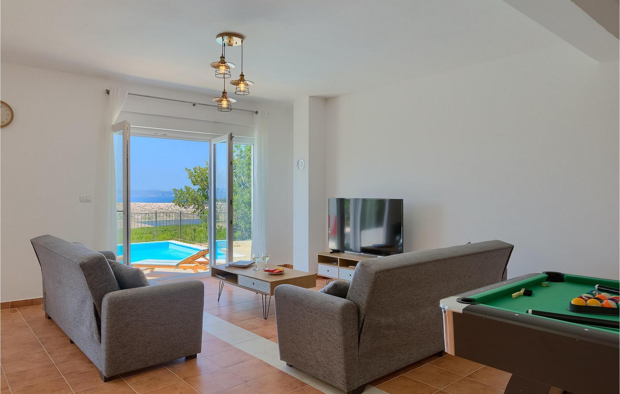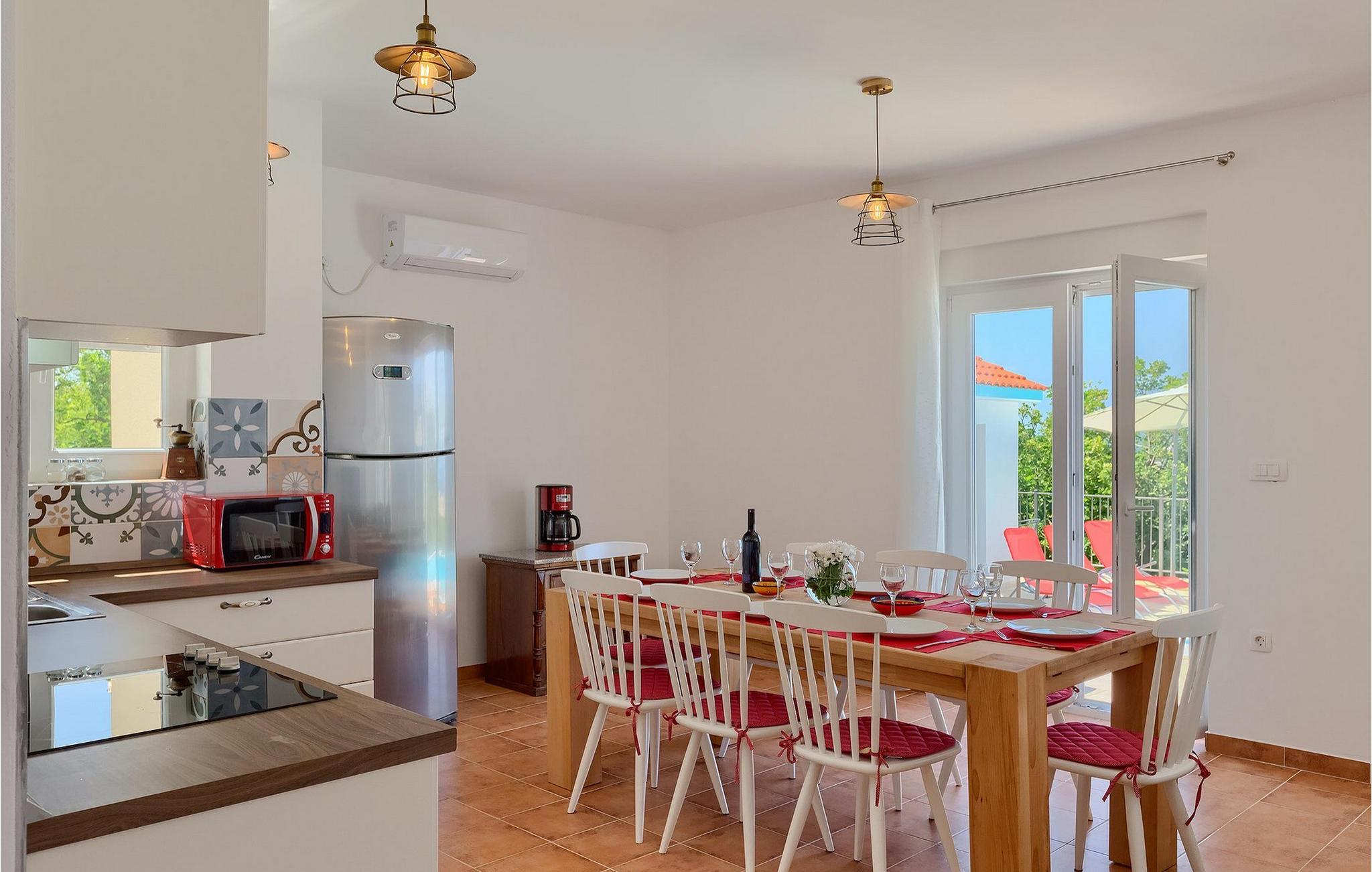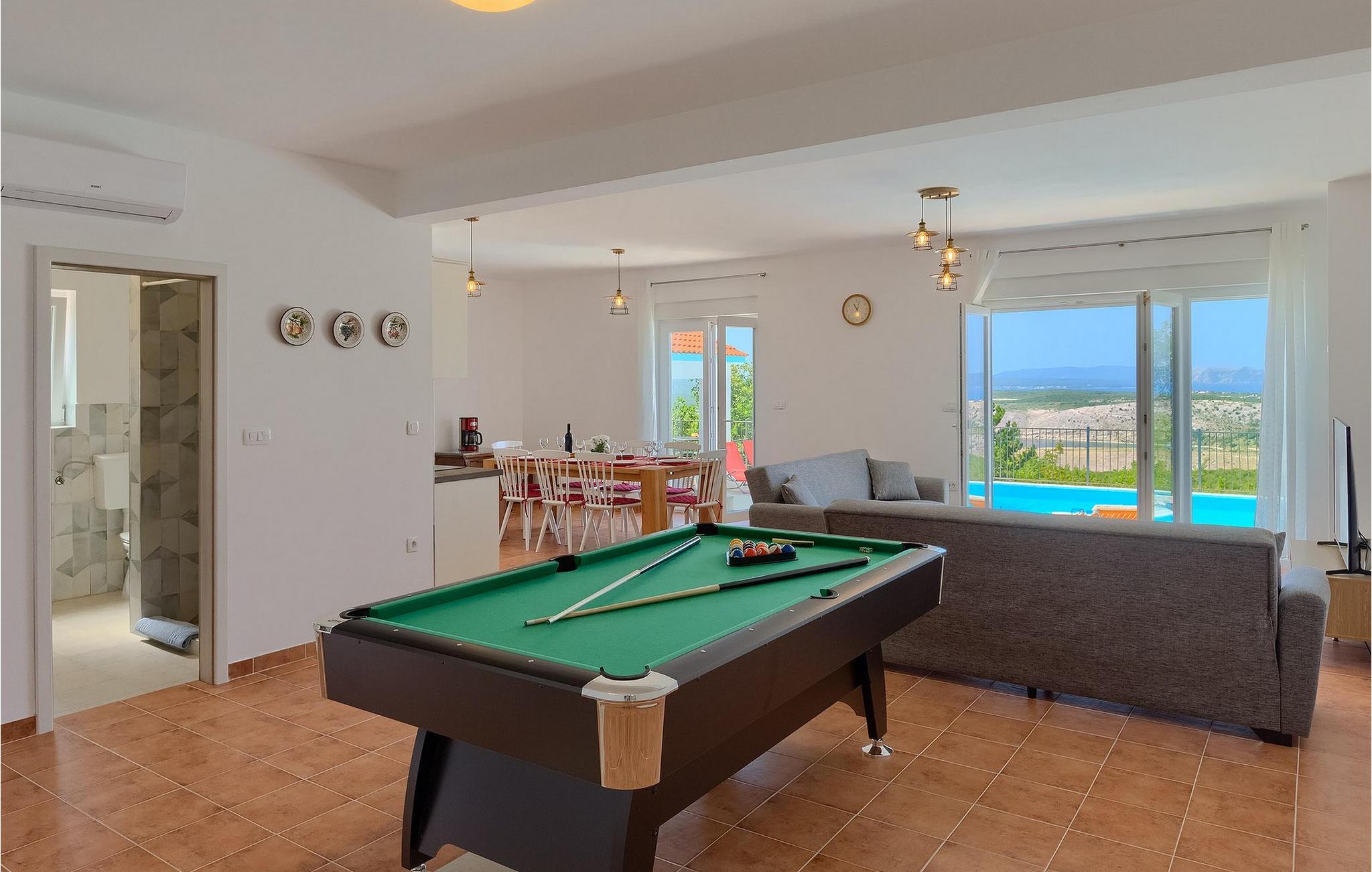 Villa Aqua ligger i den lille landsbyen Smrika nær øya Krk. Villaen har plass til opptil 8 personer og tilbyr nok plass til familier eller vennegrupper. Eiendommen har en fantastisk utsikt over havet og øyene. Det private bassenget inviterer deg til å kjøle deg ned på varme sommerdager. Rundt bassenget er det solsenger hvor du kan slappe av. Villaen har et sjarmerende interiør. I første etasje har villaen et åpent rom med et fullt utstyrt kjøkken og spiseplass, en koselig stue og et bad. I 1. etasje er det 3 komfortable soverom og 2 bad. 2 soverom har hver en dobbeltseng og tilgang til den felles balkongen, som er perfekt for å nyte morgenkaffen. Villaens beliggenhet gir fullstendig privatliv - en fantastisk ferie er garantert. Bestill nå og nyt Villa Aqua, som ligger i den lille landsbyen mrika nær øya Krk. Kraljevica, den nærmeste stranden, ligger bare 1,2 kilometer fra villaen. Villa Aqua overrasker sine besøkende med sin beliggenhet. Den magiske utsikten strekker seg helt til øya Krk. Du finner restauranter og kafeer i landsbyen Mrika. Supermarkeder finner du i Crikvenica, som ligger omtrent 9 kilometer fra villaen. Sørg for å utforske naturen som omgir Villa Aqua og nyt skjønnheten den byr på.