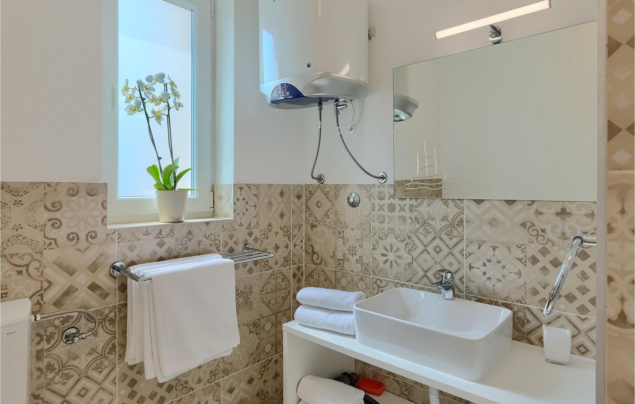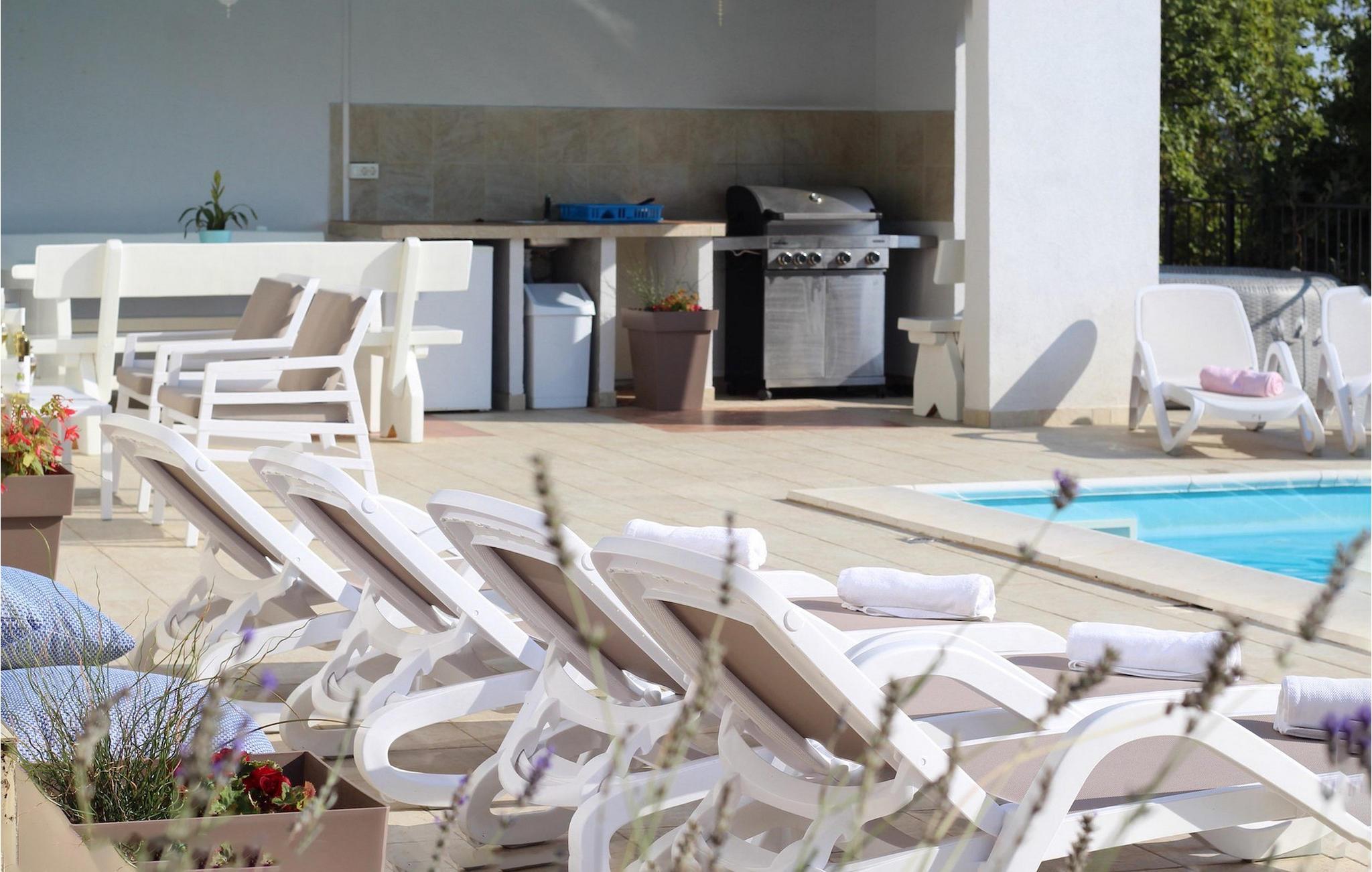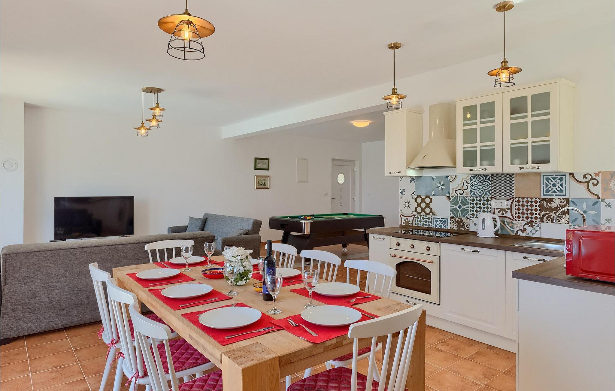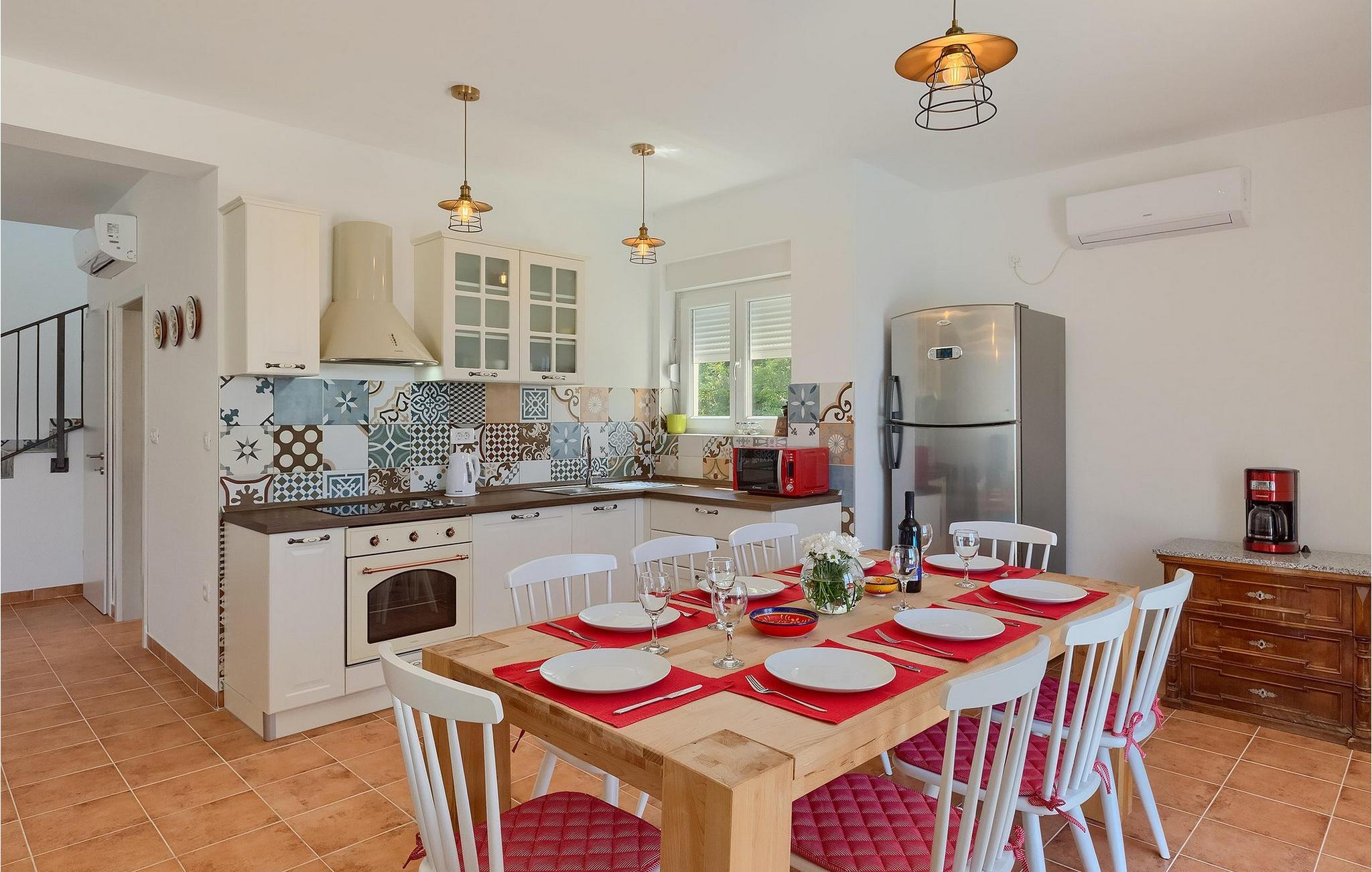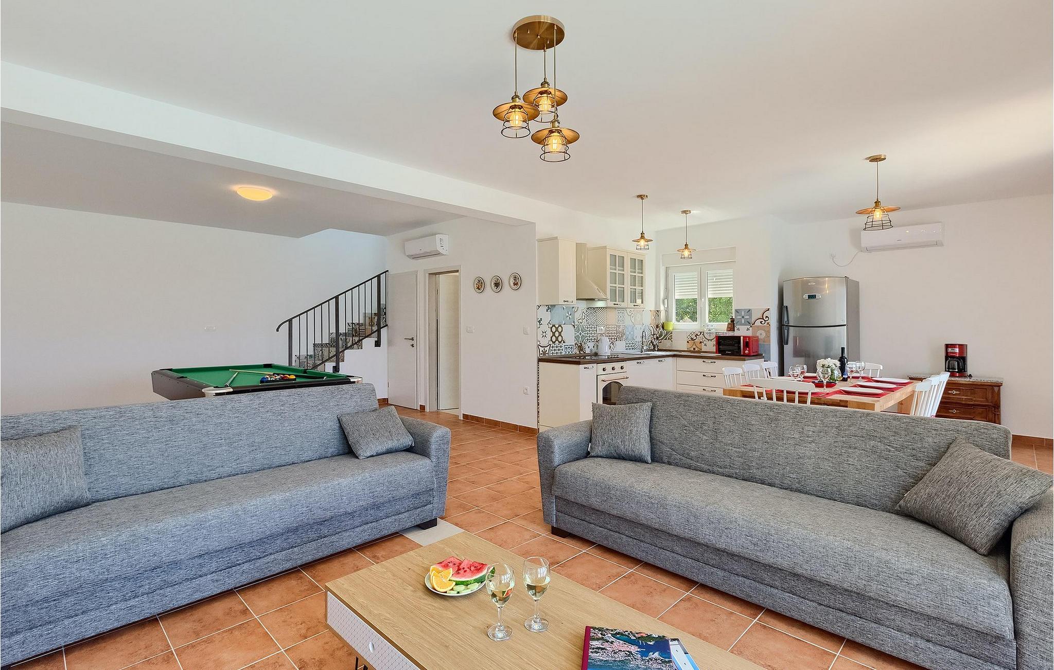 Villa Aqua ligger i den lille landsbyen Smrika nær øya Krk. Villaen har plass til opptil 8 personer og tilbyr nok plass til familier eller vennegrupper. Eiendommen har en fantastisk utsikt over havet og øyene. Det private bassenget inviterer deg til å kjøle deg ned på varme sommerdager. Rundt bassenget er det solsenger hvor du kan slappe av. Villaen har et sjarmerende interiør. I første etasje har villaen et åpent rom med et fullt utstyrt kjøkken og spiseplass, en koselig stue og et bad. I 1. etasje er det 3 komfortable soverom og 2 bad. 2 soverom har hver en dobbeltseng og tilgang til den felles balkongen, som er perfekt for å nyte morgenkaffen. Villaens beliggenhet gir fullstendig privatliv - en fantastisk ferie er garantert. Bestill nå og nyt Villa Aqua, som ligger i den lille landsbyen mrika nær øya Krk. Kraljevica, den nærmeste stranden, ligger bare 1,2 kilometer fra villaen. Villa Aqua overrasker sine besøkende med sin beliggenhet. Den magiske utsikten strekker seg helt til øya Krk. Du finner restauranter og kafeer i landsbyen Mrika. Supermarkeder finner du i Crikvenica, som ligger omtrent 9 kilometer fra villaen. Sørg for å utforske naturen som omgir Villa Aqua og nyt skjønnheten den byr på.