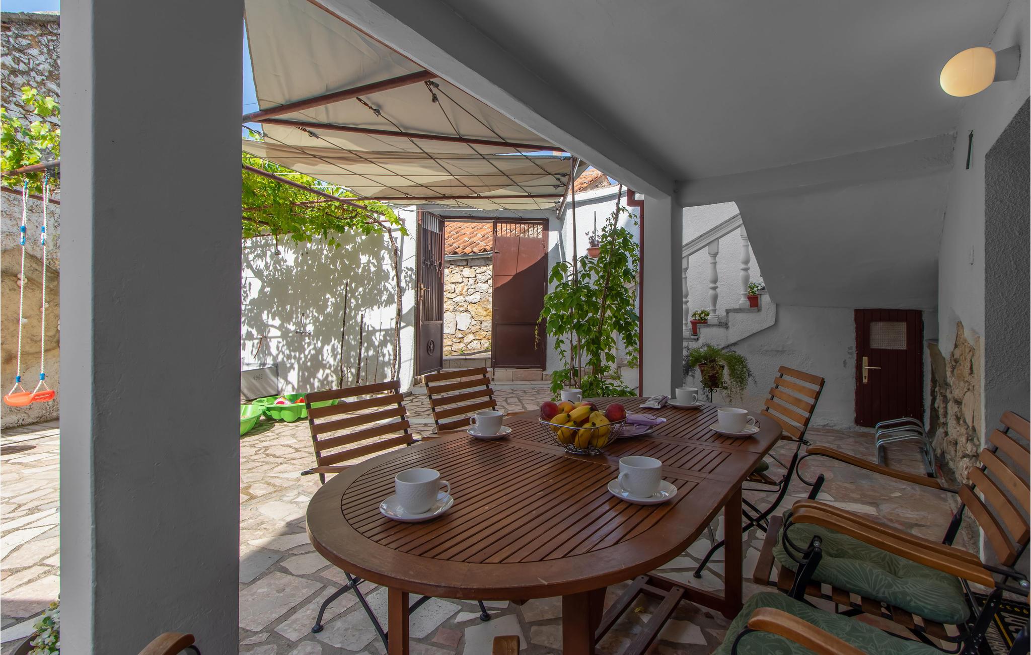 Dette sjarmerende gamle steinhuset inviterer deg til en spesiell type ferie. Rommene, som har en veldig hyggelig atmosfære, gir et godt inntrykk. Dette huset er helt ideelt for familier med barn og kjæledyr. Den separate inngangen i første etasje er praktisk hvis dere er to familier. I huset har du en badstue, og for moro skyld har du bordfotball, slik at du ikke kjeder deg. På terrassen i første etasje kan du nyte et glass vin og havutsikten om kvelden.