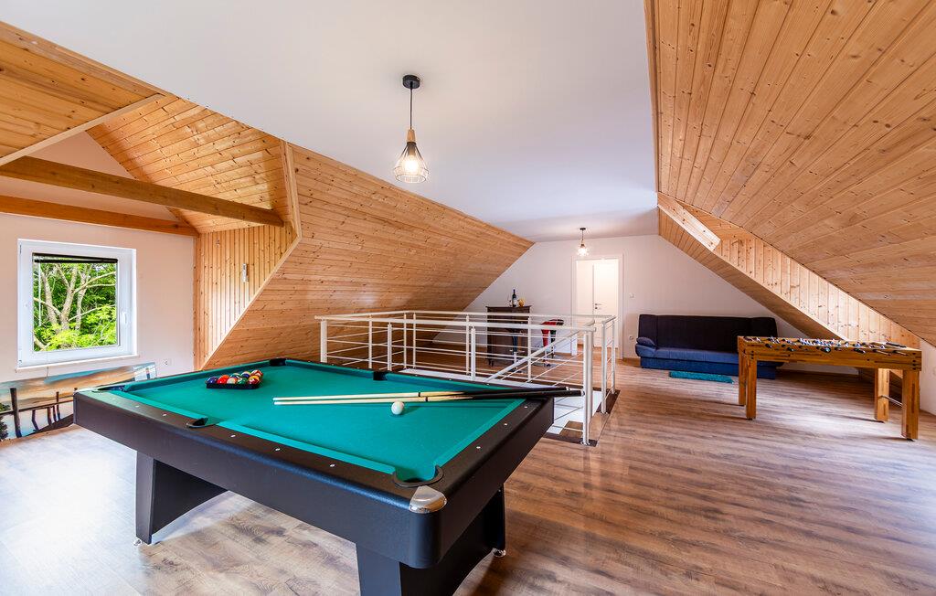 Se frem til dette moderne og store feriehuset, som er fordelt over tre etasjer i fredelige omgivelser og natur med utsikt over skog og grøntområder. Det vakre huset er ideelt for en familieferie med barn. På grunn av husets beliggenhet og fasilitetene som er tilgjengelige for gjestene, kan du få mest mulig ut av ferien. Tilbring mange timer i aktivitetsrommet med biljard eller slapp av i badstuen i første etasje.