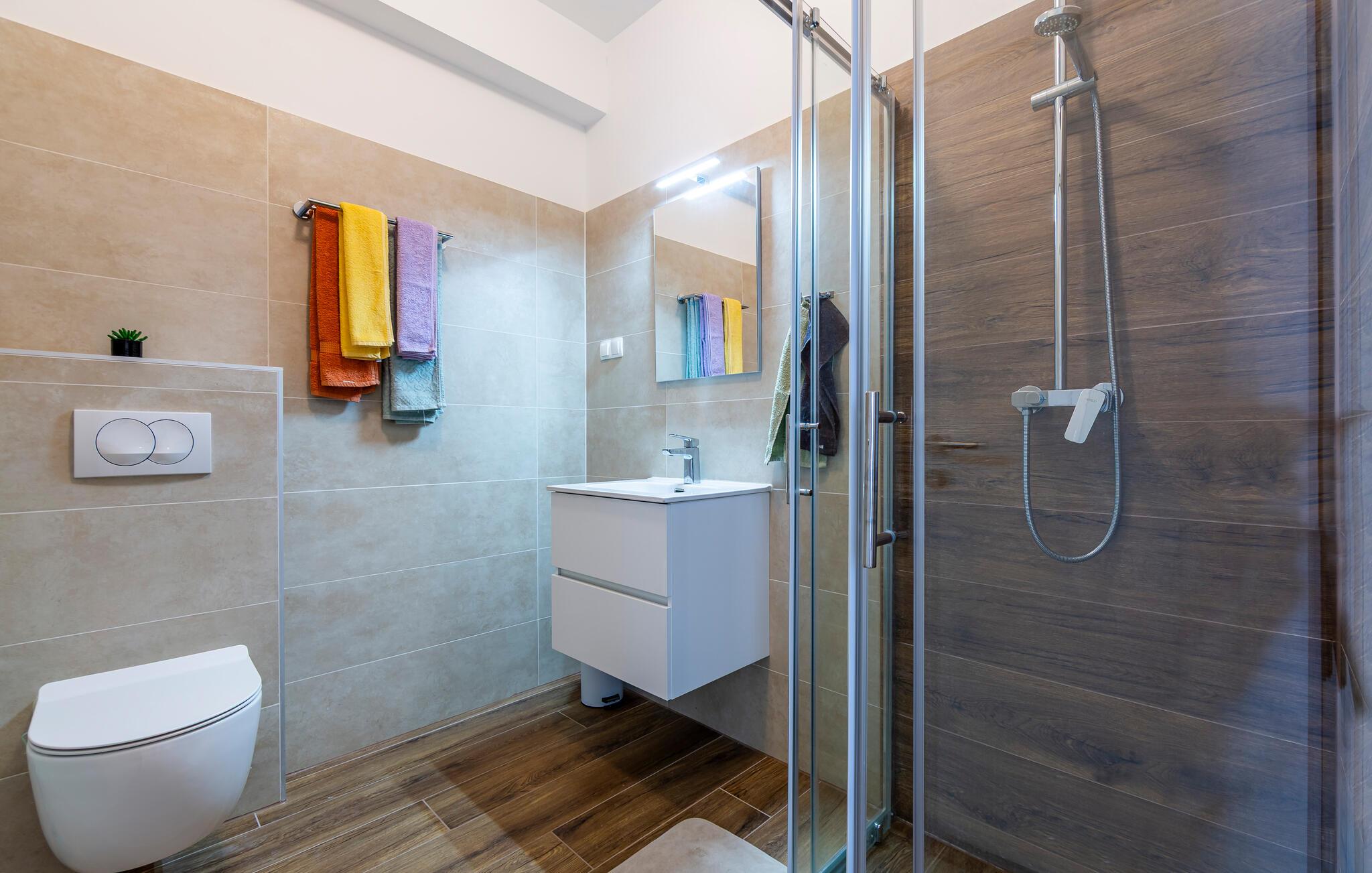 - WC med varmt og kaldt vann, Dusj