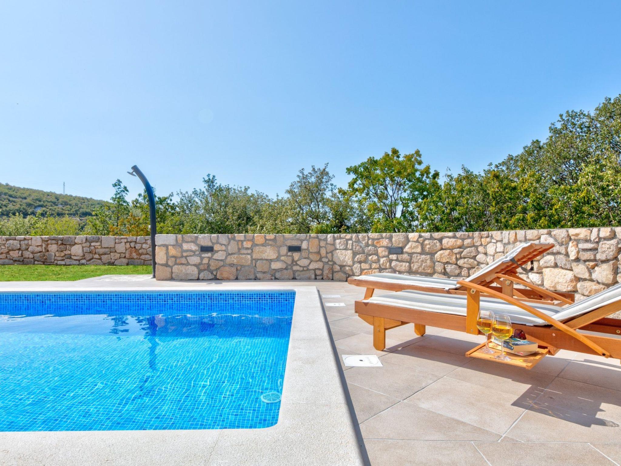 This very tastefully furnished villa is only 6 km from the town of Crikvenica. It is newly renovated in an ancient style.The 100 m² extend over 2 floors, 2 bedrooms, 1 bathroom, kitchen, dining and living room. Offers satellite / TV, air conditioning, internet, washing machine, parking, grill and privacy in the garden.The interior is elegantly furnished with great attention to detail. This villa offers you luxurious accommodation, a high level of privacy, ideal for families and couples.This very tastefully furnished villa is only 6 km from the town of Crikvenica. It is newly renovated in an ancient style.The dining area and the kitchen are on the ground floor with a beautiful view of nature. The bathroom is also on the ground floor. Two spacious bedrooms are on the first floor, one of them with a private balcony. The first floor is air-conditioned.Living area:separate living room, dining room and kitchen are in one room, sofa bed for one person, terrace, tiles, satellite TVKitchen description:Kitchen, dishes, kitchen towels, electric / gas cooker combined, hot plates: 4, oven, refrigerator with freezer, filter coffee machine, microwave, dishwasherBedroom:Double room with separate beds, balcony, laminateDouble room with double bed, laminateBathroom:Bathroom with toilet, bath tubseparate toiletBalcony / terrace:private balcony, seating, balcony size: 7 m², private terrace, covered, sea view, seating, terrace size: 28 m²For privacy, the garden with hedge and bridle is available.The private parking lot for 2 cars is locked in front of the house.Up to 2 pets are allowed in this house. The first animal is free and the second pet is for a fee.Garden for use, barbecue, you can bring barbecue, parking on the property, parking by the house, outdoor shower, pets allowed,, air conditioning included in the price, suitable for allergy sufferers, bed linen available, towels available, washing machine in apartment, internet via W- LANSandy beach 6700 m, fine pebble beach 6000 m, pebble beach 6000 m, rocky beach 6000 m, bet. Lying areas 6000 m, center 5600 m, restaurant 5900 m, supermarket 5800 m, diving center 6300 m, discotheque 6000 m, busy street 7000 m