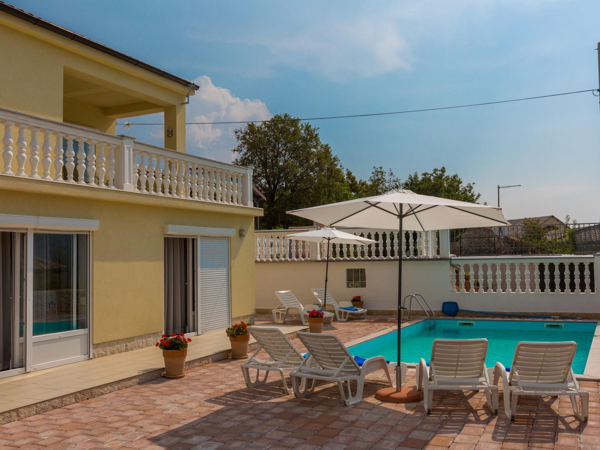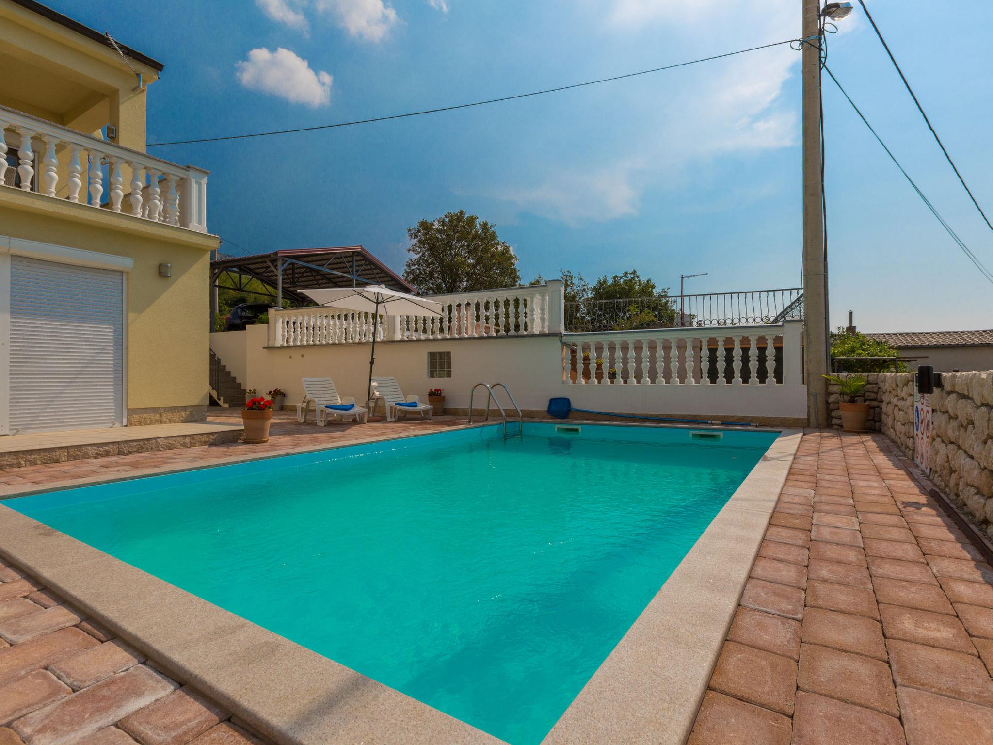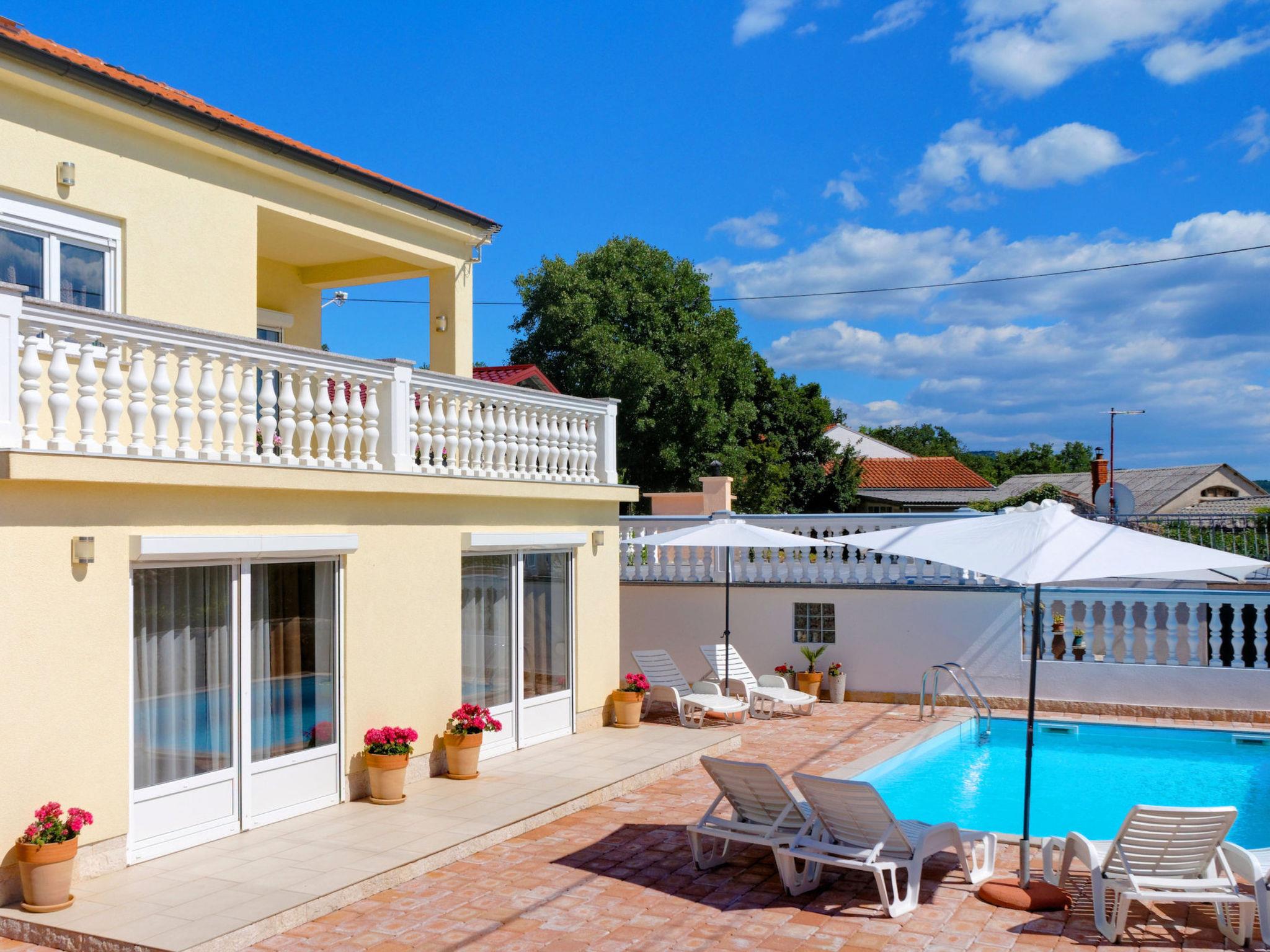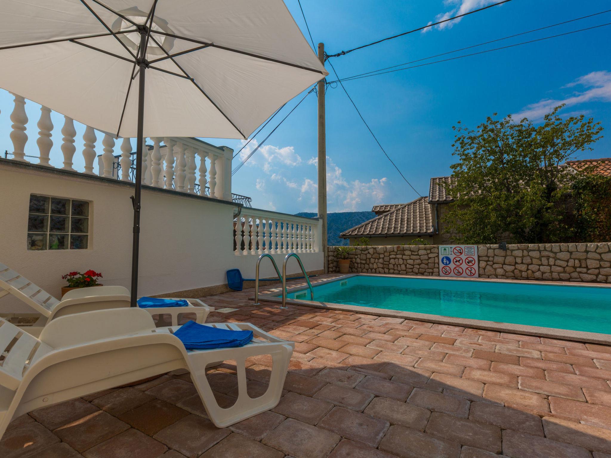 An excellent holiday home located in the picturesque village of Kostelj, near Crikvenica, is the perfect choice for families or groups of friends seeking comfortable and relaxing accommodation for 8 to 10 people. This modern and spacious property spans three floors, with a thoughtfully designed layout that ensures privacy and comfort for all guests. The outdoor area, featuring a beautiful swimming pool and amenities for relaxation and entertainment, further enhances the experience.The ground floor has a separate entrance and offers a spacious living room with a dining area and a fully equipped kitchen, making it perfect for shared meals and gatherings. Additionally, this floor includes one bedroom, a modern bathroom, and a large terrace ideal for relaxing in the fresh air or enjoying your morning coffee.The first floor, accessed via an external staircase, includes a large living room with a dining area and kitchen. From the living room, guests can step onto a covered balcony that offers stunning views of the surrounding landscape. This floor also features one comfortable bedroom and a modern bathroom, making it ideal for those seeking a separate space.The attic of the house is designed to accommodate larger families or children. It includes a master bedroom, two children’s rooms with comfortable beds (120 x 200 cm), and a smaller bathroom.The outdoor area is a true oasis of relaxation. In addition to the beautiful pool surrounded by sun loungers and a sunbathing terrace, guests can enjoy a large barbecue, perfect for preparing delicious meals outdoors. Additional amenities include games for children and fitness equipment for those who wish to stay active during their holiday.Living area:Living / dining room and kitchen are in one room, sofa bed for two people, terrace, tiles, satellite TVKitchen description:Kitchen, dishes, kitchen towels, electric / gas stove combined, hot plates: 4, oven, fridge with freezer, filter coffee machine, kettle, microwave, dishwasherBedroom:Double room with double bed, terrace, tilesDouble room with double bed, tilesDouble room with double bed, tilesSingle room, tilesSingle room, tilesBathroom:Bathroom with toilet, showerBathroom with toilet, bath tubBathroom with toilet, showerBalcony / terrace:private balcony, covered, sea view, seating, balcony size: 28 m², private terrace, seating, loungers, parasol, terrace size: 100 m²Other:Barbecue, you can bring your own barbecue, parking on the property, swimming pool, swimming pool size: 28 m², outdoor shower, pets allowed for daily fee 15 euro, air conditioning included in the price, bed linen available, towels available, Internet via W-LAN,5 private parking spaces available. Only small pets allowed. Not intended for partys.To the sea 4,8 km, sandy beach 5,3 km, fine pebble beach 4,9 km, pebble beach 5,4 km, rocky beach 5,5 km, concrete beach 5,5 km, center 4,5 km, restaurant 4,5 km, supermarket 4,5 km, diving center 6 km, busy street 2 km