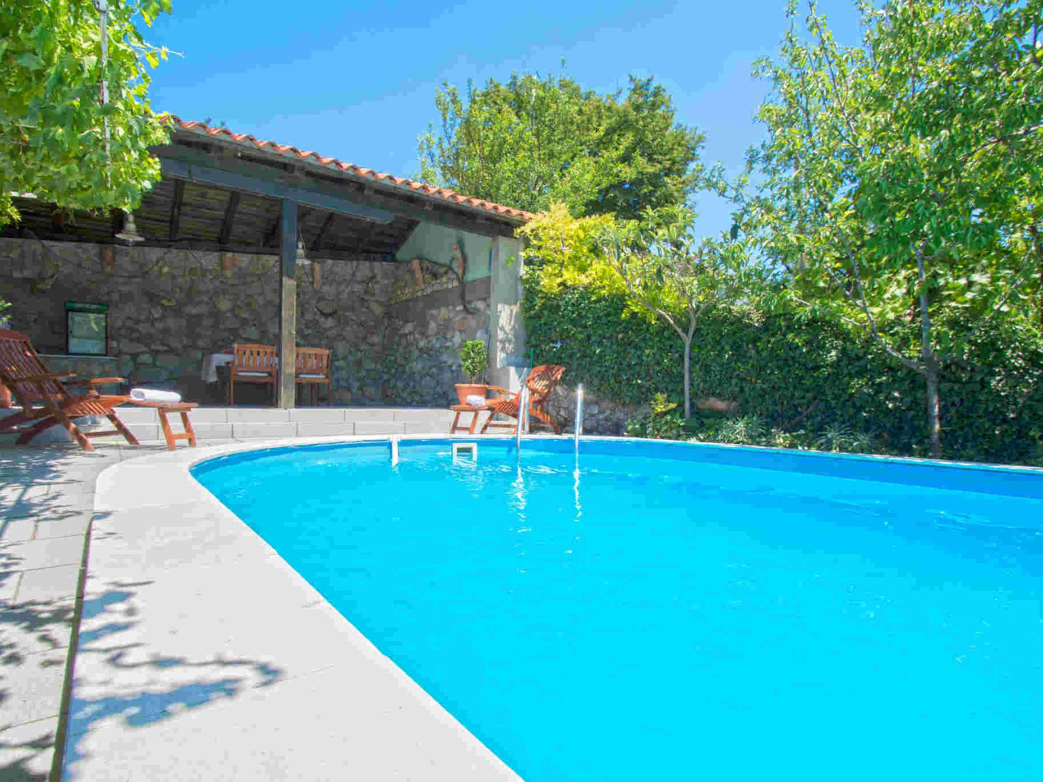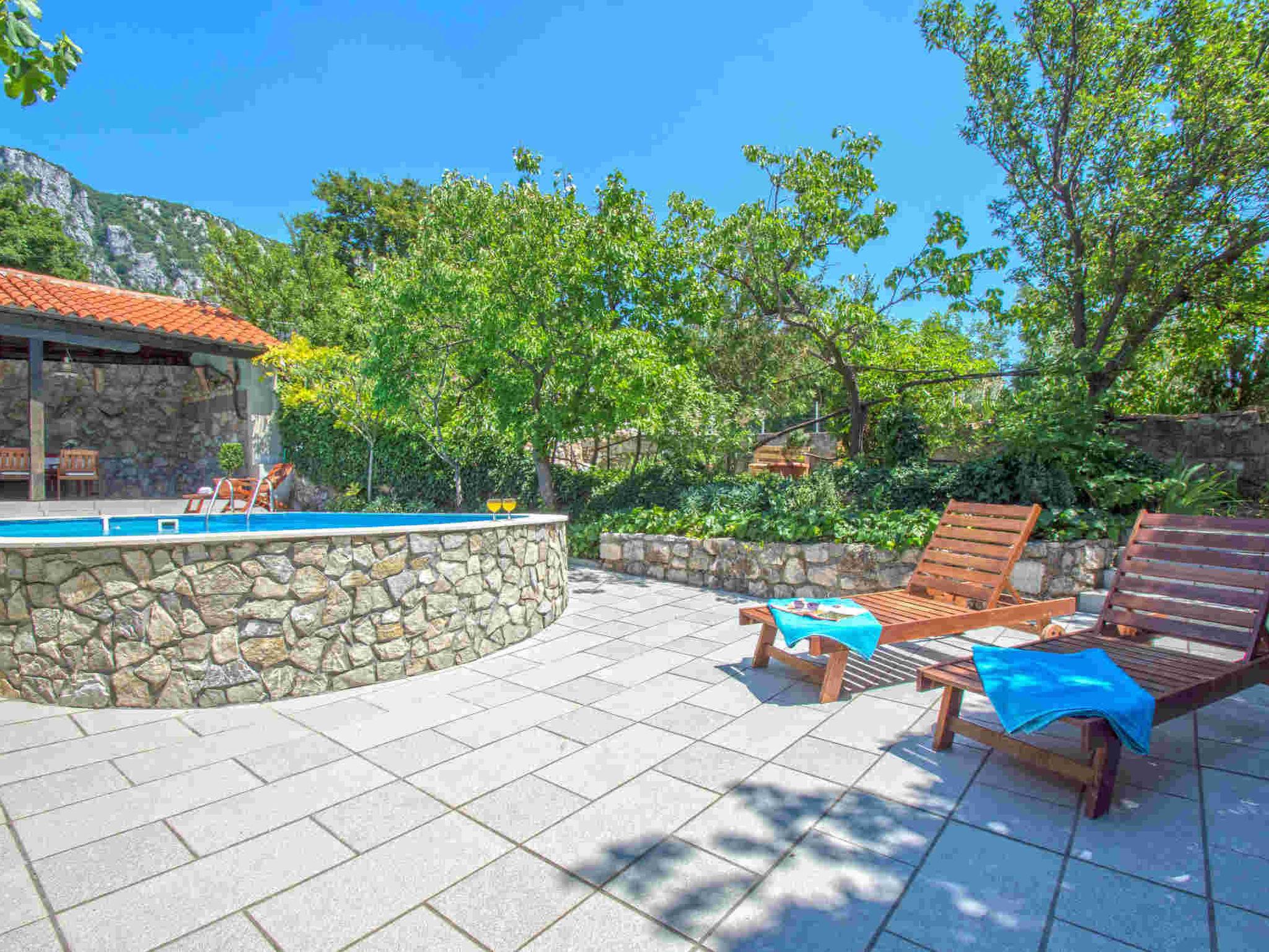 The charming stone house is located in a very quiet area, surrounded by greenery. It is located 5.7 km from Crikvenica.The 120 m² living space of the house spans 2 floors and has 2 bedrooms, 2 bathrooms, living / dining room and kitchen. The accommodation is equipped with satellite TV, wireless internet, radio, DVD player, washing machine, hydromassage bath and dishwasher. In this house there are 2 airconditioners. One aircondition is on the groundfloor and second one is on the 1 st floor.Outside you will find a 24 m² swimming pool, a large terrace, a beautiful garden with barbecue and a private parking space.Living area:Living / dining room and kitchen are in one room, sofa bed for two people, balcony, parquet, radio, DVD player, satellite TVKitchen:Kitchen, dishes, kitchen towels, electric cooker, hot plates: 4, refrigerator with freezer, filter coffee machine, kettle, microwave, toaster, dishwasherBedroom:Double room with double bed, terrace, tilesDouble room with double bed, balcony, parquetBathroom:Bathroom with toilet, showerBathroom with toilet, bath tubBalcony / terrace:Private balcony, covered, seating, balcony size: 20 m², private terrace, seating, loungers, parasol, terrace size: 100 m²Garden for use, barbecue, you can bring your own barbecue, parking by the house, swimming pool, swimming pool size: 24 m², pets allowed for a fee, heating, suitable for allergy sufferers, bed linen available, towels available, washing machine in apartment, Internet via W-LAN, aircondition.To the sea 5700 m, sandy beach 6400 m, fine pebble beach 5800 m, pebble beach 5800 m, rocky beach 5900 m concrete beach 5900 m, center 5500 m, restaurant 5400 m, supermarket 2000 m, diving center 6900 m