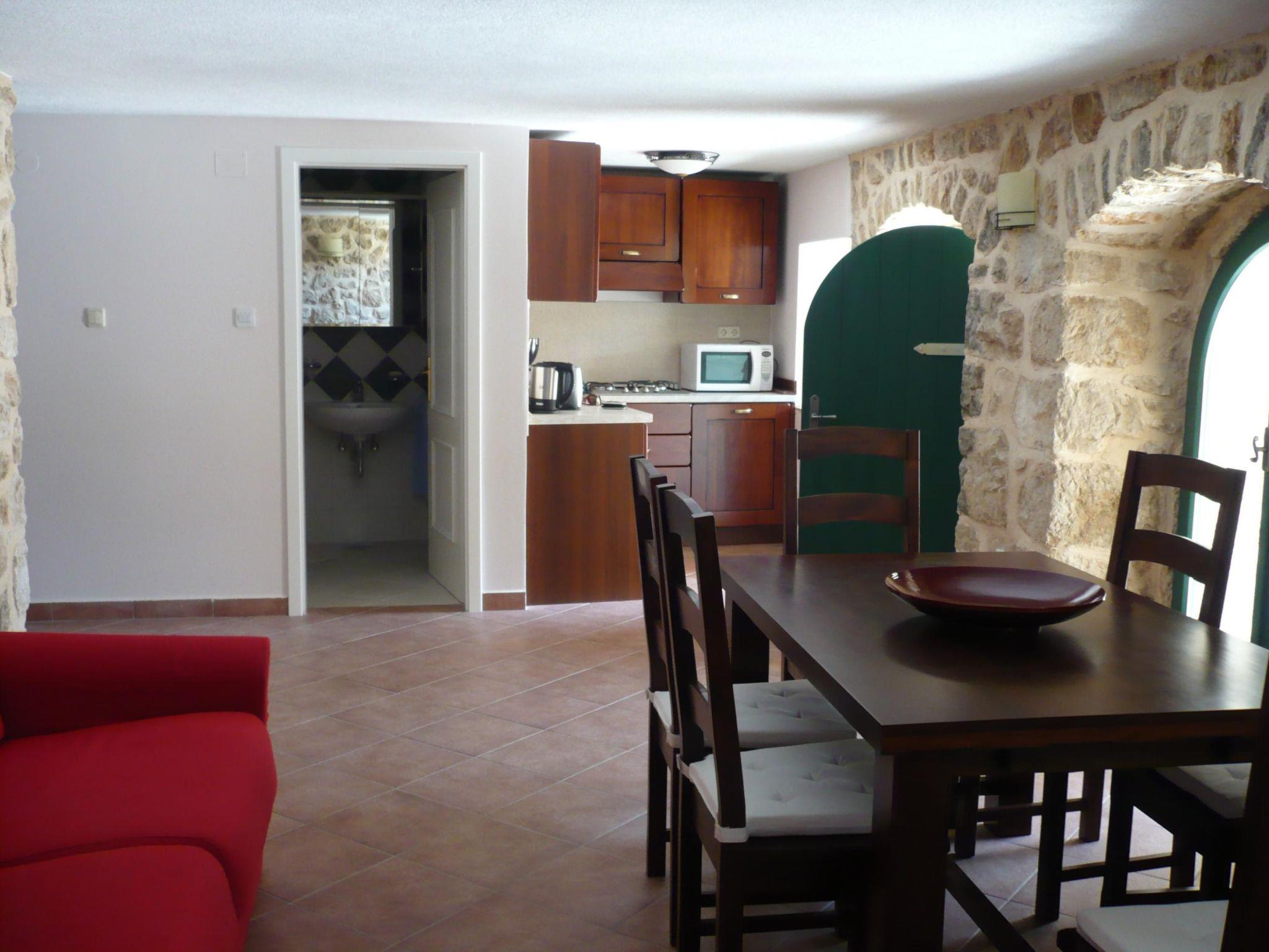 Holiday home in a quiet location, surrounded by nature, with garden and large pool. The house is located in the middle of the idyllic Vinodol mountains, in the village of Barci. It is surrounded by unspoilt nature and offers you peace, privacy and relaxation at any time of the year. You will feel at home in this house dating from 1895, which was built in the original local coastal style and at the same time is equipped with modern comforts. On the upper floor (85 square metres) there are two double rooms, a living room (satellite TV) with couch and kitchen, as well as a shower room with WC. The ground floor (60 square metres) has a living room with couch, double bed and fireplace, a separate kitchen, a shower room with WC and a storage room with washing machine. Both kitchens with gas cooker/oven, oven, fridge with freezer compartment, dishwasher, microwave, toaster, coffee machine and kettle. Air conditioning in the upper living area. An external staircase leads to the upper floorIn the fenced garden (300 sqm) is the swimming pool (32 sqm), with sun loungers, parasols, garden furniture, and a barbecue area.parking is included at the property. Pets are not allowed. This holiday home is particularly suitable for families and couples. Groups of young adults are not welcome. Here you are surrounded by unspoilt nature, nestled in the extensive forest area of the hinterland of the village of Grizane in Vinodol in a very quiet location. Grizane, approx. 5 km east of the town of Crikvenica, is a stop on the Crikvenica-Grizane and Kobiljak hiking trail (approx. 3 hours). Relaxed, individual holidays with privacy in Mediterranean surroundings amidst fresh mountain and sea air. In addition to hiking opportunities through picturesque landscapes and original villages, you also have the opportunity to enjoy a beach holiday in secluded bays and savour the delicacies of Croatian cuisine in nearby small family restaurants. If you fancy a change, you can sample the tourist flair in the town of Crikvenica, 5 km away, or take advantage of the diverse cultural offerings in the harbour town of Rijeka, just half an hour away. Why not visit a place that gives you moments of relaxation after a turbulent everyday life, that lets you regain strength and energy? The longing for the south, for a Mediterranean lifestyle, seems to be innate and brings a smile to our faces. All you have to do is enjoy the atmosphere of mountain and sea air, sun and waves, and you will be rewarded with joy and serenity.