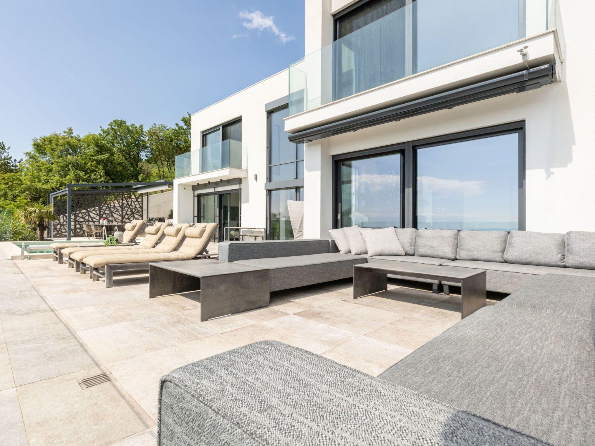 Where the blue of the sea meets the green of the hinterland, the Crikvenica Riviera invites you to enjoy a relaxing holiday. But it's not just the landscape that is worth a visit, the region is also known for its excellent cuisine, fishing and regional wines. A colourful range of leisure activities promises sport, fun and relaxation: beautiful beaches with sand, pebbles and rocks, water sports activities, cycle paths, hiking trails and much more. The design holiday home is situated in a quiet location and offers a wonderful panoramic view of the sea and the island of Krk. The beach is only 6 km away, and the towns of Crikvenica, Novi Vinodolski, Rijeka and Opatija are nearby.