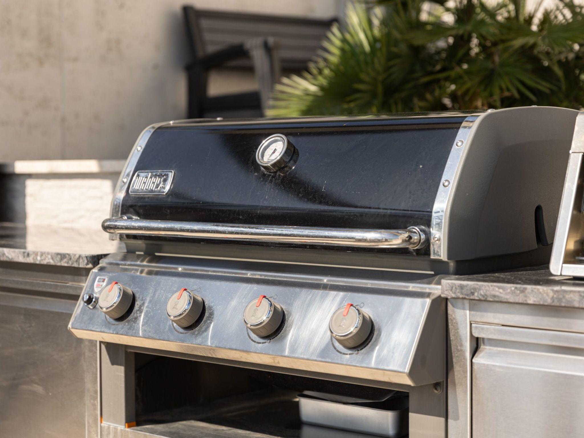 Garden equipment : Garden furniture available, outdoor kitchen with large stainless steel gas barbecue