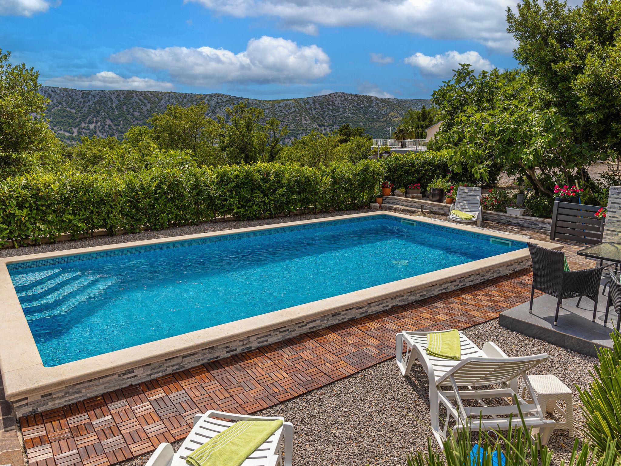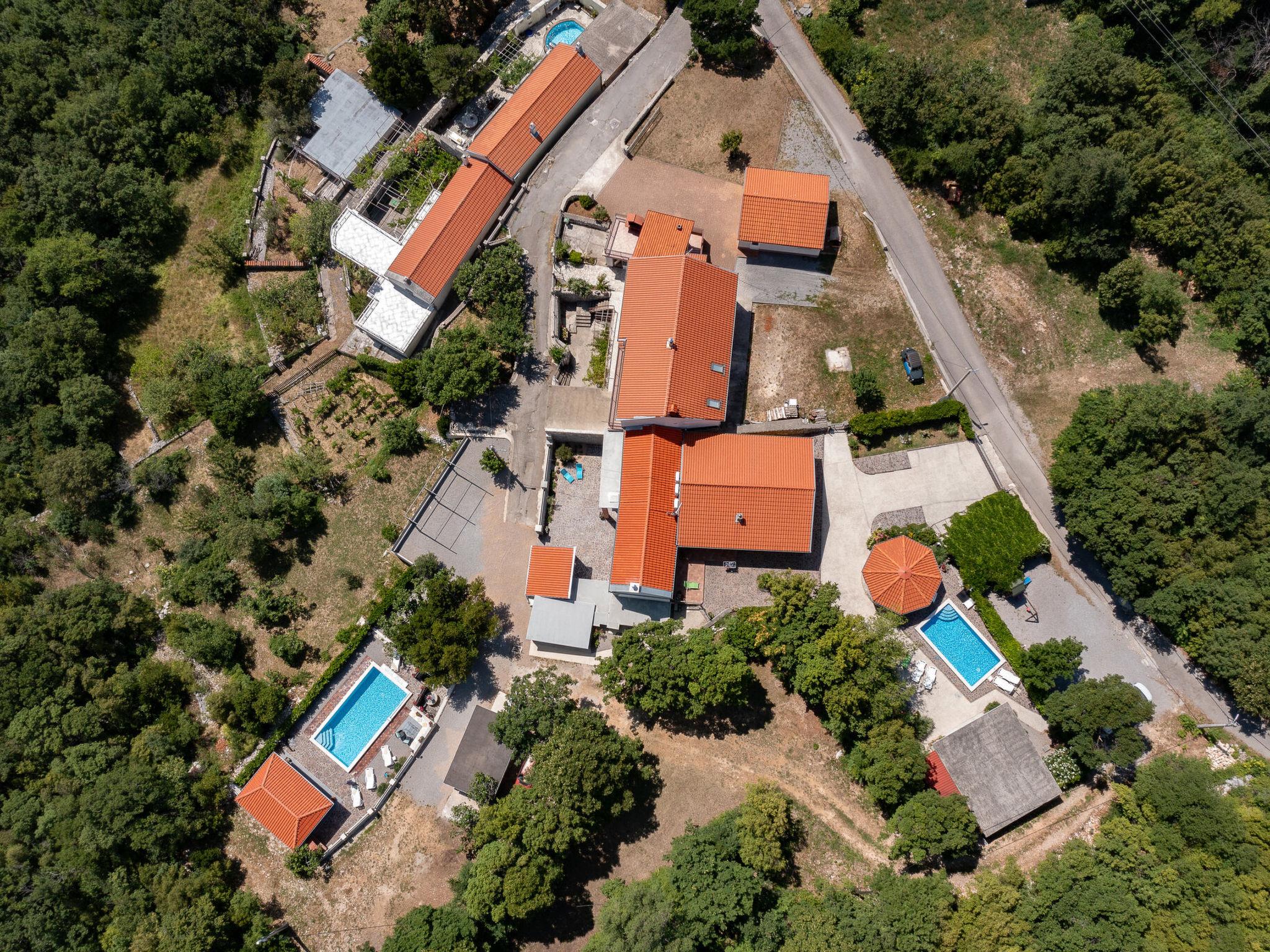 This holiday home consists of a spacious outdoor area, a ground floor, and a first floor, all thoughtfully designed to provide guests with maximum comfort and enjoyment. The ground floor features an air-conditioned living room with access to a terrace, a fully equipped kitchen, and a dining area, as well as a separate toilet. The dining area is also air-conditioned, providing a comfortable space for shared meals and gatherings. An internal staircase leads to the first floor, which has two spacious bedrooms, each with its own bathroom, air conditioning, and satellite TV. This layout ensures privacy and comfort for every guest.For added convenience, there is an outdoor bathroom with a toilet, sink, walk-in shower, and washing machine, located near the pool for easy access.The serene and spacious yard is perfect for relaxation. A fenced terrace of 90 m² (partially covered) offers stunning sea views. Guests have access to three parking spaces and a beautiful 36 m² swimming pool, the focal point for fun and relaxation. Adjacent to the pool is a covered terrace with a summer kitchen, a charcoal grill, a solar outdoor shower, and four comfortable sun loungers.FurnishingLiving areaSeparate living room, dining room and kitchen are in one room, sofa bed for two people, terrace, tiles, satellite TVKitchenCrockery, kitchen towels, gas stove, hotplates: 4, oven, refrigerator with freezer compartment, filter coffee machine, kettle, microwave, toaster, dishwasherBedroomDouble room with double bed, sea view, tilesDouble room with double bed, balcony, sea view, tilesBathroomBathroom with toilet, showerBathroom with toilet, showerBathroom with toilet, showerSeparate toiletBalcony & terracePrivate covered balcony, sea view, balcony size: 6 m²Private covered terrace, seating, loungers, terrace size: 90 m²Further informationBarbecue, parking on the property, swimming pool, swimming pool size: 36 m², outdoor shower, pets allowed, daily fee for pets: per day: 20.00 EUR, air conditioning included in the price, bed linen available, towels available, hair dryer, washing machine, Internet per W-LANTo the sea 5.1 km, sandy beach 5.7 km, fine pebble beach 5.3 km, pebble beach 5.3 km, rocky beach 5.9 km, concrete beach 5.9 km, center 4.9 km, restaurant 4.9 km, supermarket 4.9 km, diving center 6.4 km, busy road 2.4 km