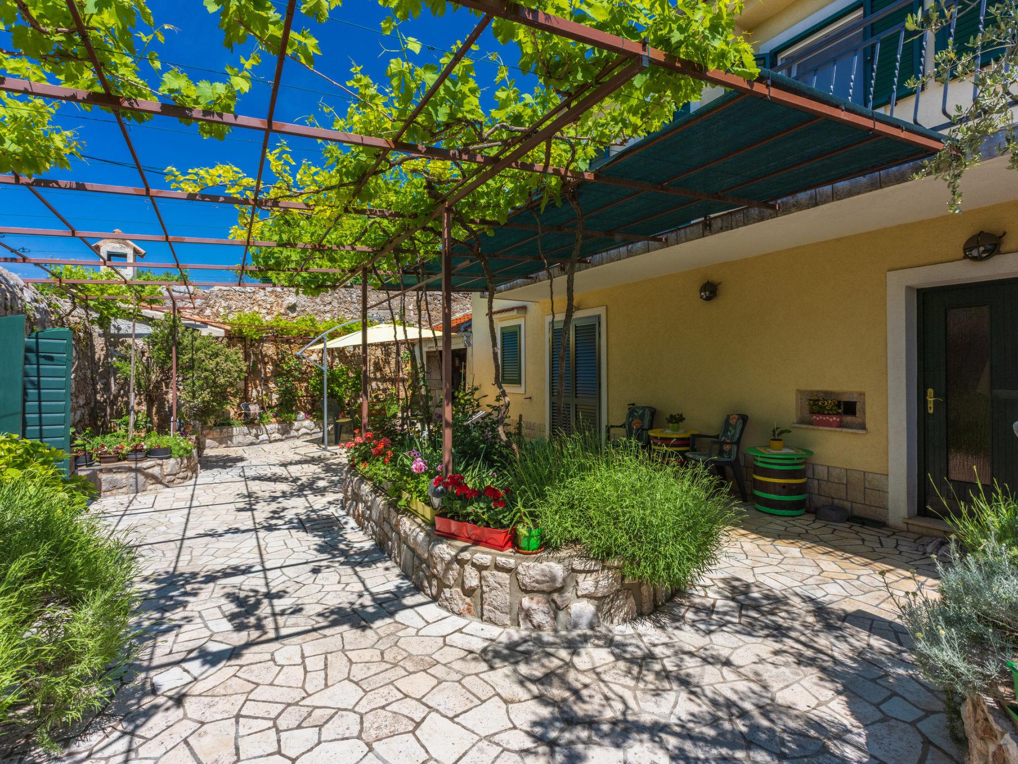 A holiday house, renovated and designed in a Mediterranean style, is located on a family estate surrounded by high stone walls that provide maximum privacy. This peaceful and comfortable house invites you to relax and enjoy a unique combination of nature and comfort.For private use, guests have access to: a sun umbrella, sun loungers, an outdoor shower, a terrace, a courtyard with a covered area, a dining table, and a large barbecue fireplace. From the courtyard and the terrace, you can enjoy breathtaking views of unspoiled nature and the sparkling blue sea of the Kvarner Bay. The surrounding nature, with its authentic Mediterranean landscape, offers numerous opportunities for active holidays, following the well-known slogan of the Vinodol region: "A step to the sea, two to the snow."On the nearby coast in Crikvenica, you will find various beaches – sandy, pebble, rocky, and even a dog-friendly beach – as well as numerous activities such as tennis, diving, water sports, and boat rentals. Nature lovers can explore mountain peaks such as Lukovo or Viševica, visit the Platak ski resort, which transforms into a beautiful nature park in summer, or discover Gorski Kotar with its lakes and the source of the Kupa River.The holiday house consists of the first floor, a spacious courtyard, and a covered terrace equipped with a barbecue. The ground floor is not in use and is not included in the offer. The first floor features a modern, well-equipped kitchen with a dining and living area in an open-plan layout, one bedroom with two single beds, another bedroom with a double bed, and a spacious bathroom. All rooms, as well as the kitchen and living area, are air-conditioned for added comfort.A private parking space is available for guests.Note: Pets up to 7 kilograms are allowed. Daily fee for pets: EUR 8.00 per pet.Living area:Living/dining room and kitchen are in one room, balcony, tiles, satellite TVKitchen:Crockery, kitchen towels, electric cooker, hotplates: 4, refrigerator with freezer compartment, filter coffee machine, kettle, microwave, toasterBedroom:Double room with separate beds, balcony, laminate, connecting roomDouble room with double bed, balcony, sea view, laminateBathroom:Bathroom with toilet, showerBalcony & Terrace:Private balcony, sea view, seating, balcony size: 10 m², own terrace, covered, one floor below, seating, loungers, parasol, terrace size: 25 m²Additional Information:Grill, bring grill possible, parking lot on the property, outdoor shower, pets allowed up to 7 Kilograms, daily fee for pets: per day: 8.00 E, air conditioning included in the price, bed linen available, towels available, washing machine in the apartment, Internet via W-LANDistances:to the sea 5 km, sandy beach 6 km, fine pebble beach 5 km, pebble beach 5 km, rocky beach 5.1 km, concrete beach 5.1 km, center 4.6 km, restaurant 4.6 km, supermarket 4.9 km, diving center 6.7 km, busy road 4 km