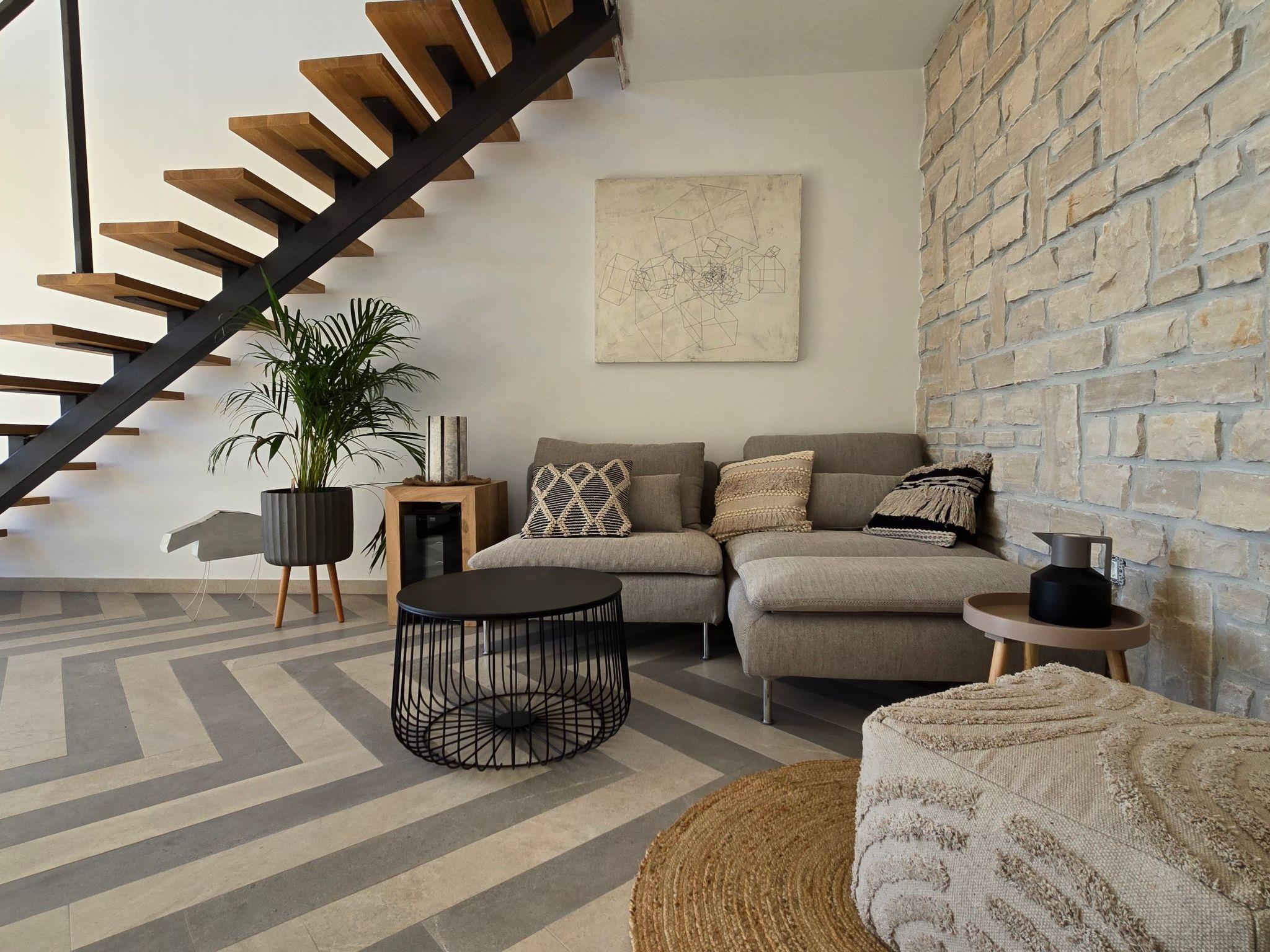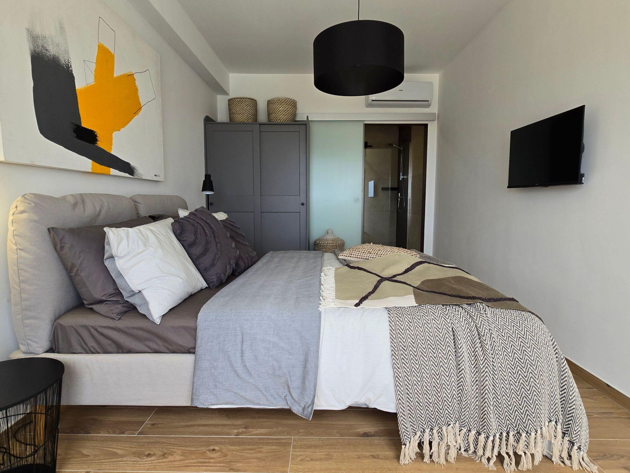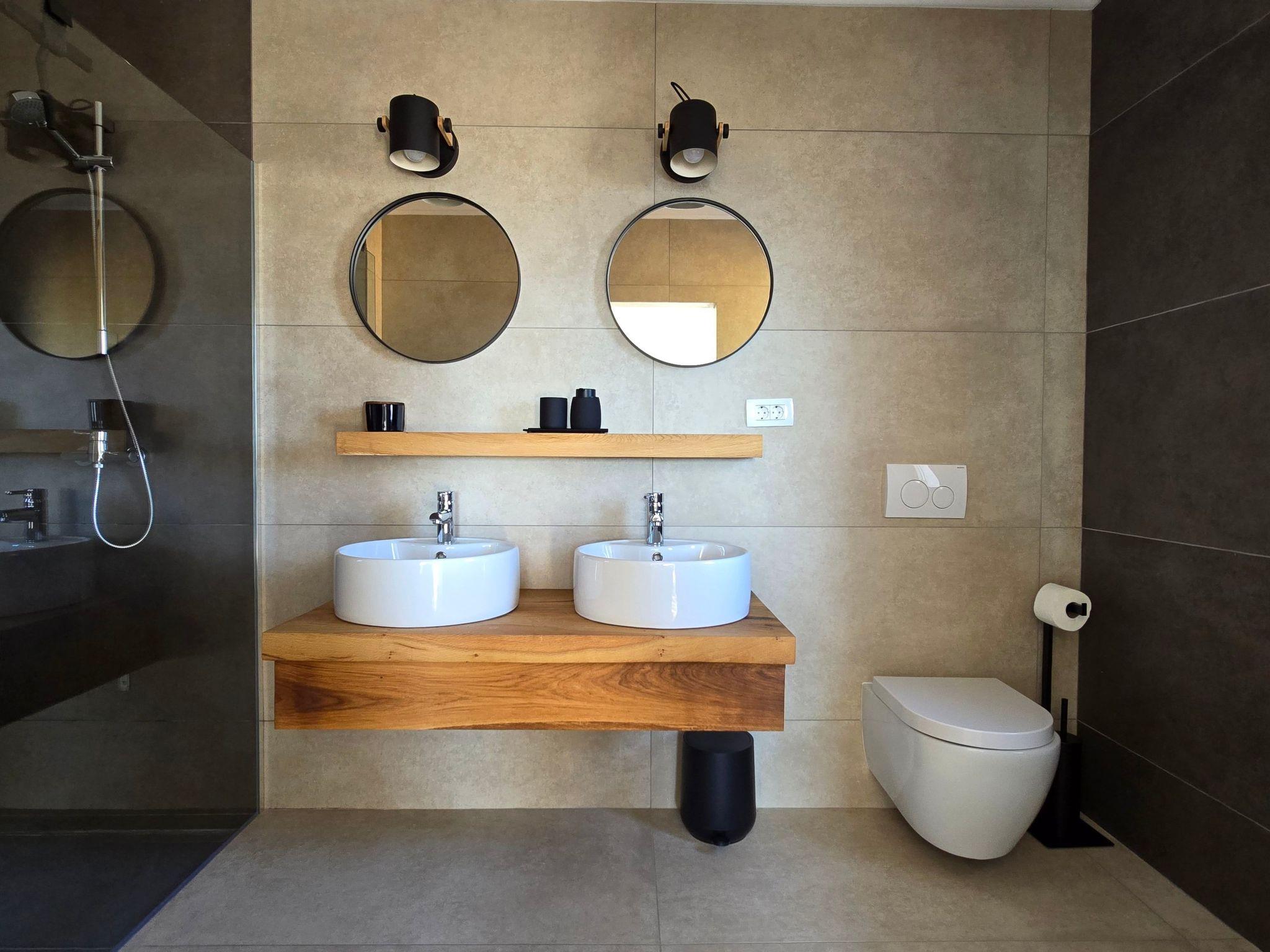 The villa has two terraces. While the lower one offers relaxation in the jacuzzi, the main terrace with a large pool attracts attention with its panoramic view and invites you to sunbathe and refresh. The covered area is completed with a barbecue and an outdoor dining area so you can enjoy your meals outdoors.