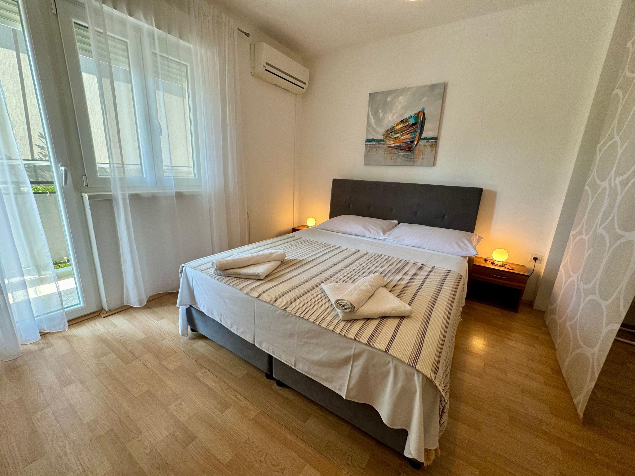 Apartment Kristina 1 is located in a small coastal village Jadranovo which is only 5 minutes from Crikvenica, 20km from the city of Rijeka and half an hour from Gorski Kotar and its peaceful green nature. It is close to the beautiful island of Krk. Apartment is for 7 people and it contains three bedrooms and two bathrooms. Also, there is a kitchen and two balconies. Guests also have the opportunity to grill on the shared terrace.
