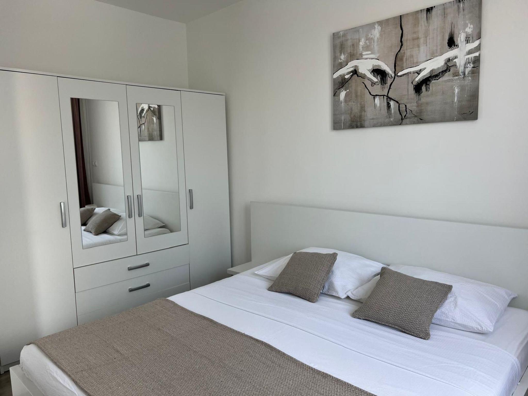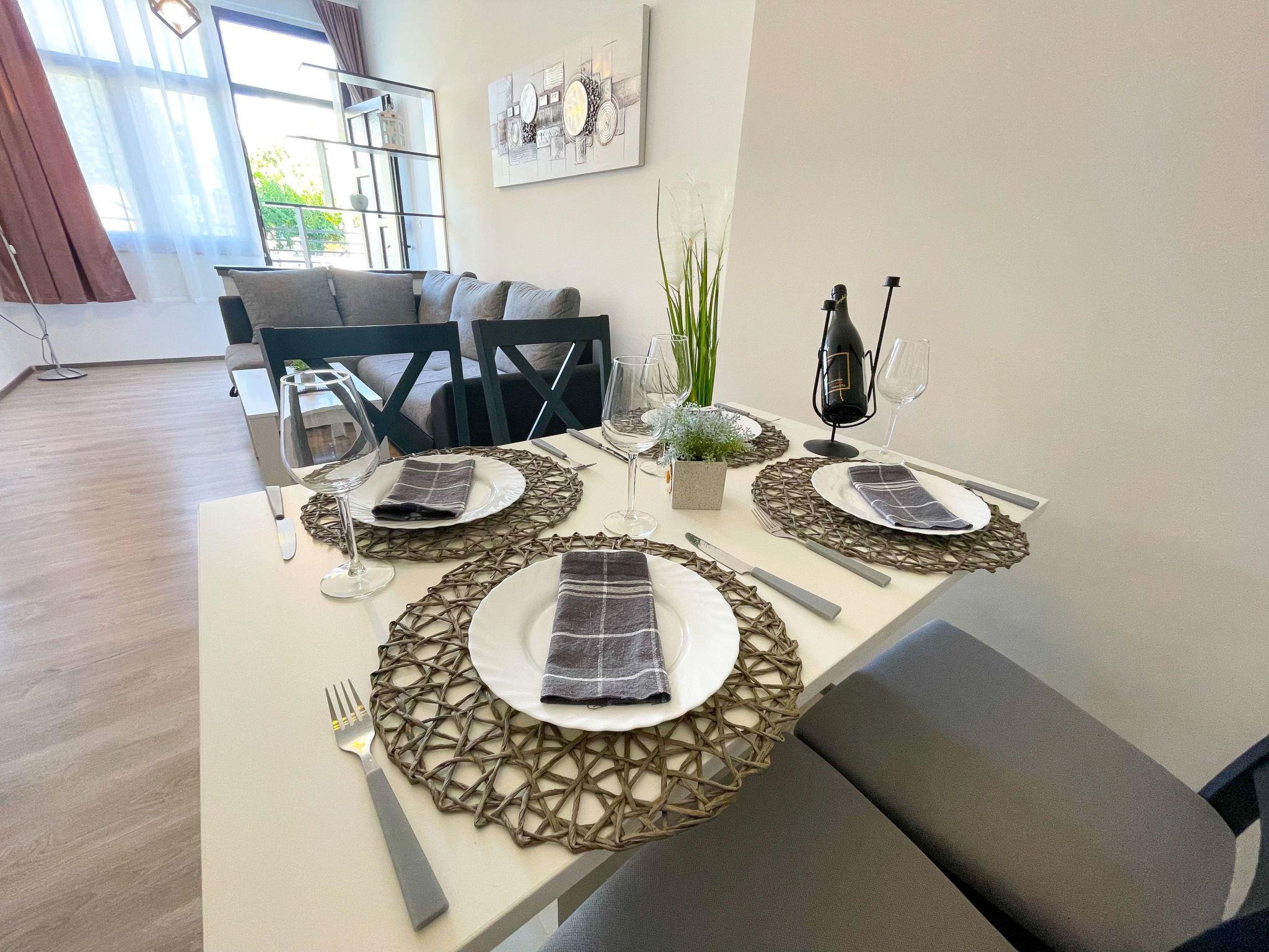 Inside, you'll find a cheerfully decorated flat, complete with two cosy bedrooms. Although the kitchen and bathroom are excluded from the description, you can be sure that the flat offers everything you need for a pleasant stay. The partial air conditioning ensures a pleasant indoor climate even on warmer days.
