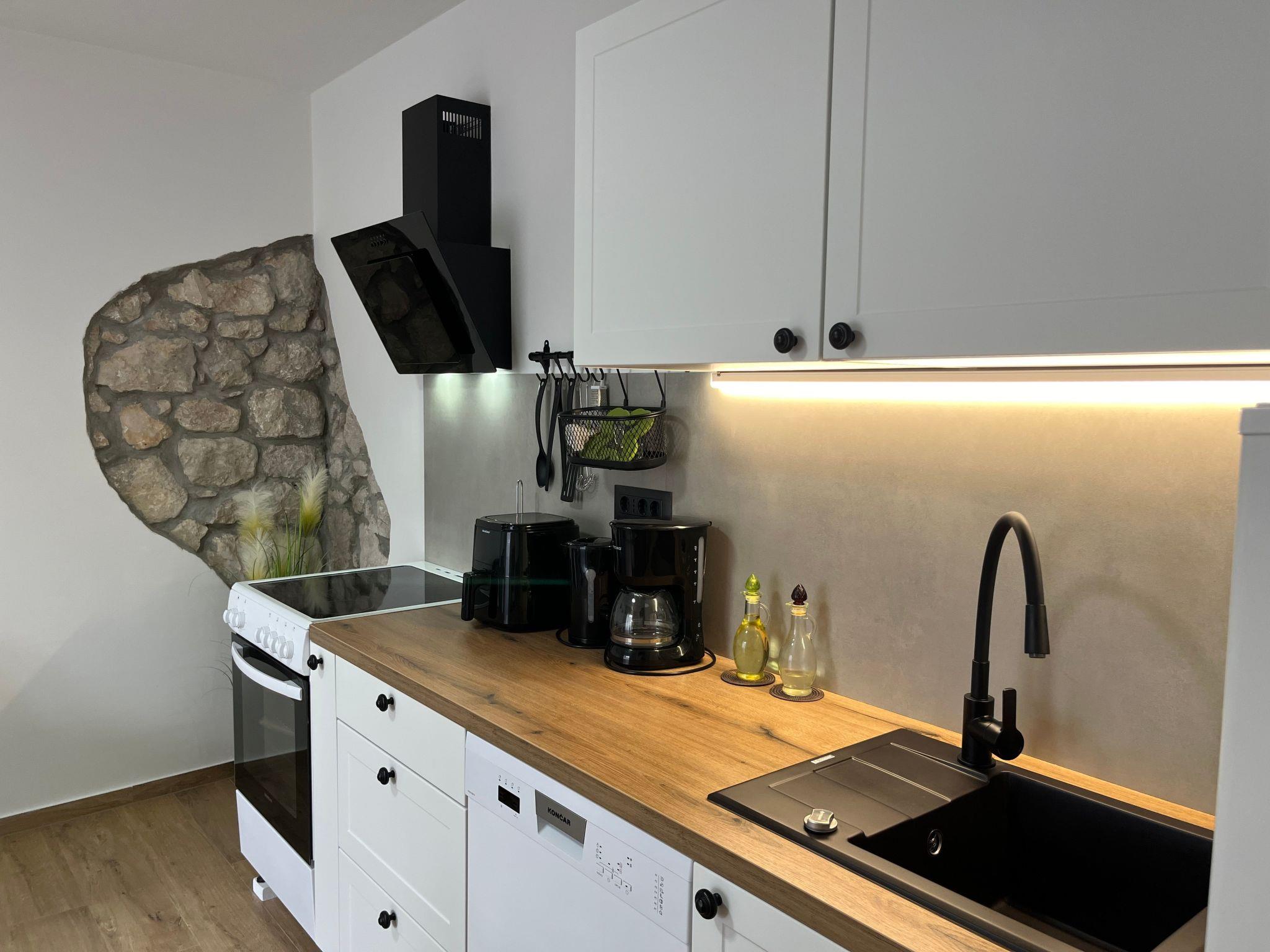 During your stay you will enjoy the comforts of well-equipped accommodation. The house has two inviting bedrooms that offer peace and comfort to unwind after an eventful day. A living room with adjoining kitchen allows you to spend time together in a cosy atmosphere. Despite the traditional building fabric, the house is equipped with partial air conditioning to ensure pleasant temperatures even on hot days. Equally practical is the electric kettle, which makes self-catering easier.