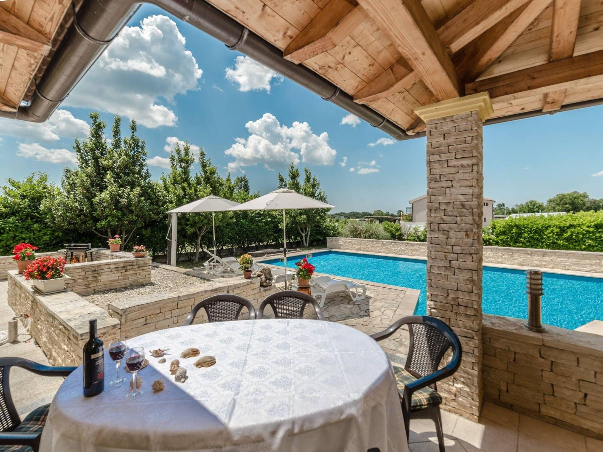 In a large courtyard central place has a large pool (50m2), covered terrace, and slide for children.On the Terase a table with chairs where you can have a coffee in the morning, the afternoon is too lunch