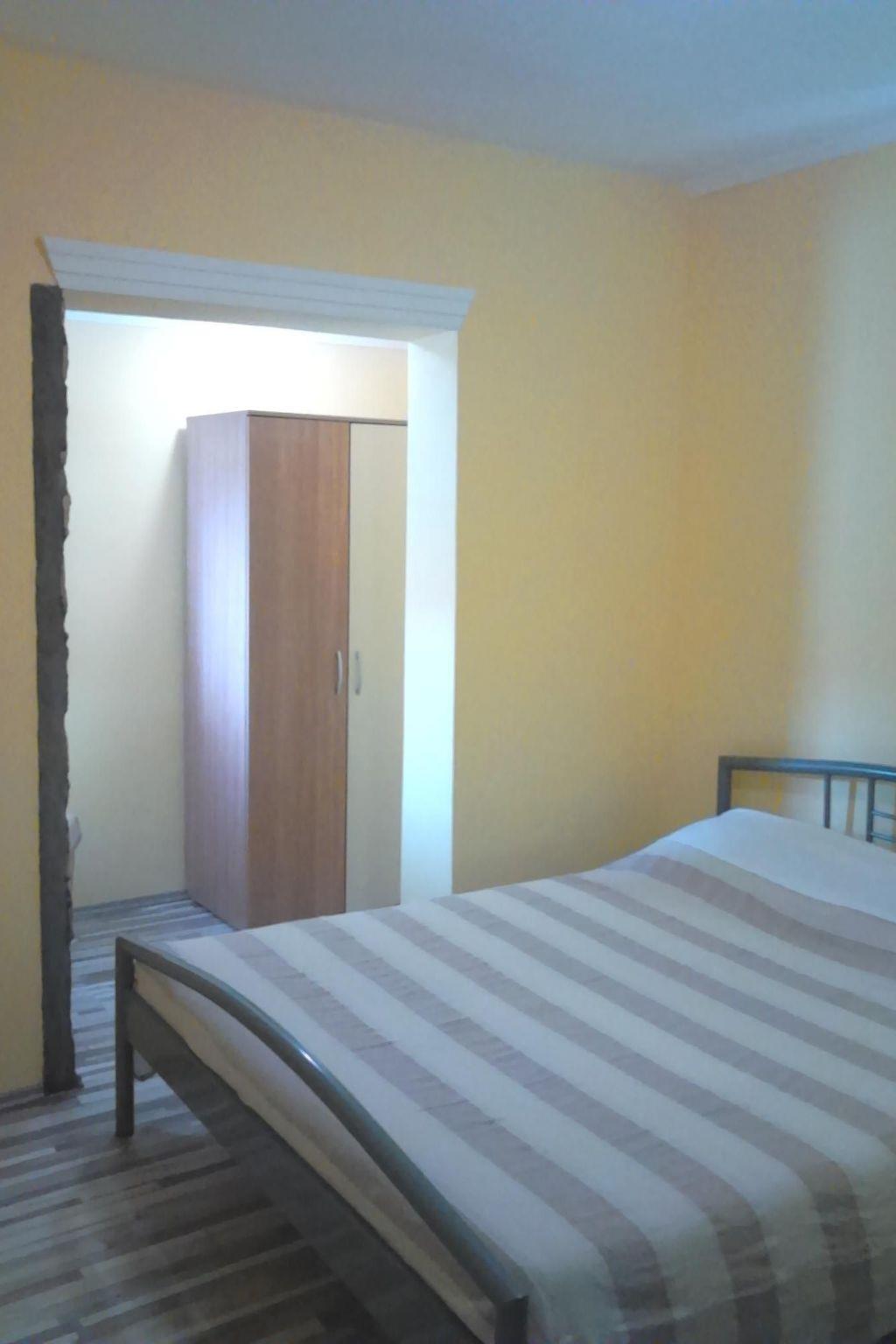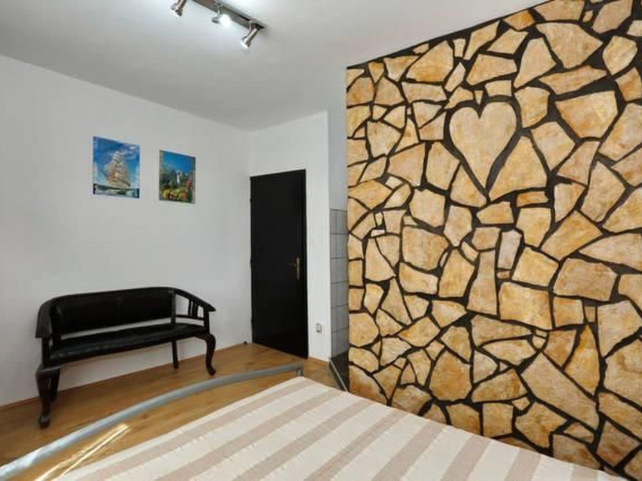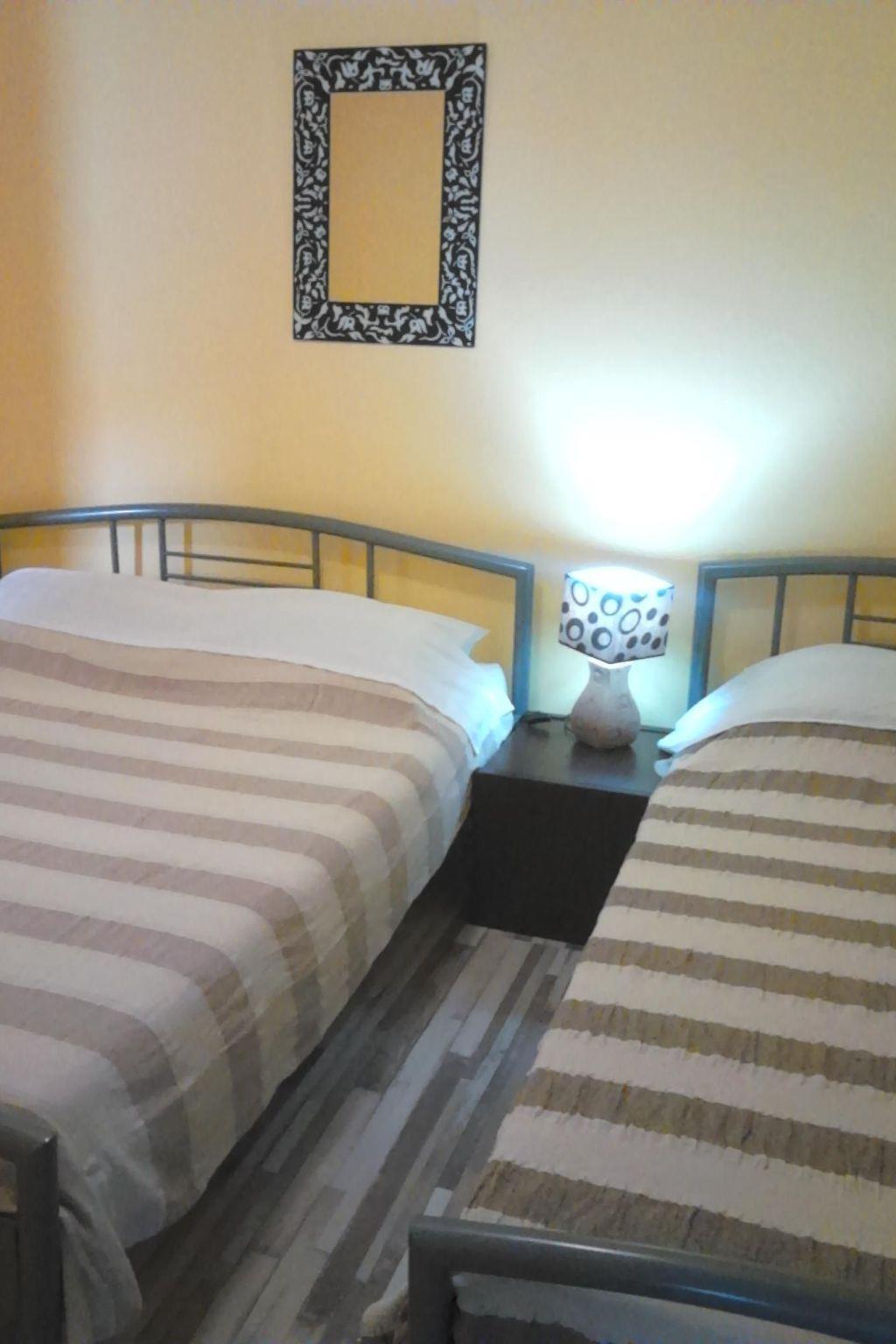 This is a modern apartment in a private house. It's quite big - 80 m2 without the terrace. It's on the first floor and can be accesed by stairs. It has a kitchen, open space living and dining room, a hallway, two bedrooms and two bathrooms. The best feature of the apartment is the big terrace. It has more than 35 m2, It's protected from the sun and perfect for hot summer days. Also, there are tables with chairs on the terracce. The living room has a flatscreen TV and a double sleeping couch. The kitchen is fully equipped with an oven, fridge, microwave, coffee machine and dining area. There are two bedrooms and they are equipped with beds, closets and cabinets. The first room is with a double bed (1.60x2 m) , a closet and some cabinets. The other room has one single bed (0.90x2 m), a double bed (1.60x2 m), a closet and two cabinets. There are two bathrooms with showers, toilets and basins. There is a washing machine in one of the bathrooms. Also, there is free internet in the apartment, as well as air-conditioning. On request, we can offer you a travel bed for a child. All in all, you'll have a lot of space, as well as your peace.