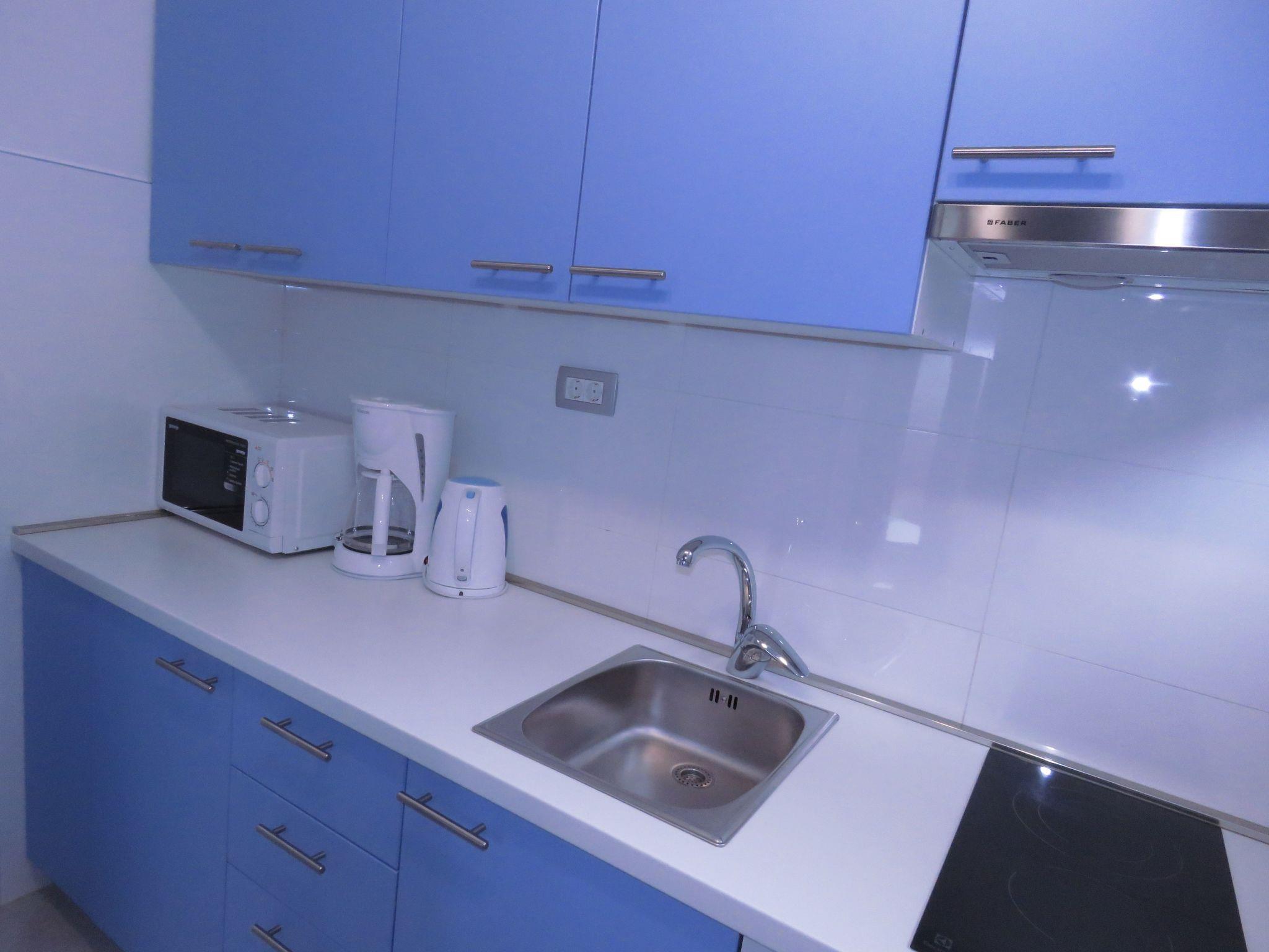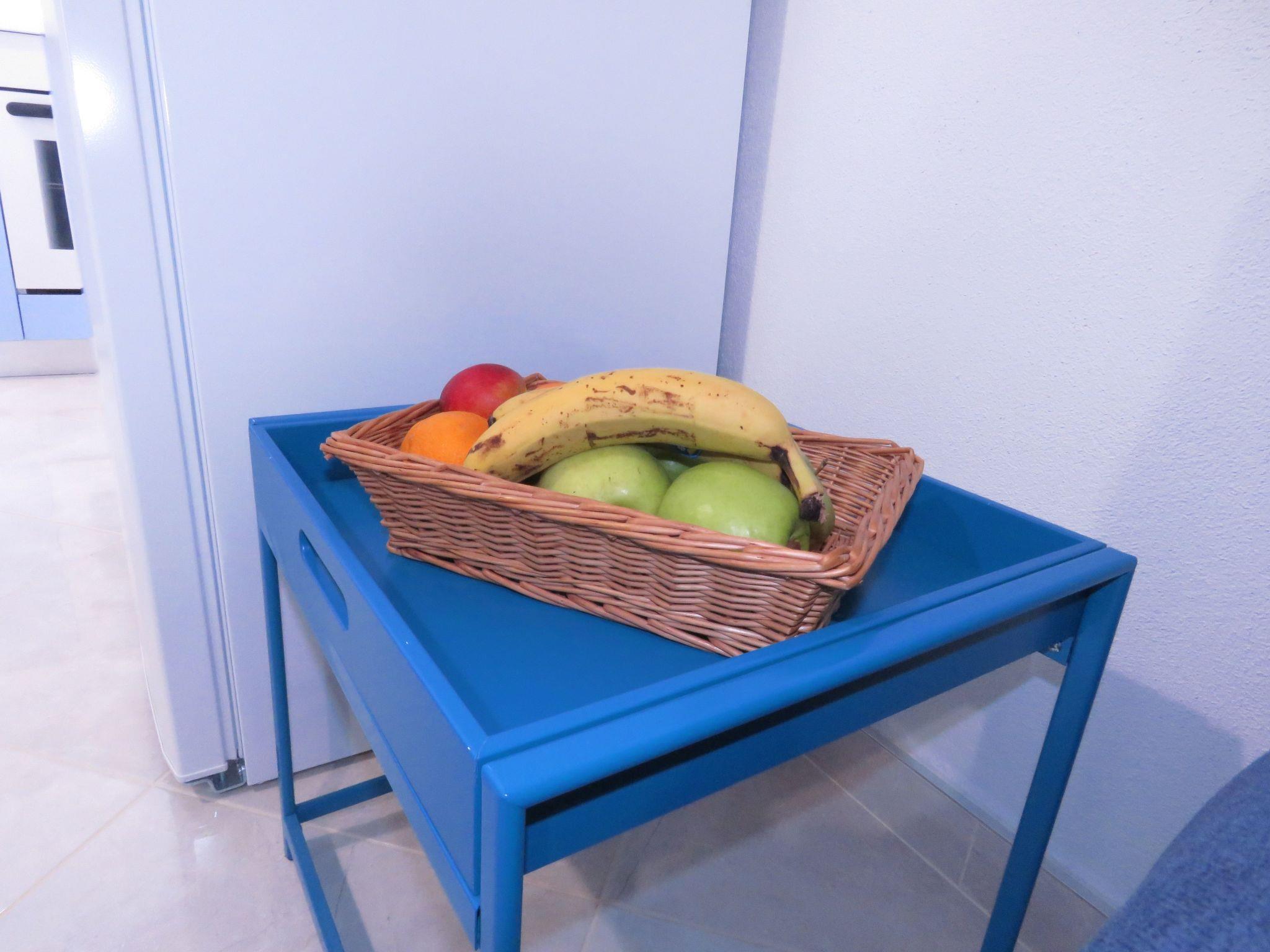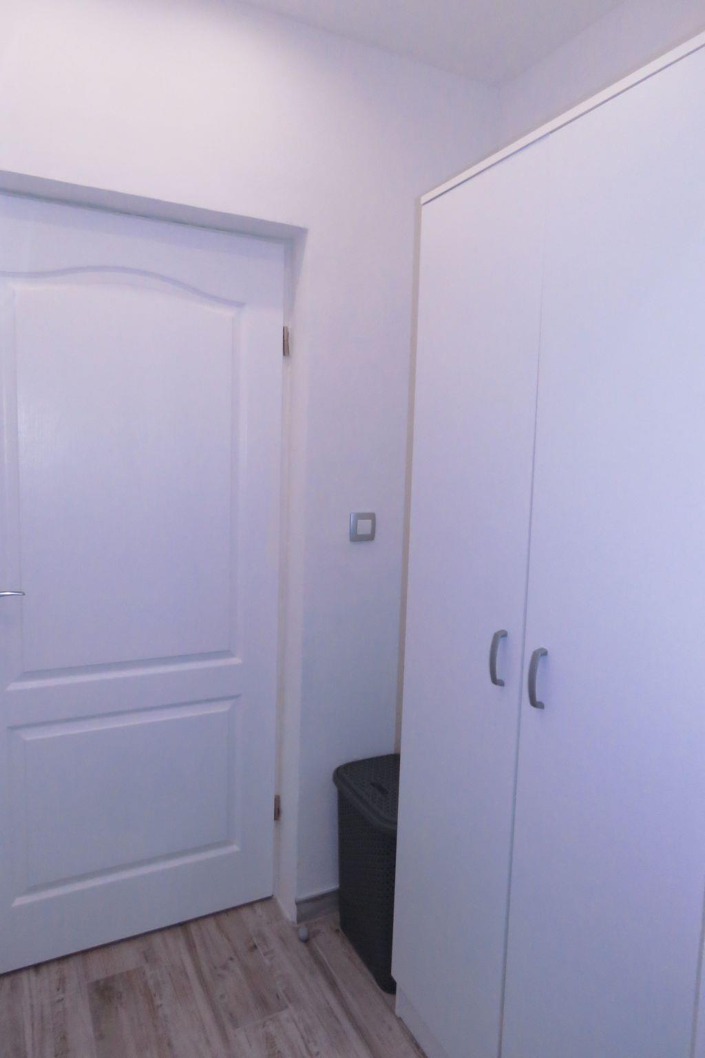 The kitchen is equipped with stove, oven, kettle, fridge and coffee machine. Dining table has 4 chairs. There is a sofa in the living area that can be transformed into bed (1,60 x 2m). The bedroom is equipped with a double bed (1,6 x 2m), two cabinets, a commode, tv/sat and a closet. The bathroom has a toilet, basin, shower and washing machine. Also there is a terrace in front of the apartment with chairs and a table where you can spend your summer nights. On request, we can offer you a baby cot. All in all, you have your peace and quietness.