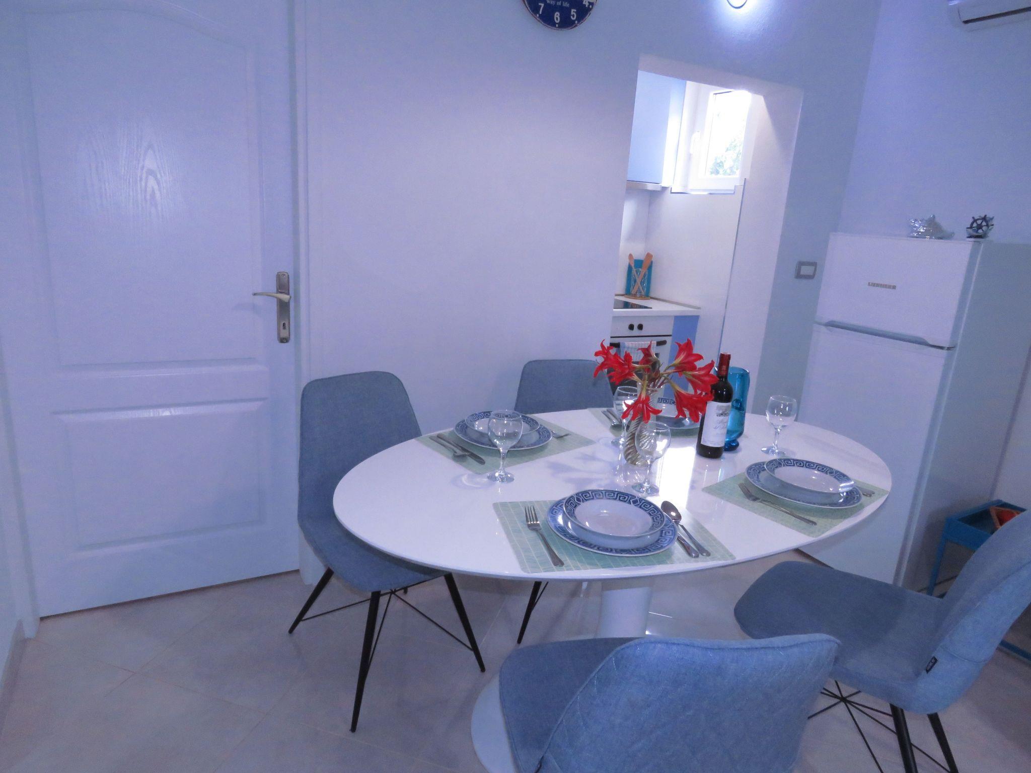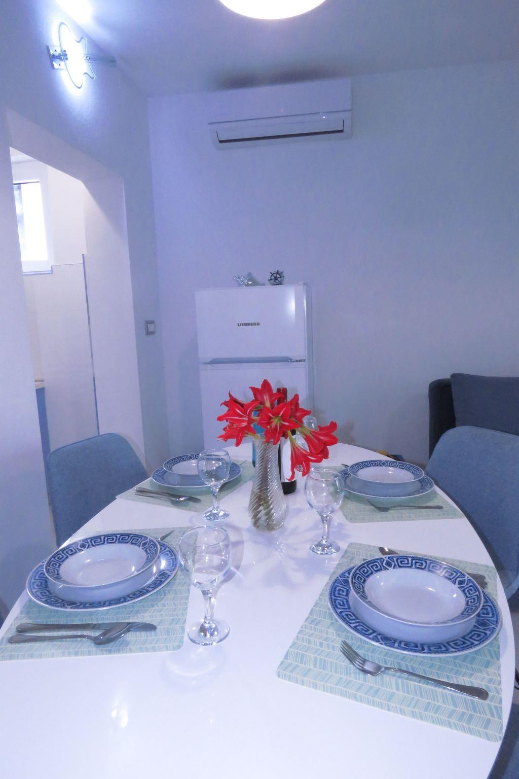The house is on the main road in Sukosan and finding it shouldn't be a problem. The apartment is on the ground floor, but the house consists of ground floor, first floor and cellar. The house is surrounded by a big garden with fruits and vegetables. There's also parking space for at least 5 cars. You can play table tennis in front of the house or even use the grill. There is even a trampolin for kids in front of the house. There're outdoor tables with chairs for all guests.