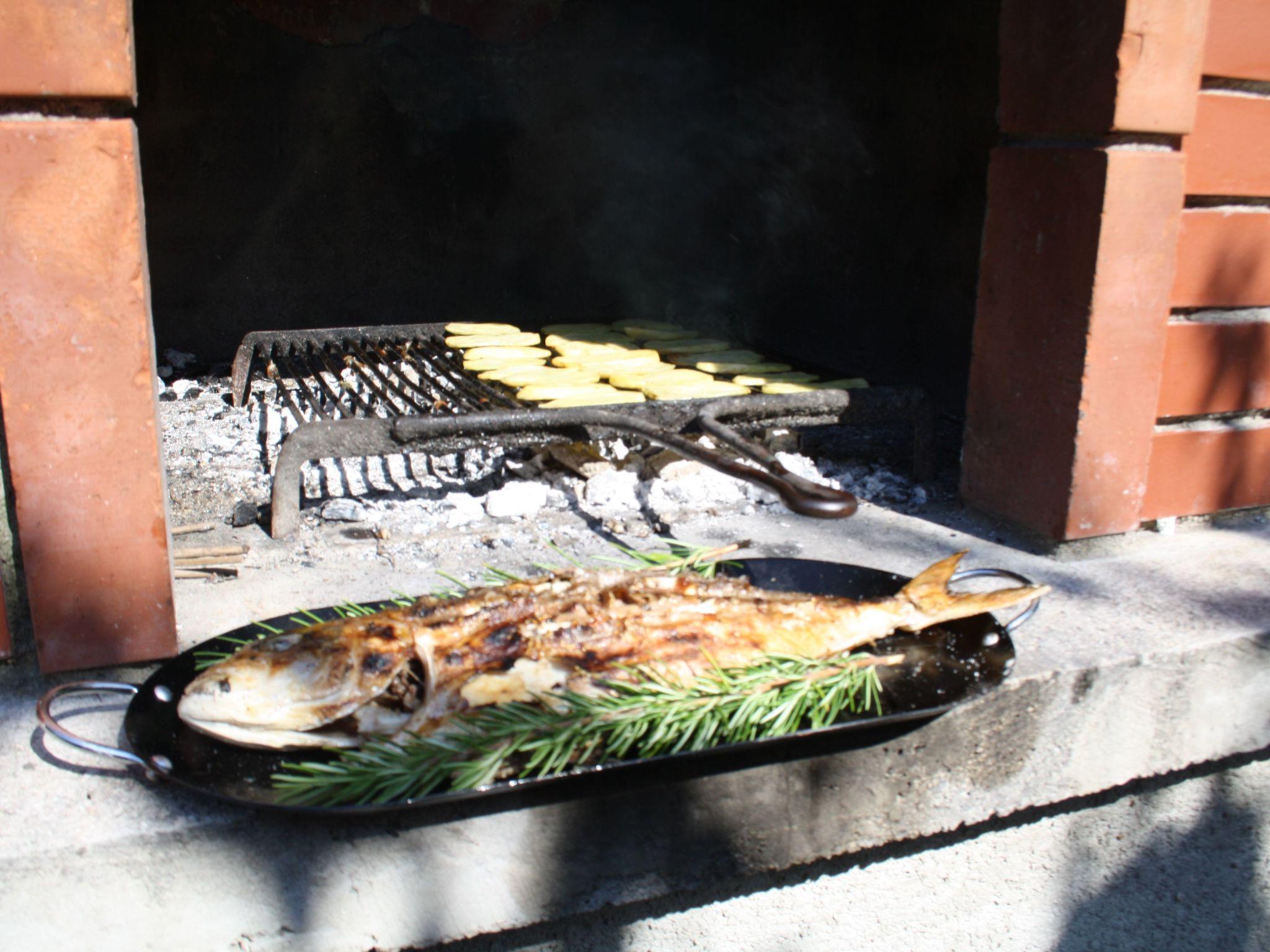 The big garden provides natural shade with its Mediterranean vegetation. The grill area can be used for dining. A garage for two cars is available.