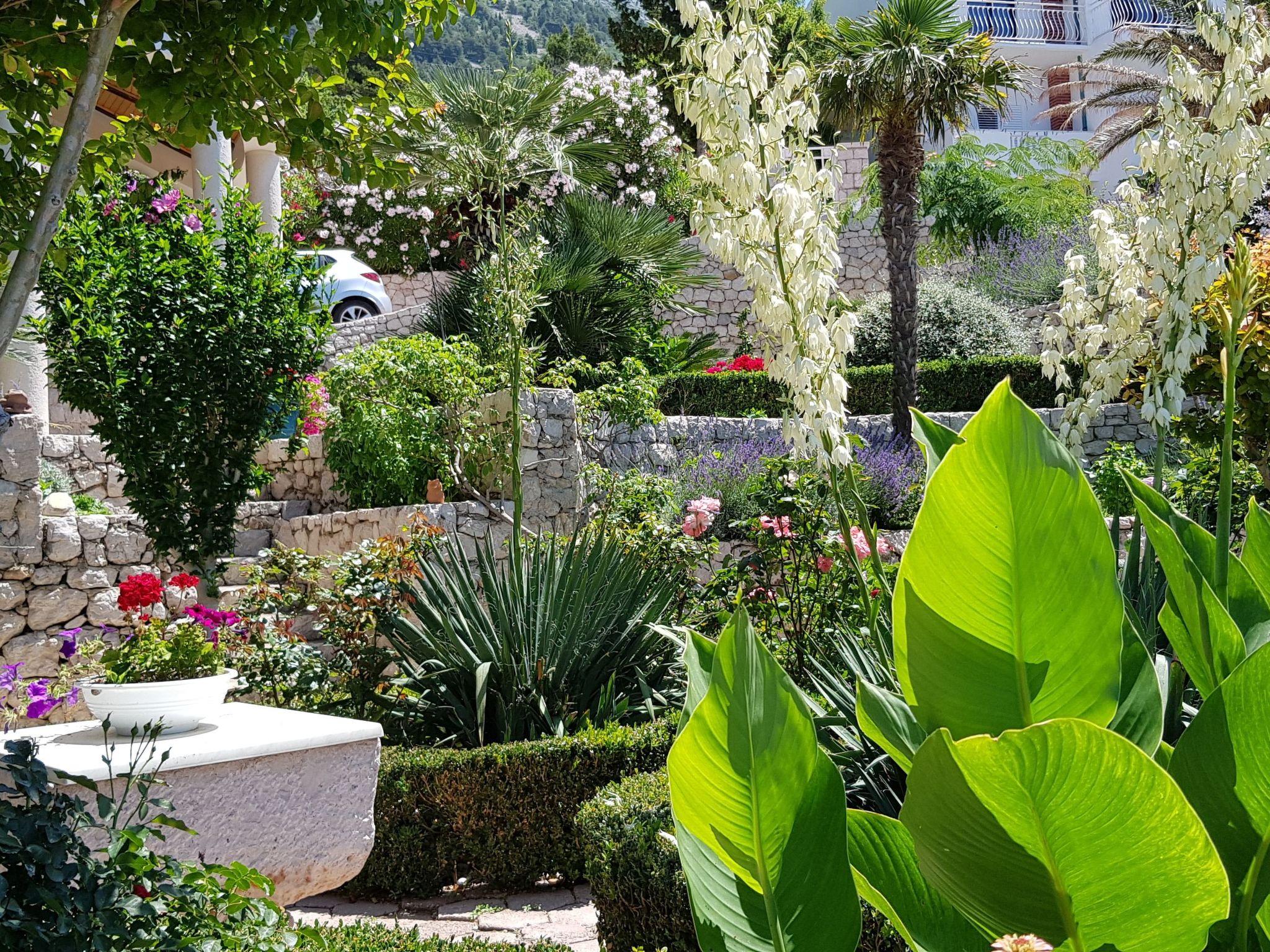 Villa Margitta****An oasis of peace at the Makarska Riviera Our Villa**** with its 5 exclusive apartments has only 150 m distance to the beach and offers a fascinating view over the sea and surrounding islands. It is fitted into a unique ambient with a beautiful garden, in which one can find all types of Mediterranean plants. A special charm is created by typical Dalmatian stonewalls, adjoining vineyards and diverse vegetation. The garden and yard were award winners of the Blue Flower for Croatia and the Sun Flower for Dalmatia in 2007. The Villa invites to spend restful and relaxing holidays in our comfortable and tasteful furnished apartments, which all have a balcony or terrace with sea view. Our beautiful terrace melted into the nature invites to spend relaxing hours and assures pure satisfaction. For more enjoyment we offer a tennis court to our guests, who like sports. Additionally, we have parking spaces and a guest’s barbecue.